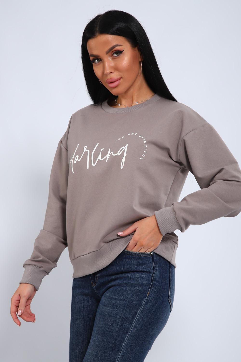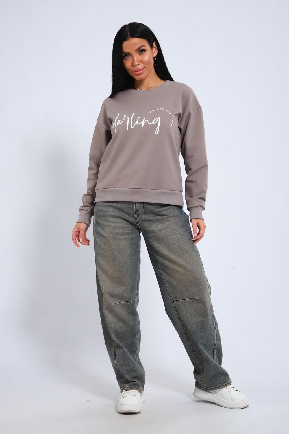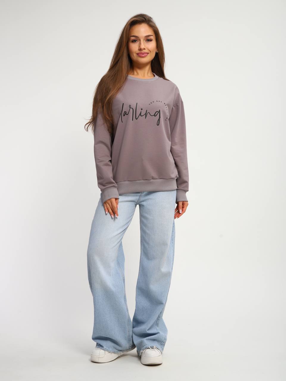 Стильный свитшот из футера 2-х нитки, плотной, но в то же время легкой ткани. Данная модель имеет свободный крой, длинные рукава и эластичные манжеты, что делает его удобным и практичным. На груди имеется стильный принт. Свитшот легко комбинировать с одеждой разных стилистических направлений: отлично сочетается с джинсами, спортивными брюками или юбками, создавая как casual-образ, так и более спортивный или уличный. Модель без начеса на внутренней стороне делает её комфортной в теплую погоду, сохраняя при этом достаточный уровень тепла в прохладные дни. Женский свитшот не сковывает движения, обеспечивает комфортную посадку на любой тип фигуры, подойдет на средний и высокий рост.