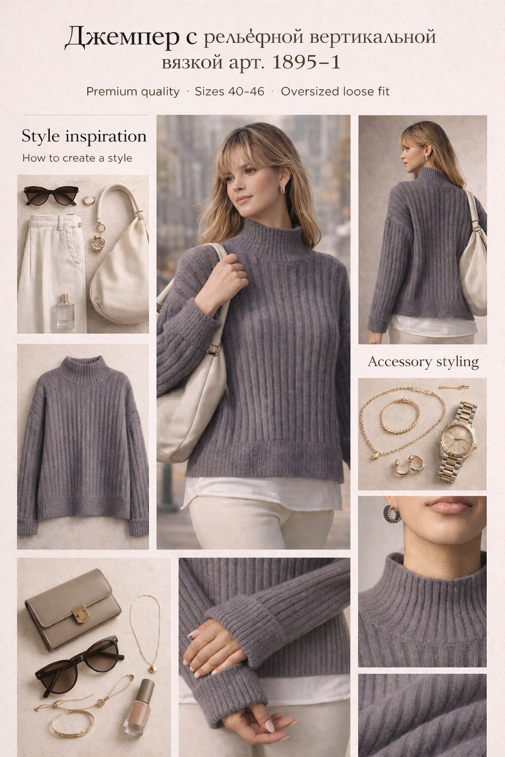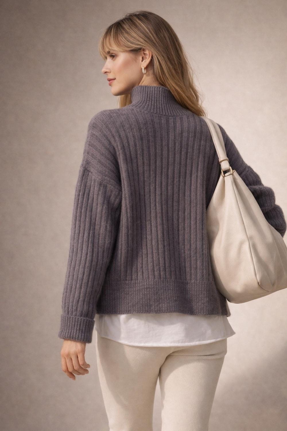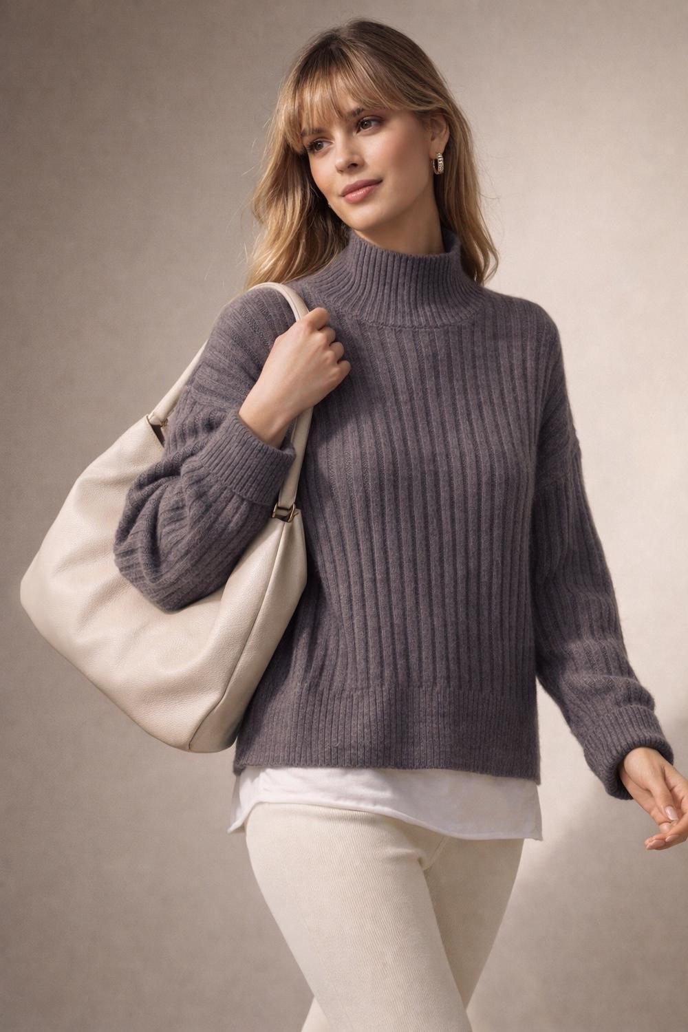 Модная деталь: Высокая стойка (turtleneck) обеспечивает тепло и позволяет создавать многослойные образы — носите поверх рубашки, блузки или легкого топа.