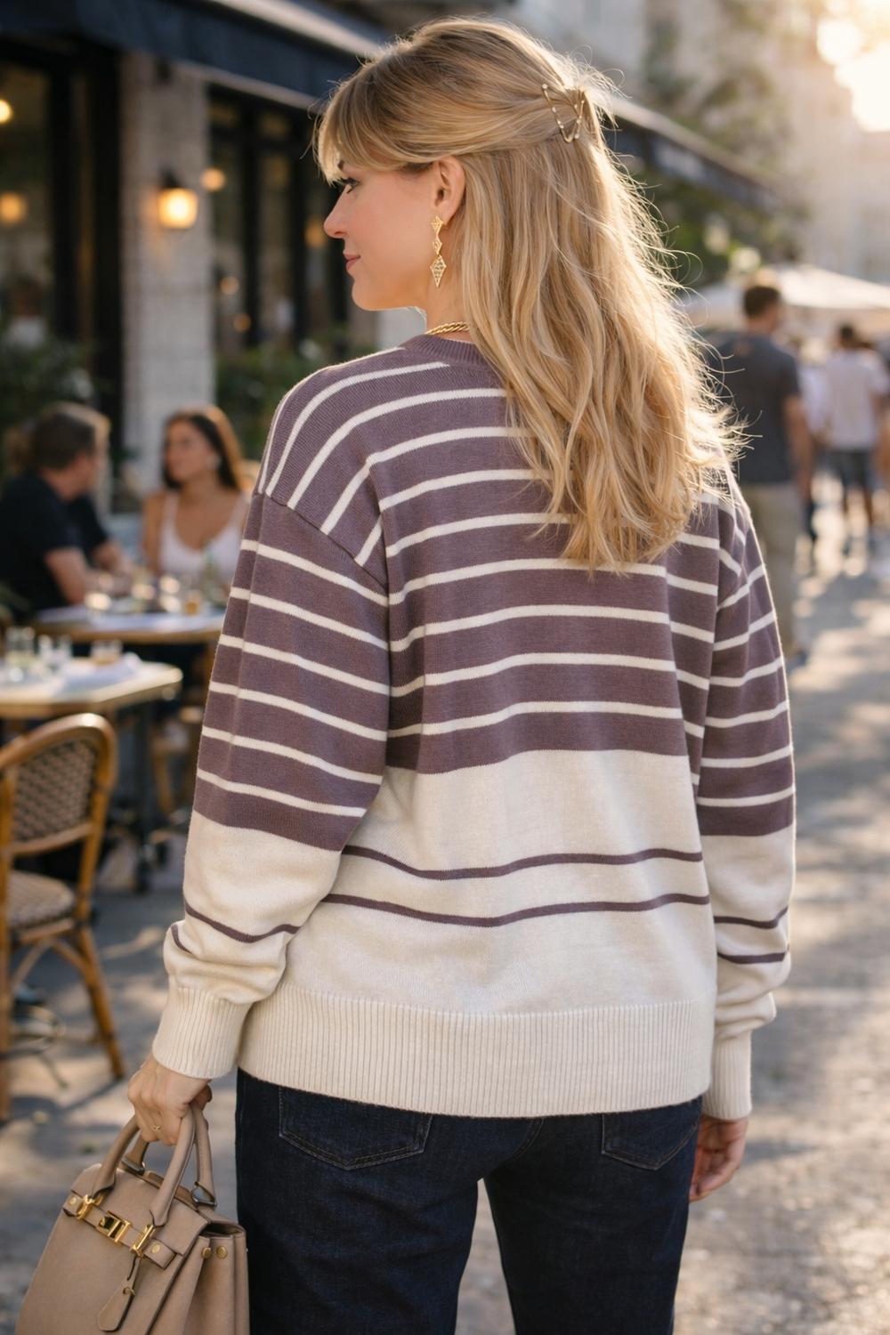 Сочетайте джемпер с джинсами, узкими брюками или юбкой-карандаш для повседневного образа. Добавьте ботильоны или кроссовки для завершенного лука. В прохладные дни наденьте его поверх водолазки или рубашки — контрастные полосы создадут визуальный акцент, а акрил сохранит тепло.