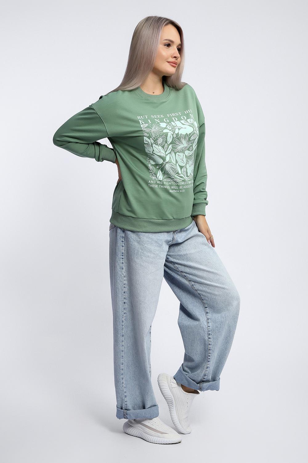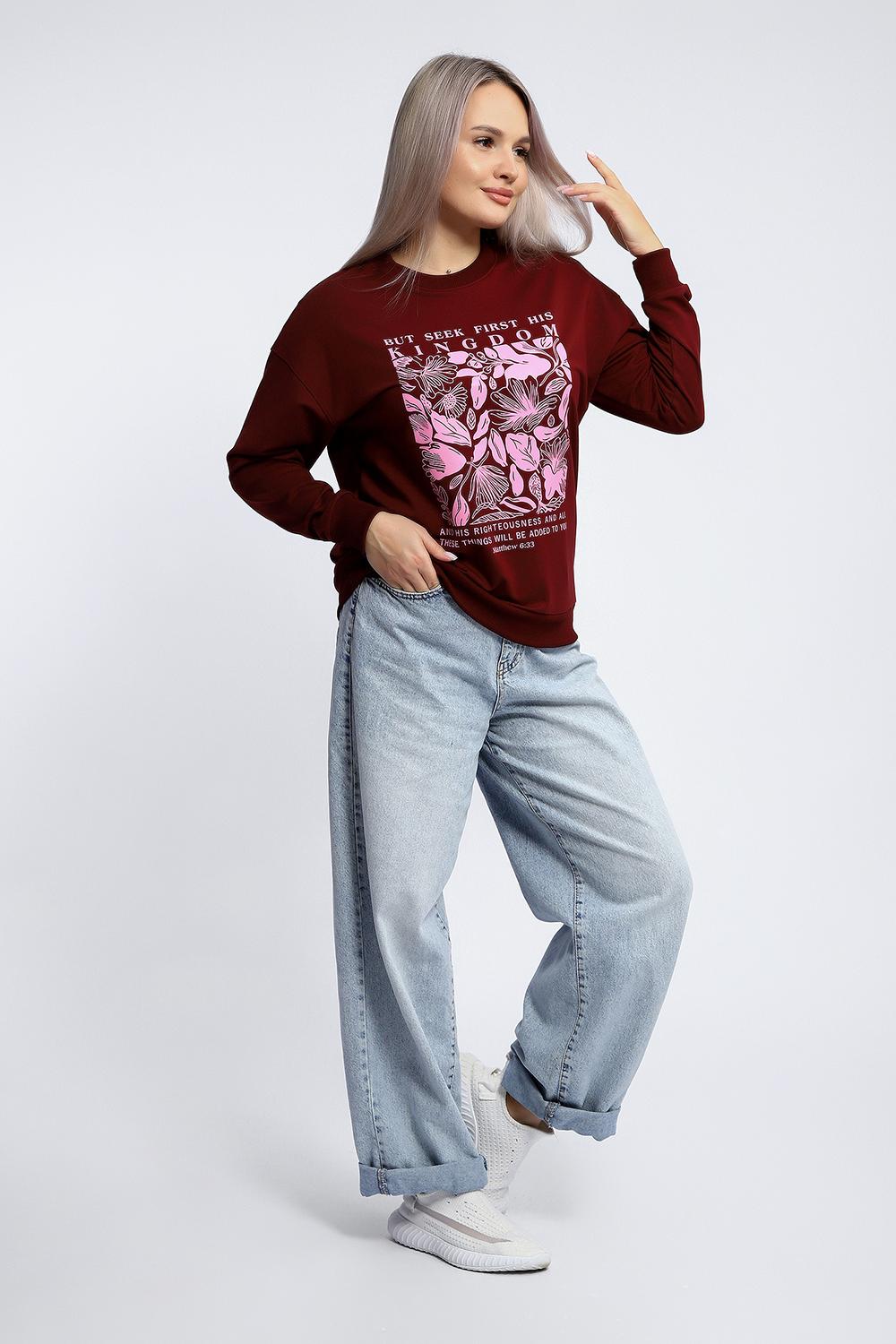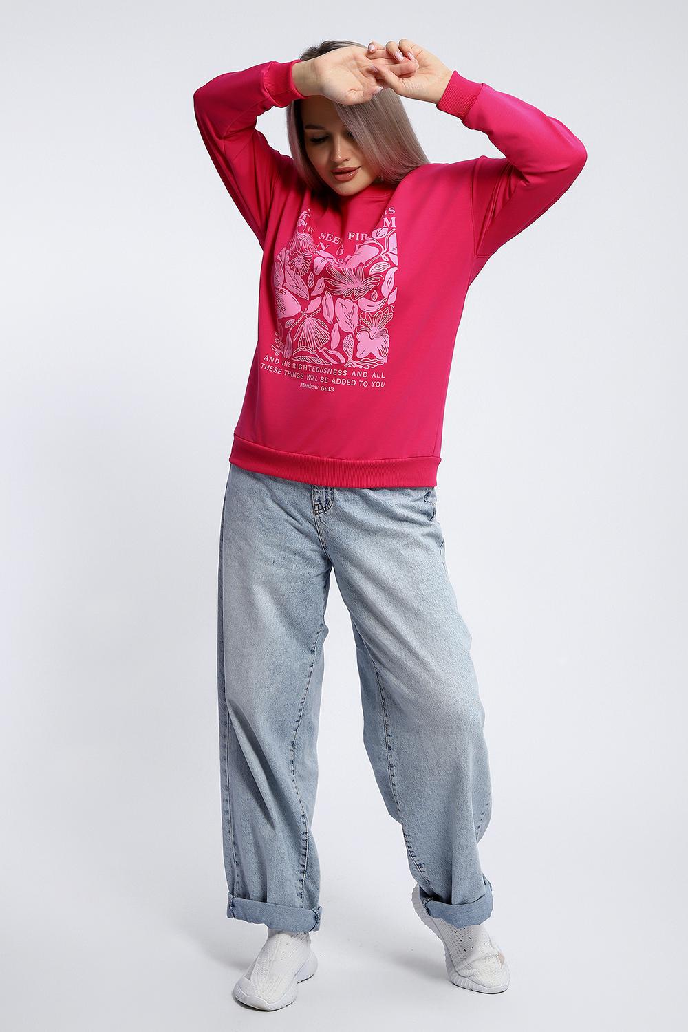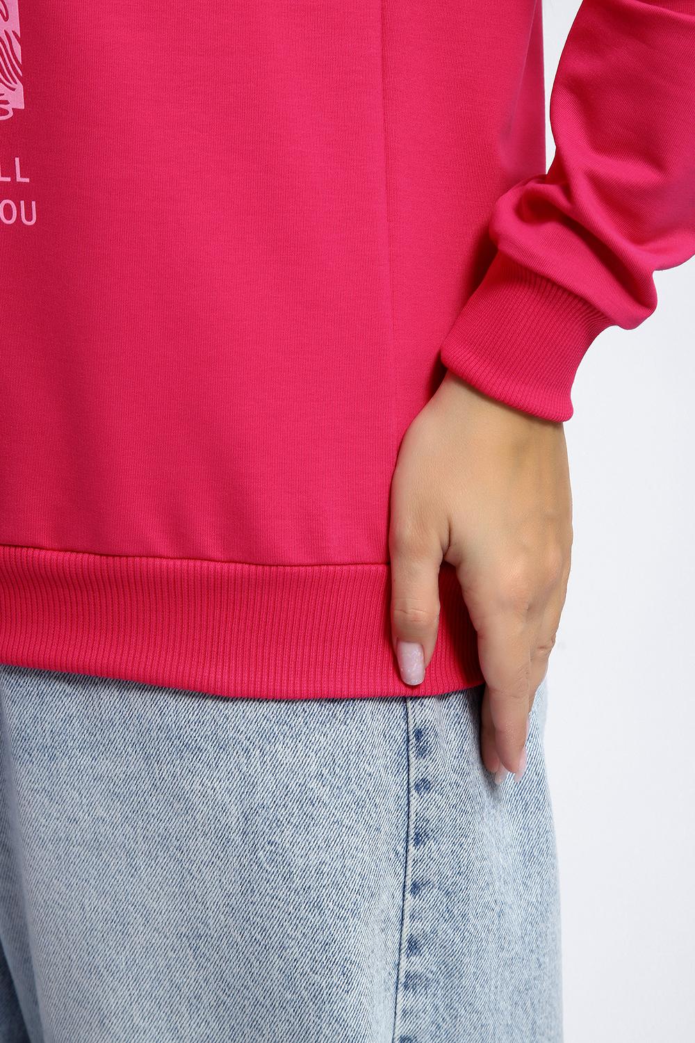Толстовка свободного кроя "оверсайз" со спущенной линией плеча прекрасный вариант для прохладной погоды! Мягкое, эластичное кашкорсе в тон ткани использовано для отделки горловины, манжет и пояса. На полочке декоративный принт.