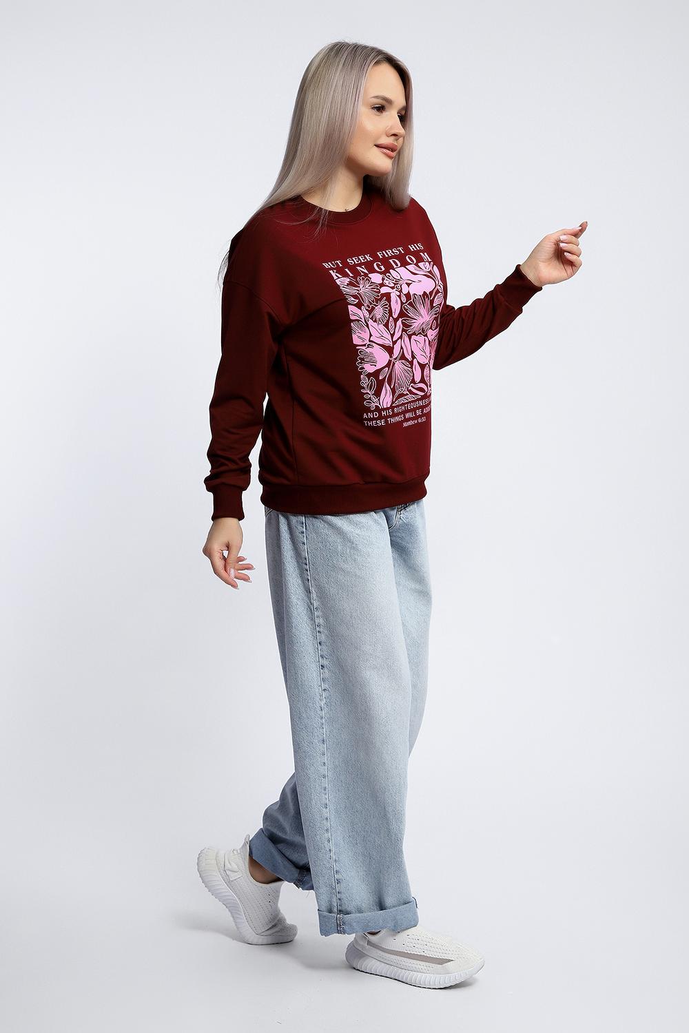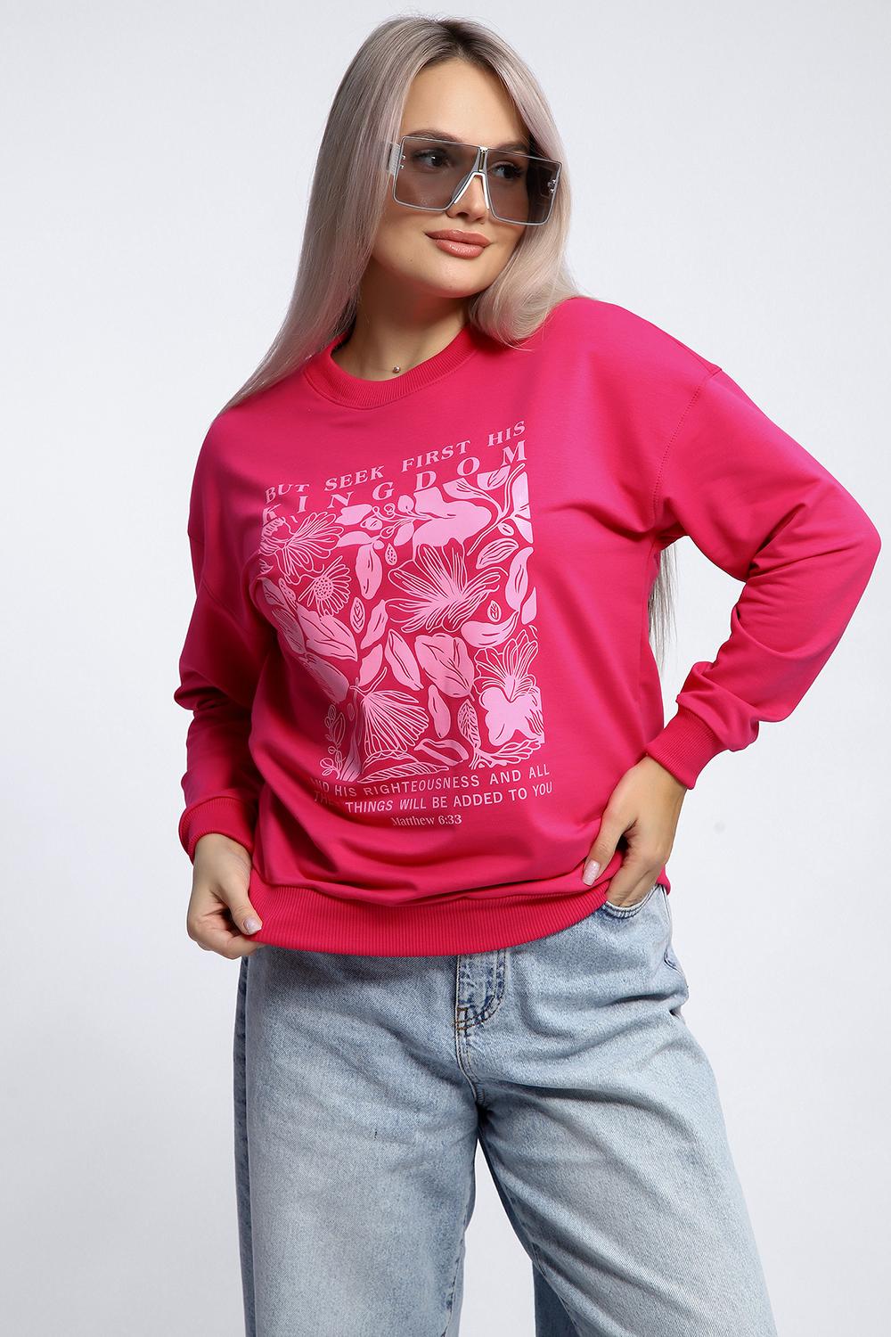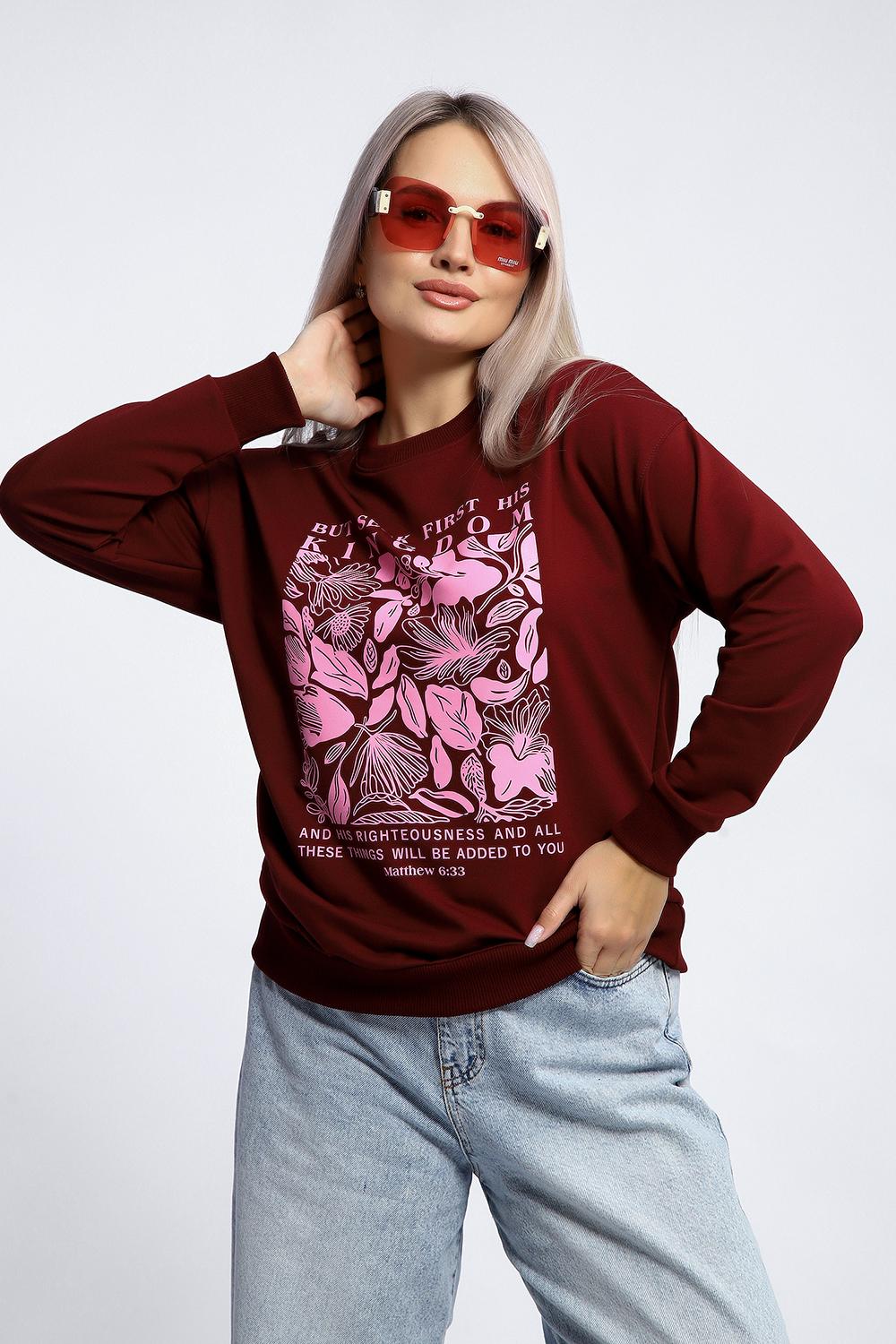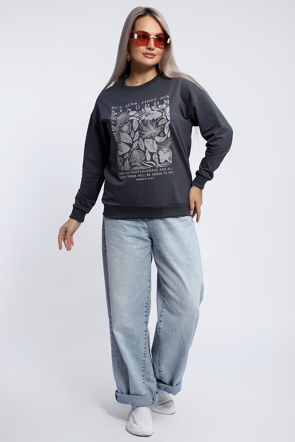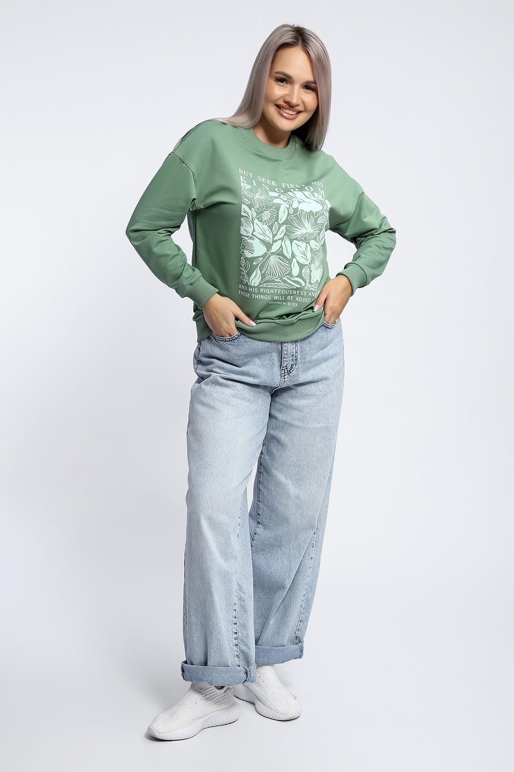 Толстовка свободного кроя "оверсайз" со спущенной линией плеча прекрасный вариант для прохладной погоды! Мягкое, эластичное кашкорсе в тон ткани использовано для отделки горловины, манжет и пояса. На полочке декоративный принт.