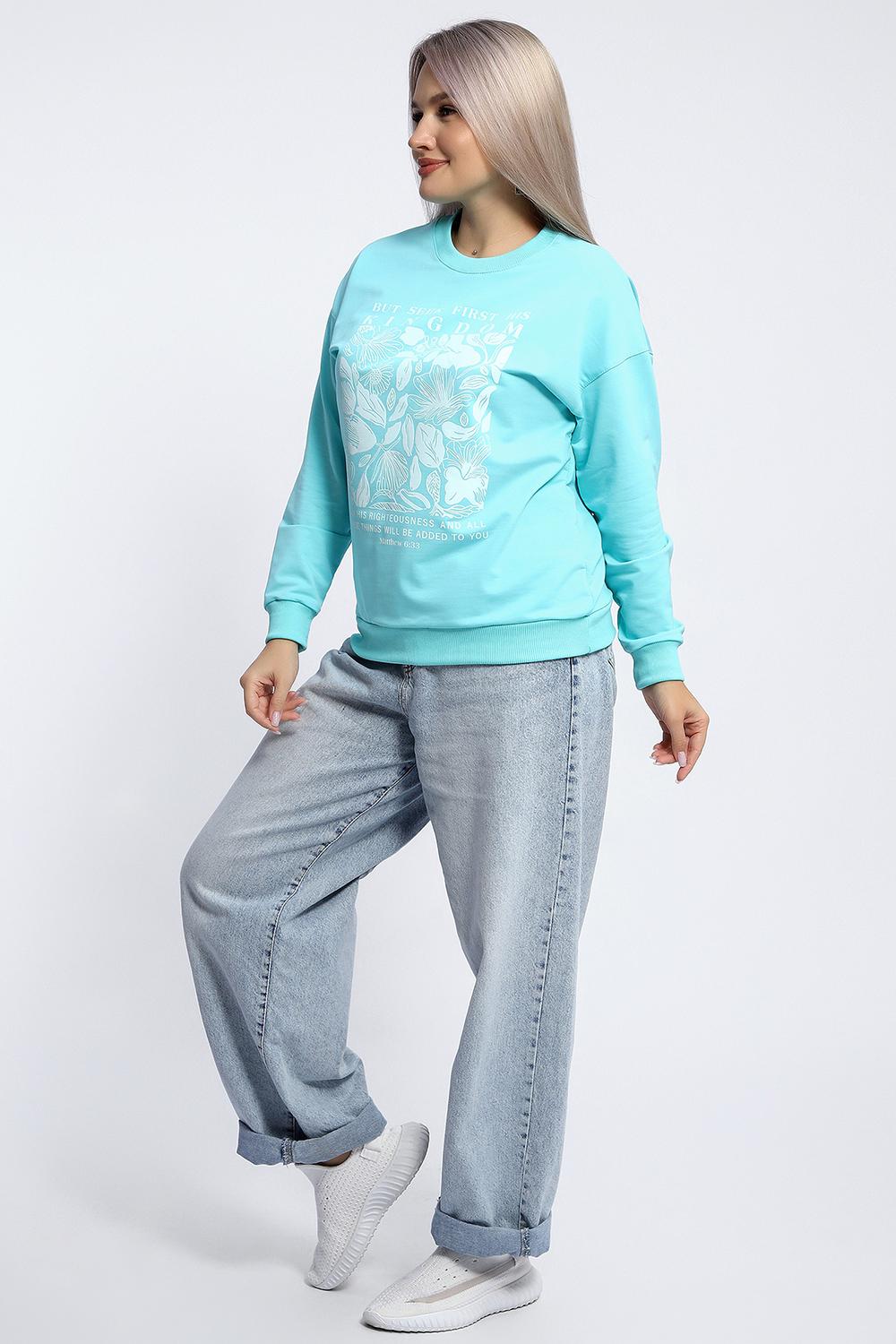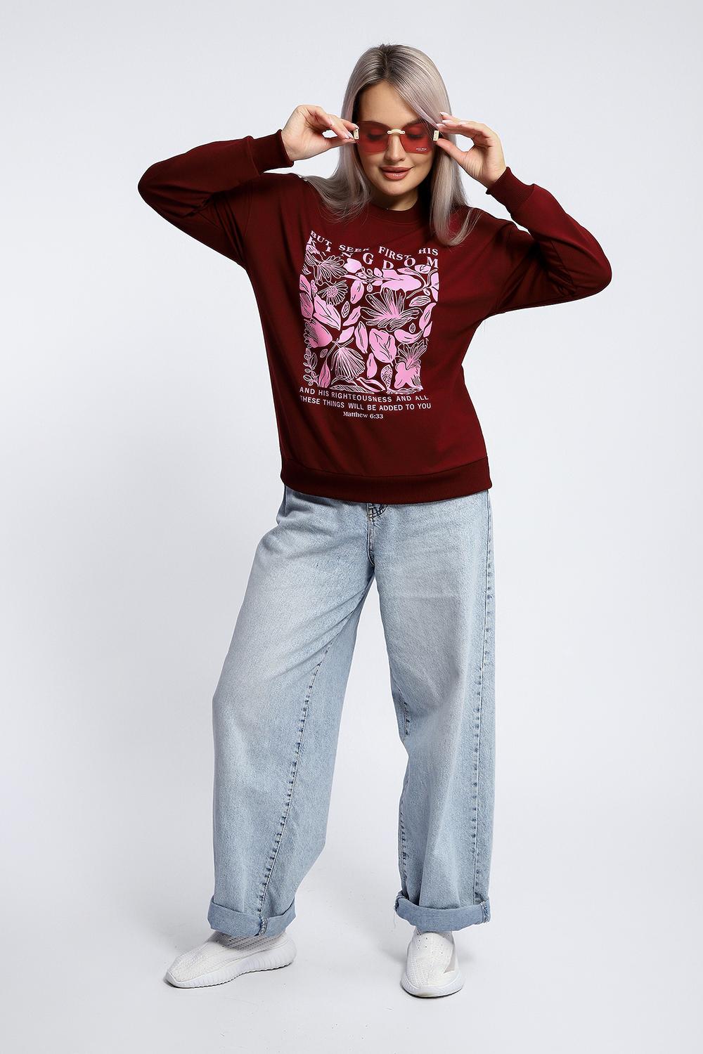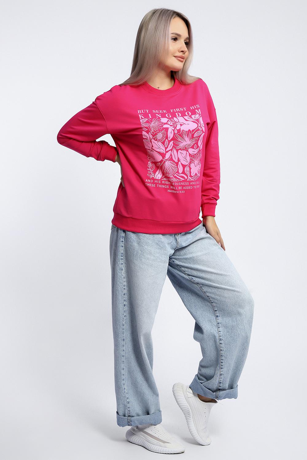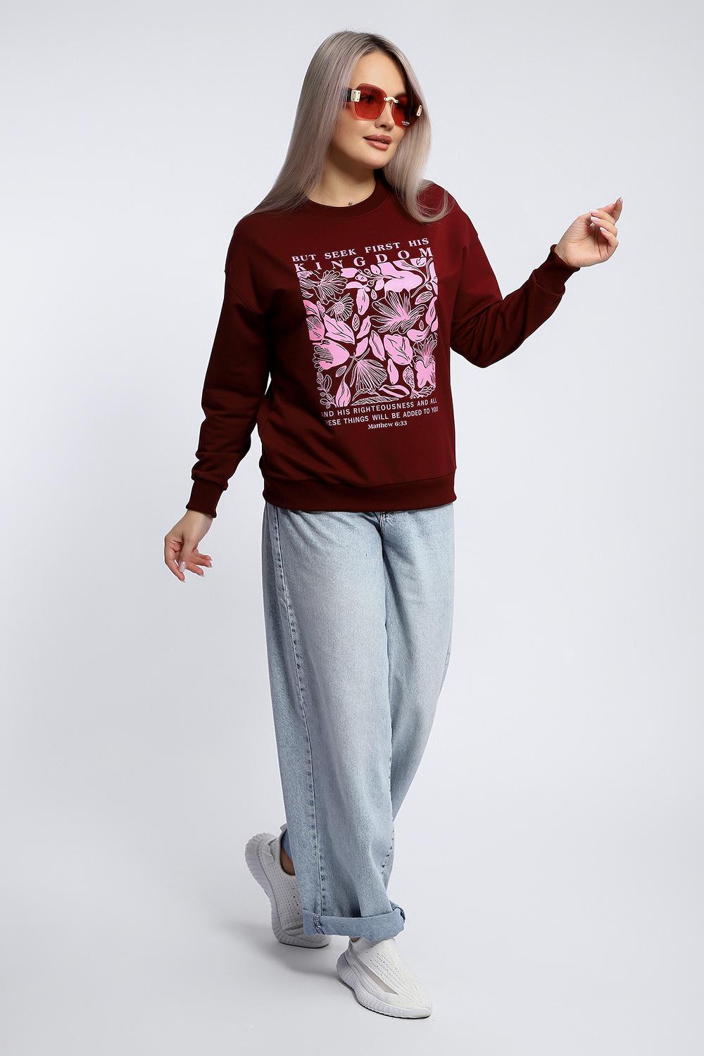 Толстовка свободного кроя "оверсайз" со спущенной линией плеча прекрасный вариант для прохладной погоды! Мягкое, эластичное кашкорсе в тон ткани использовано для отделки горловины, манжет и пояса. На полочке декоративный принт.