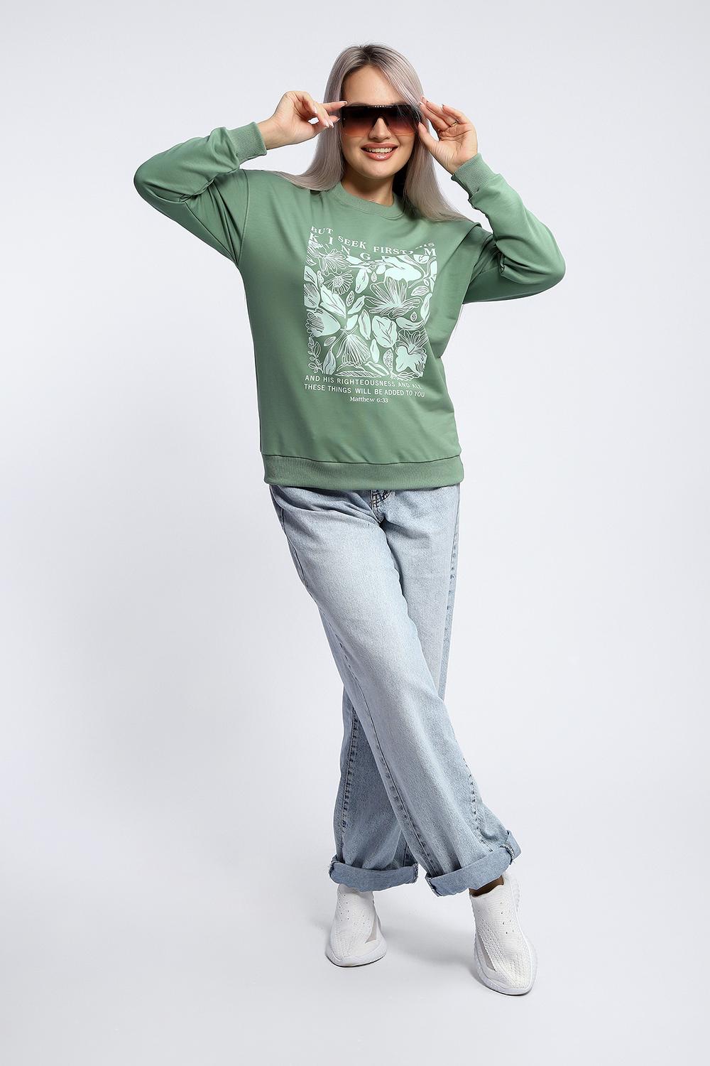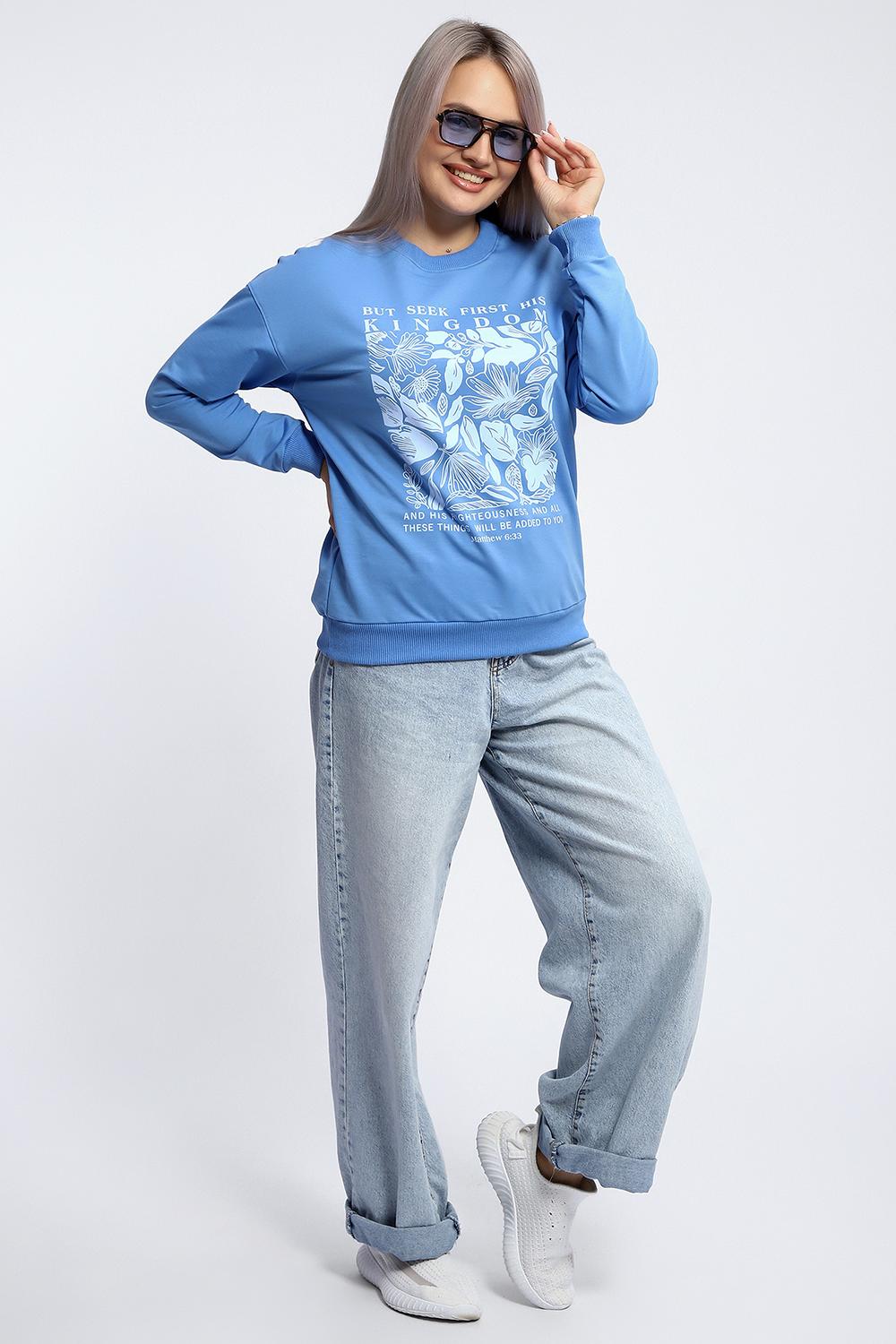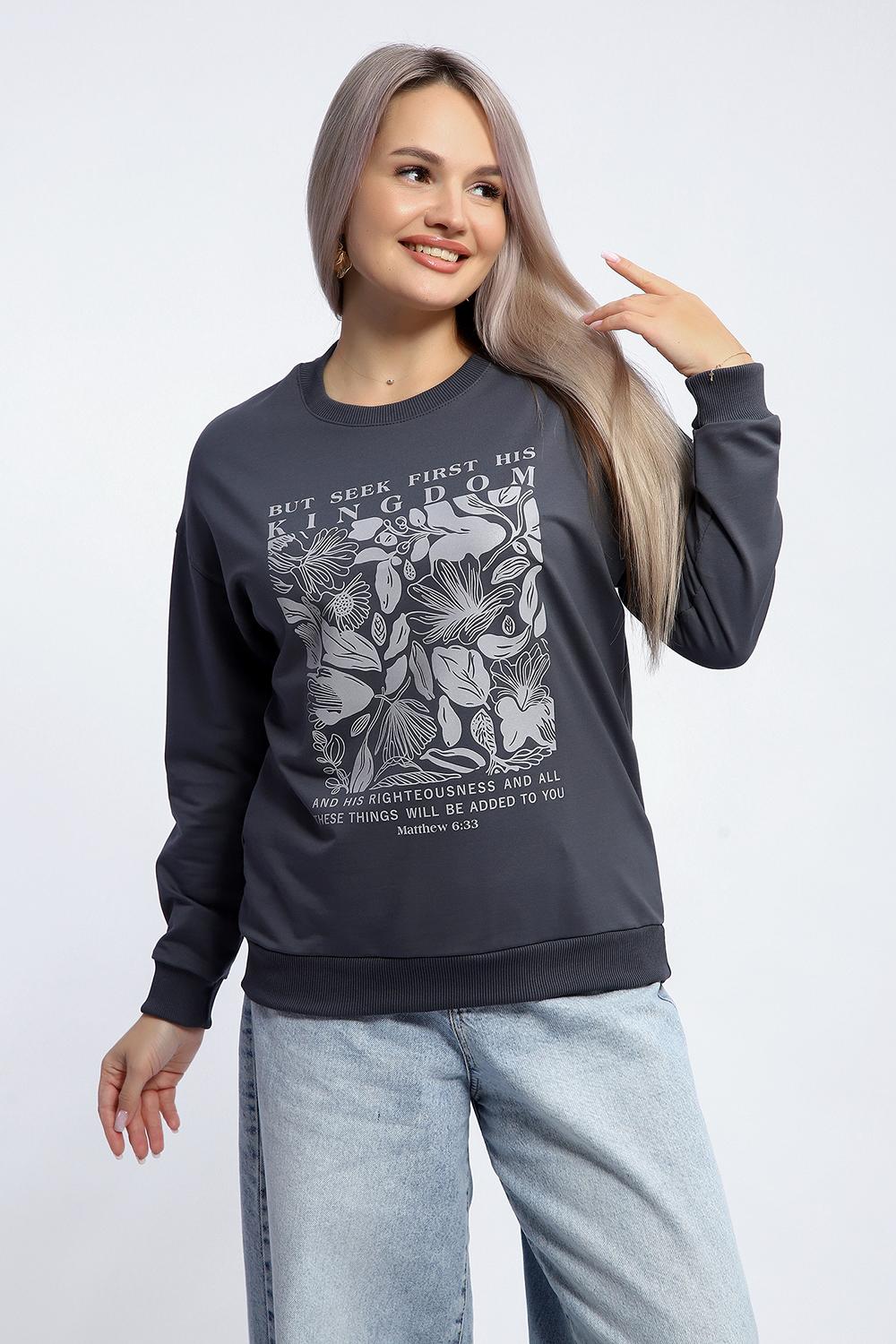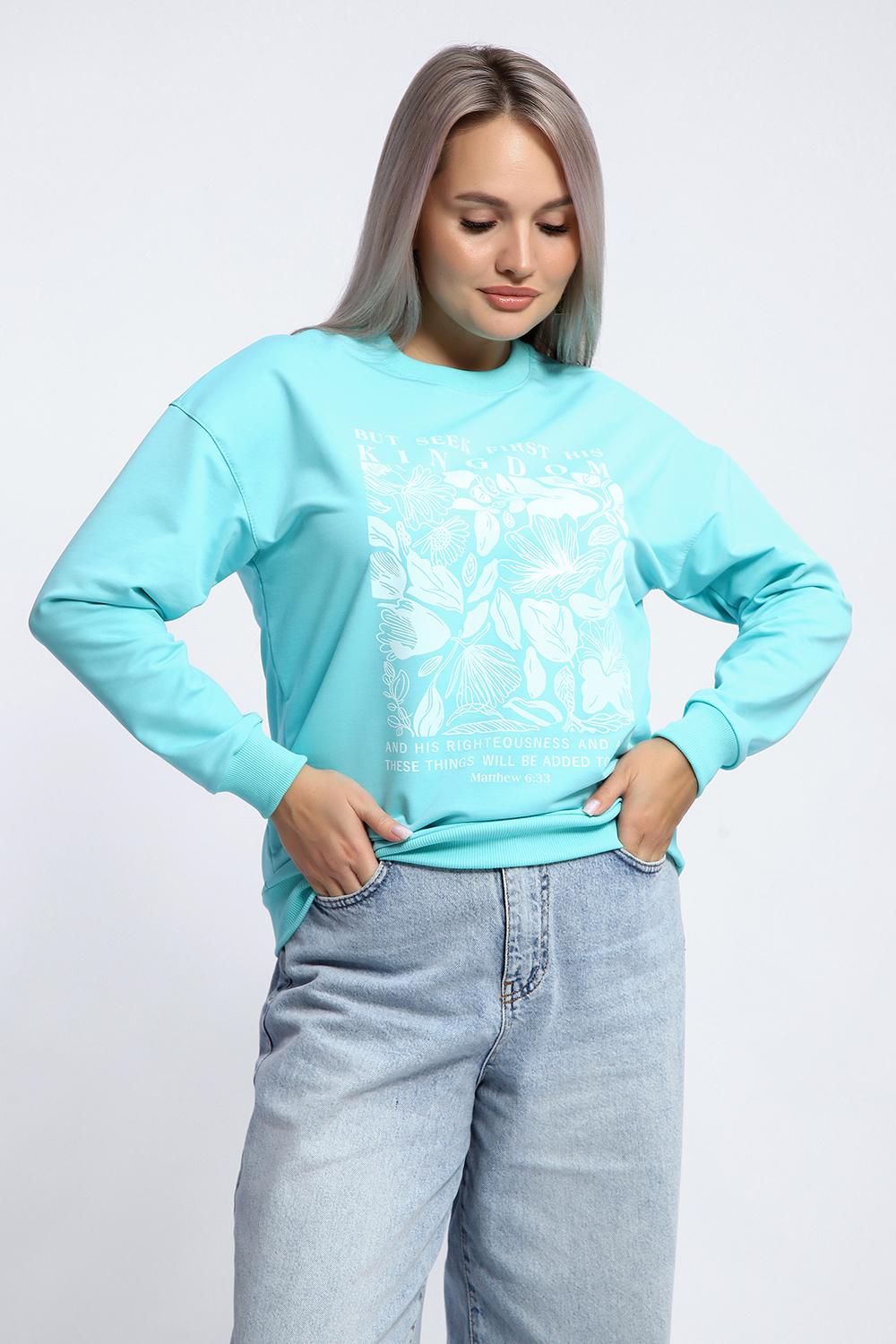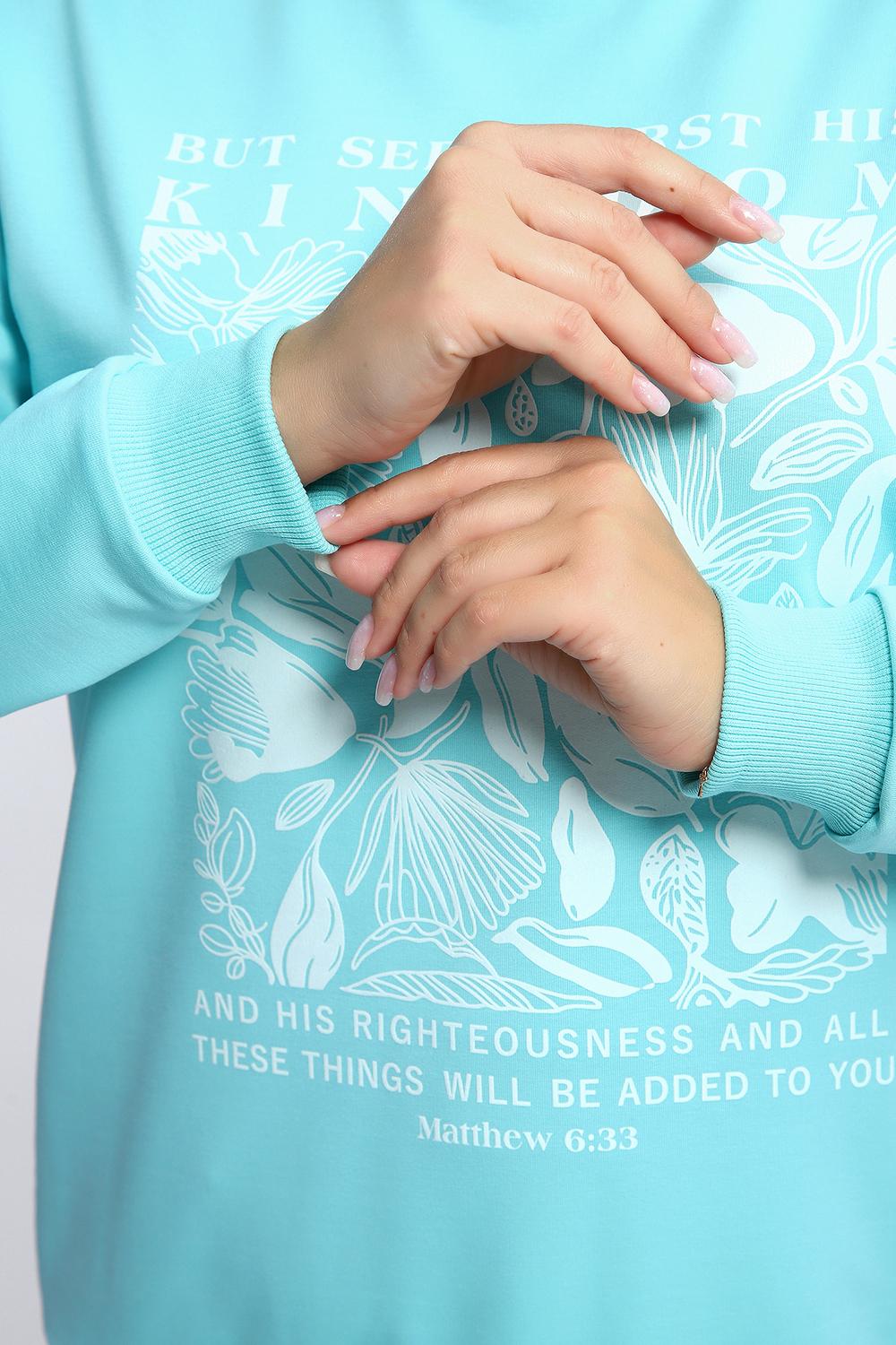 Толстовка свободного кроя "оверсайз" со спущенной линией плеча прекрасный вариант для прохладной погоды! Мягкое, эластичное кашкорсе в тон ткани использовано для отделки горловины, манжет и пояса. На полочке декоративный принт.