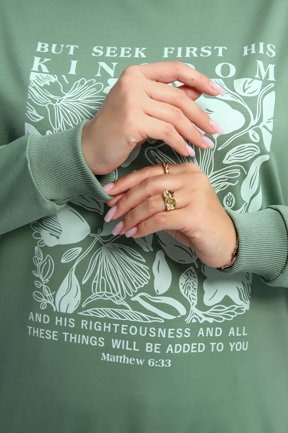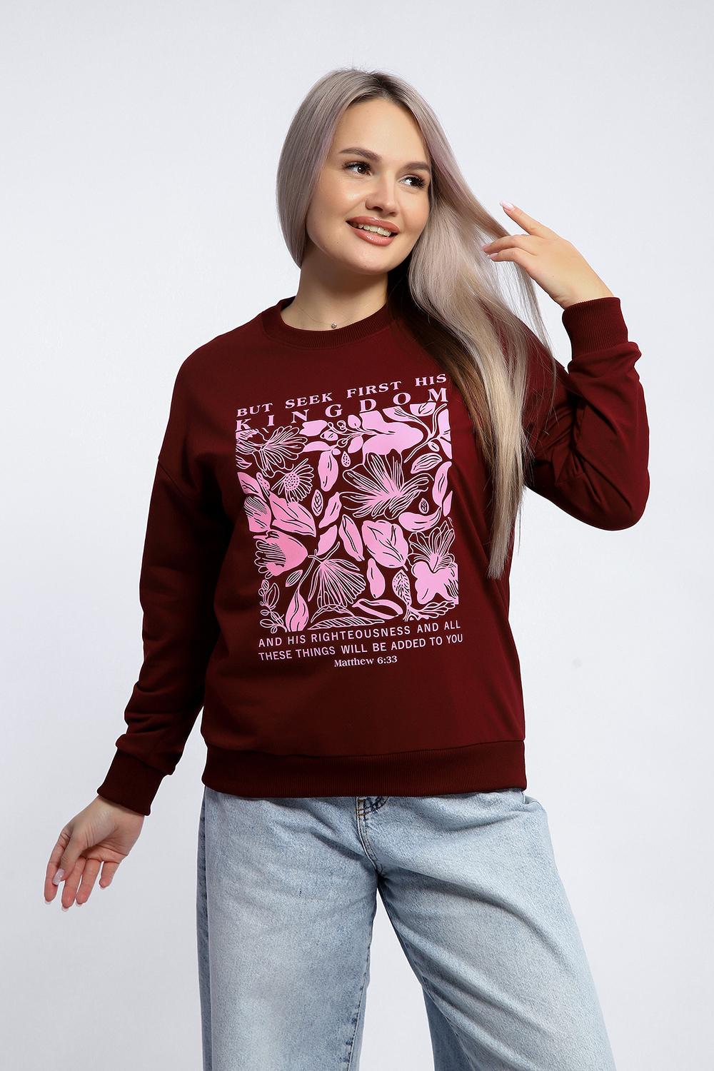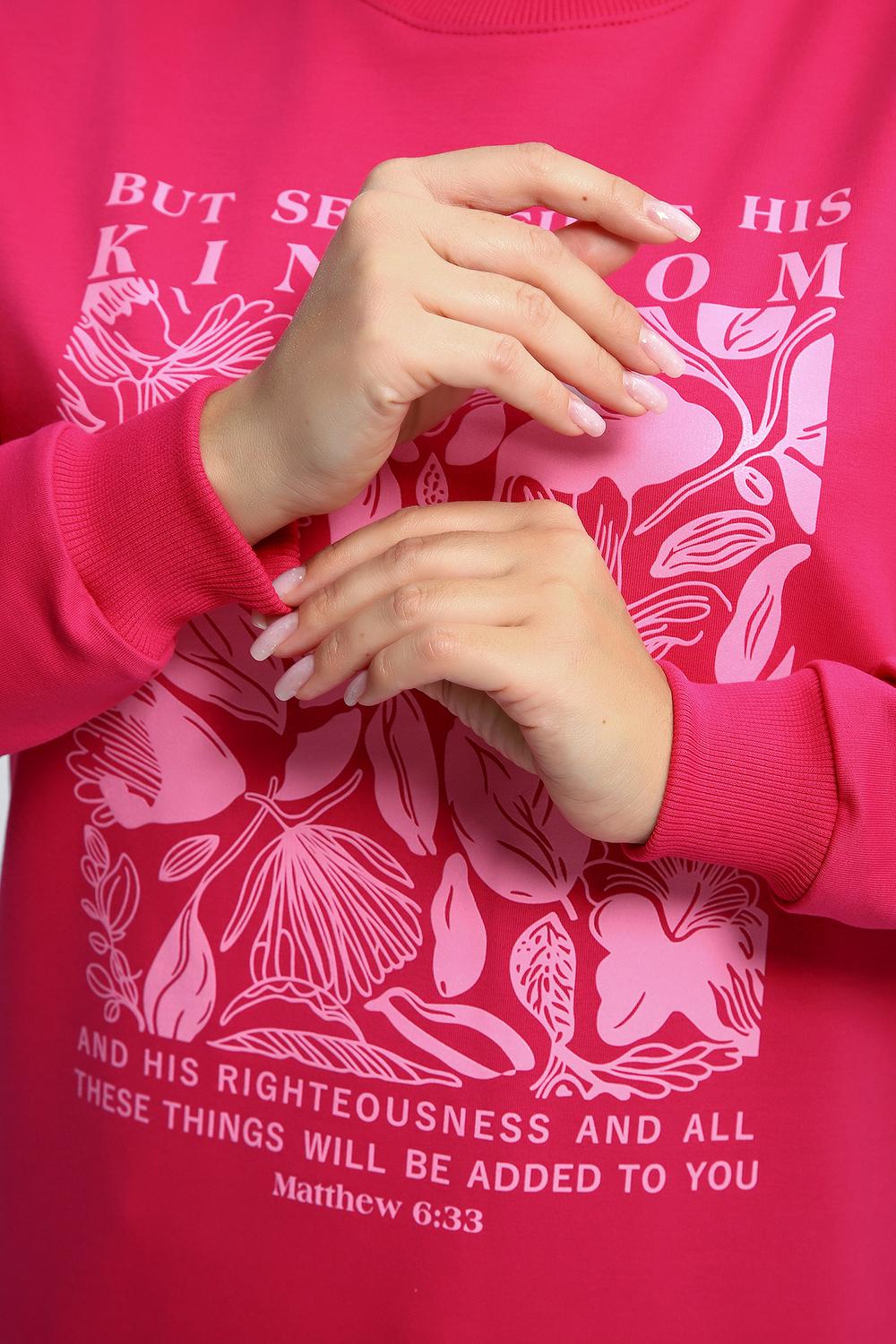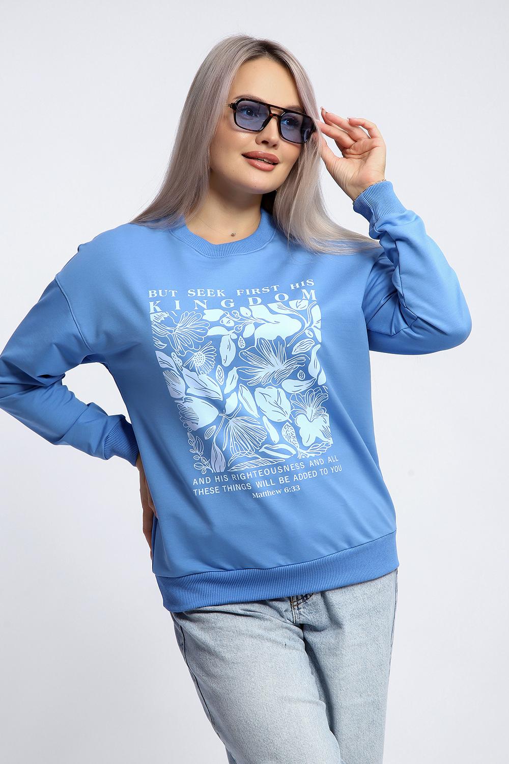 Толстовка свободного кроя "оверсайз" со спущенной линией плеча прекрасный вариант для прохладной погоды! Мягкое, эластичное кашкорсе в тон ткани использовано для отделки горловины, манжет и пояса. На полочке декоративный принт.