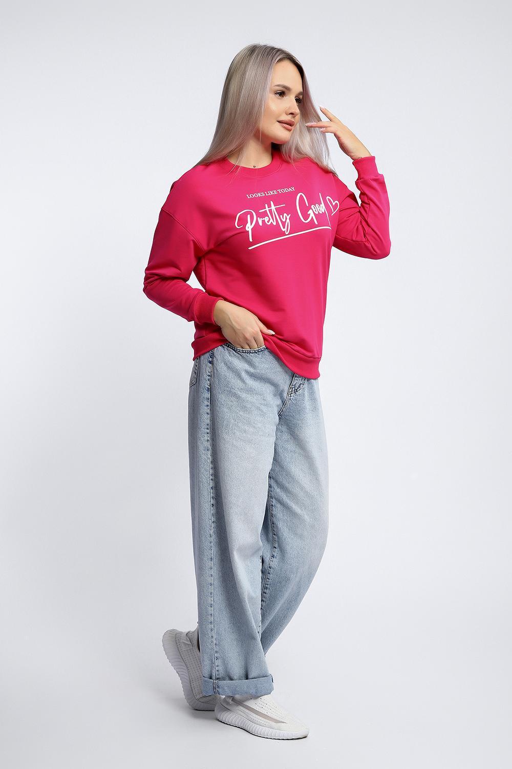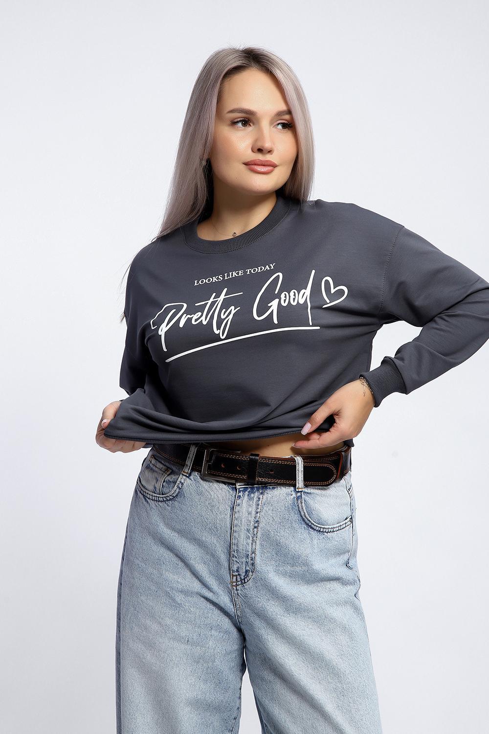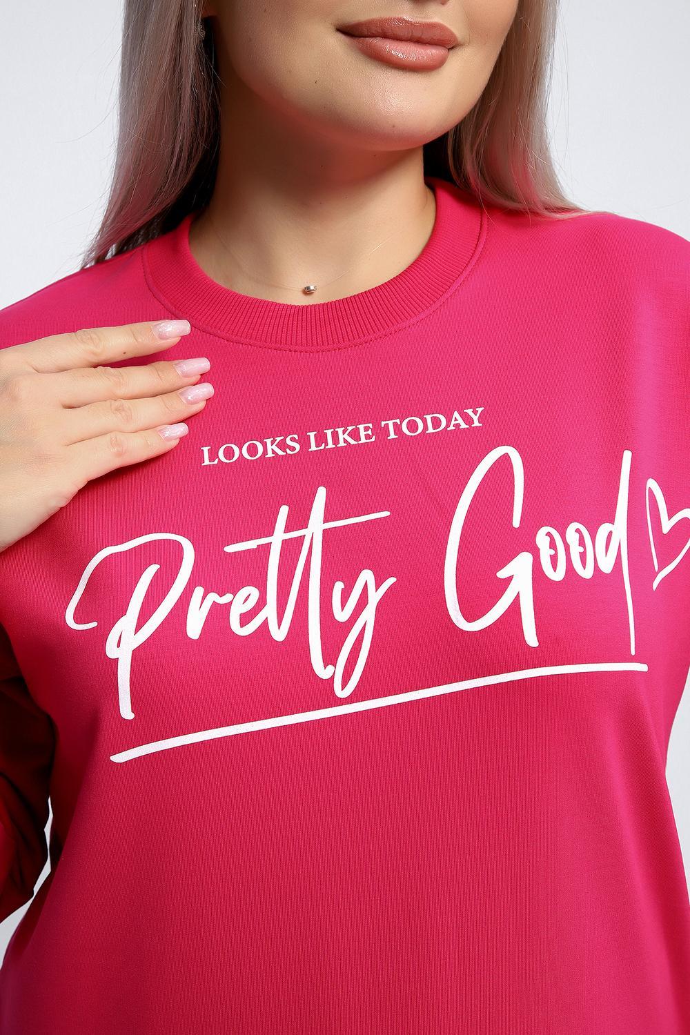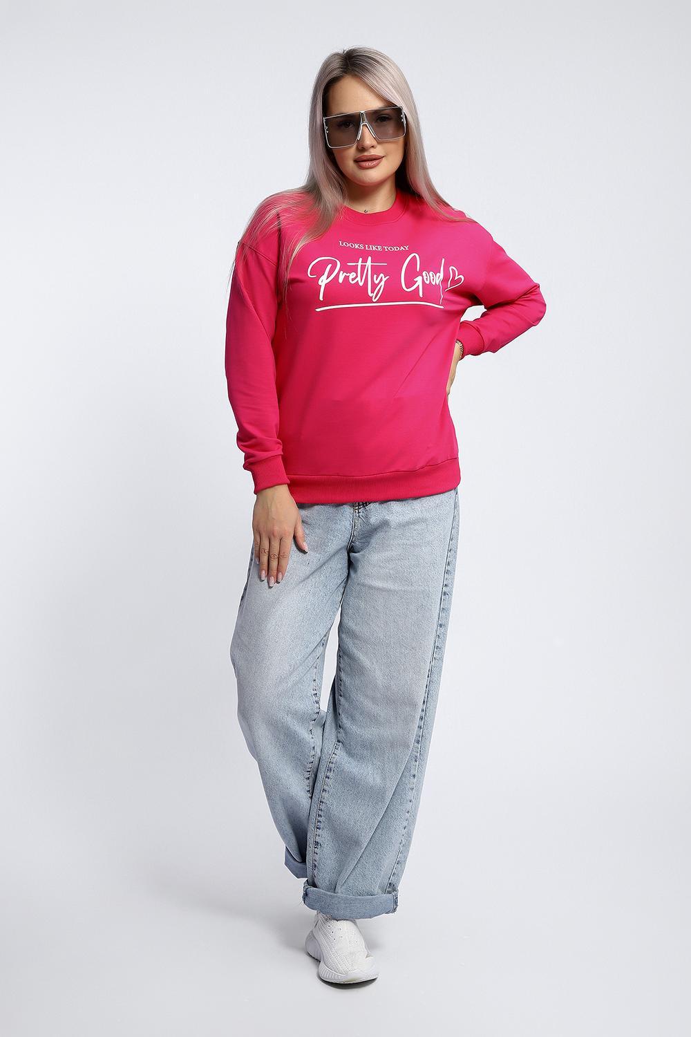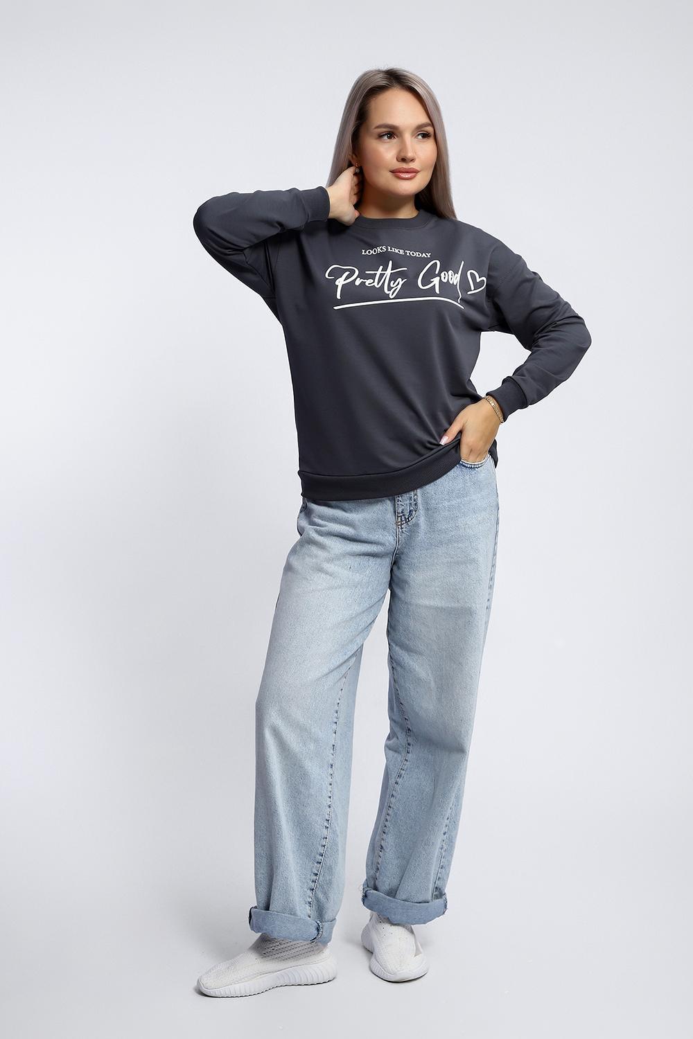 Толстовка свободного кроя "оверсайз" со спущенной линией плеча прекрасный вариант для прохладной погоды! Мягкое, эластичное кашкорсе в тон ткани использовано для отделки горловины, манжет и пояса. На полочке декоративный принт.