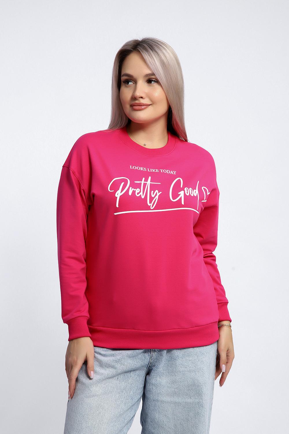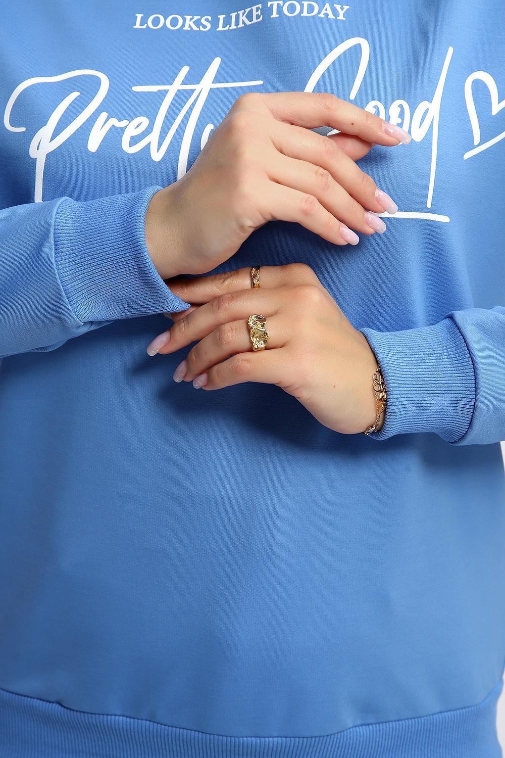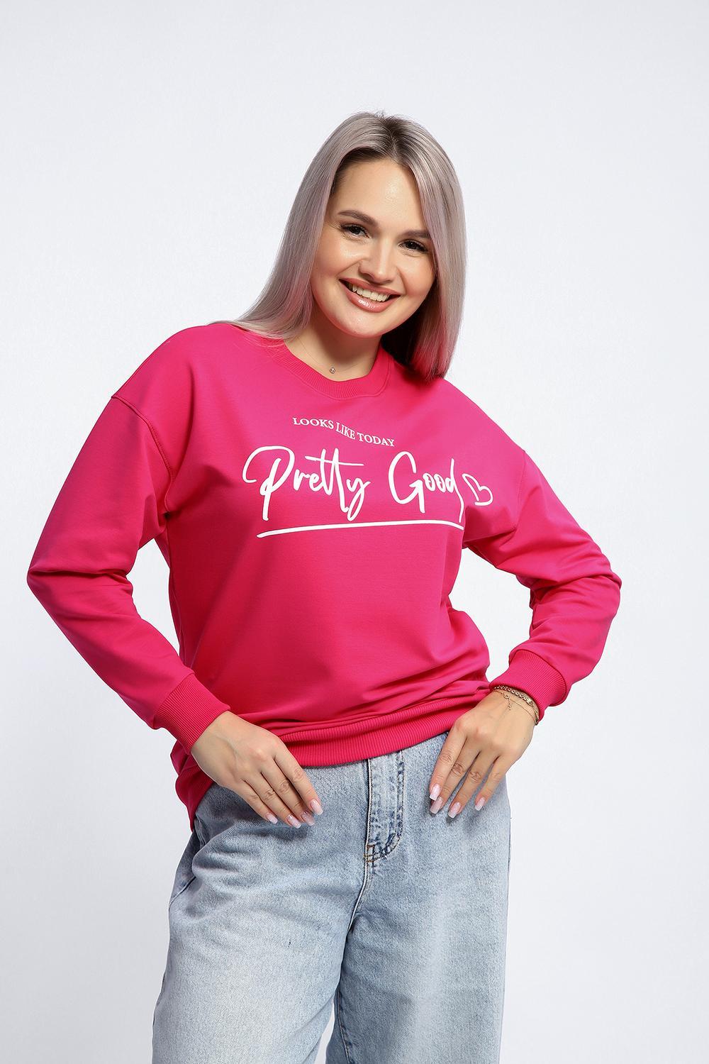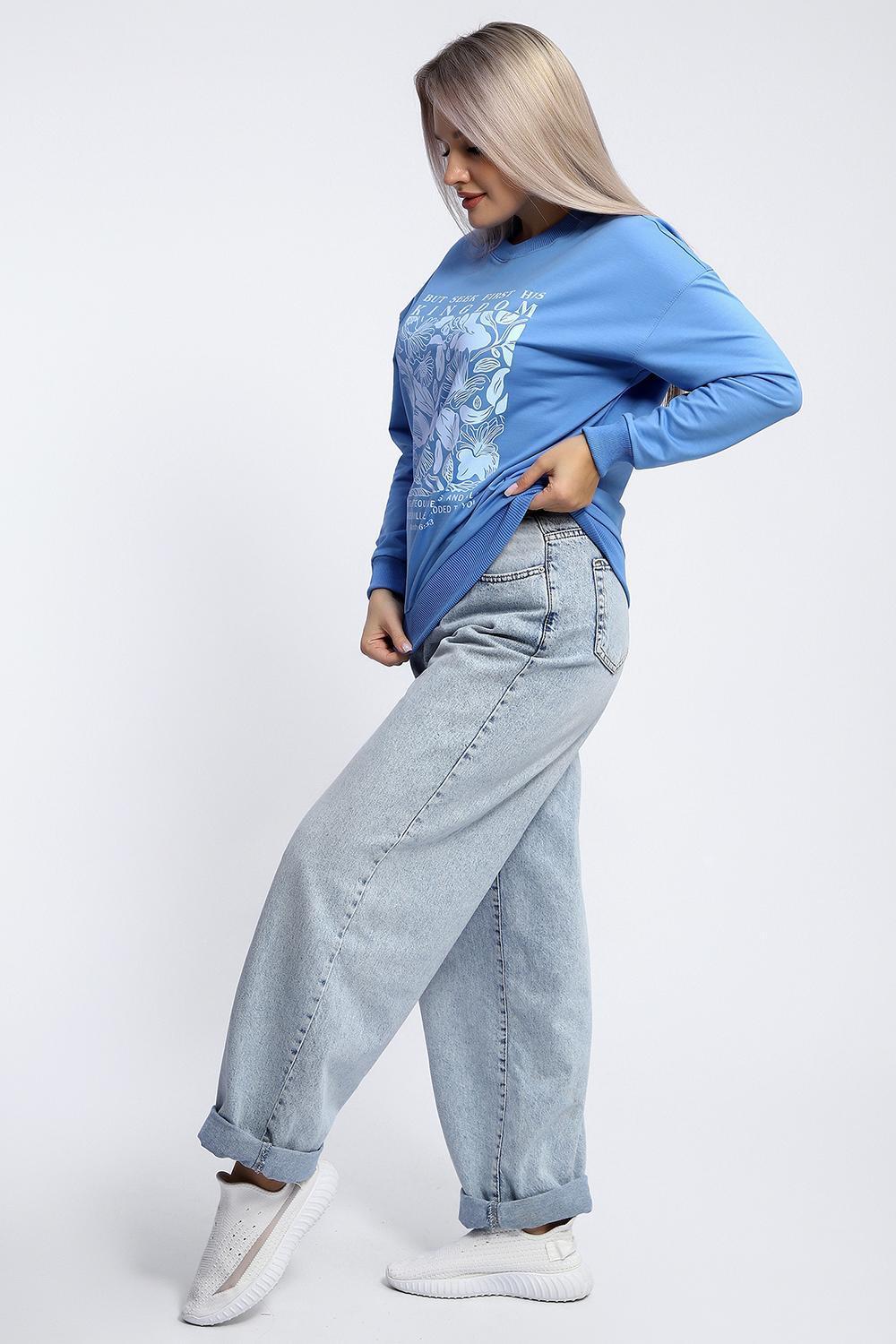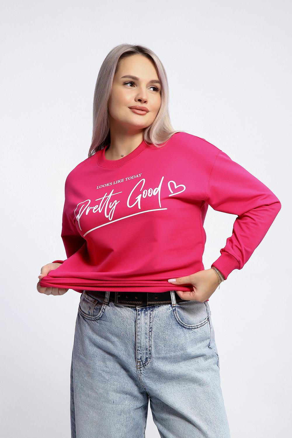 Толстовка свободного кроя "оверсайз" со спущенной линией плеча прекрасный вариант для прохладной погоды! Мягкое, эластичное кашкорсе в тон ткани использовано для отделки горловины, манжет и пояса. На полочке декоративный принт.