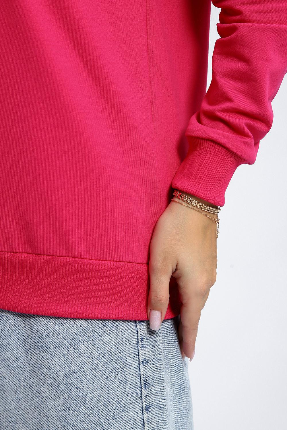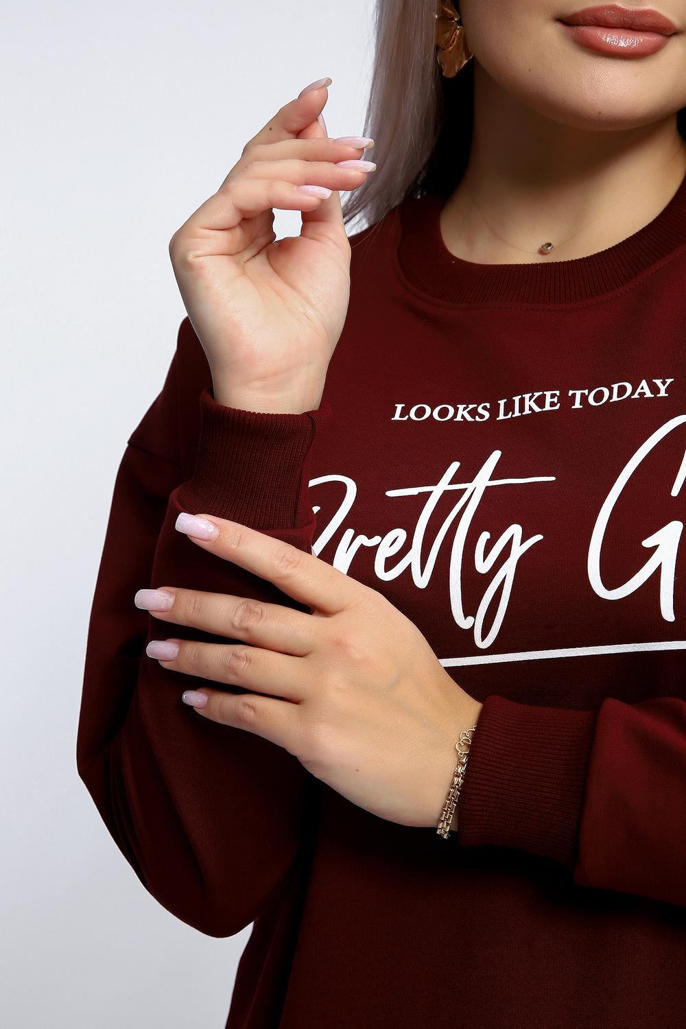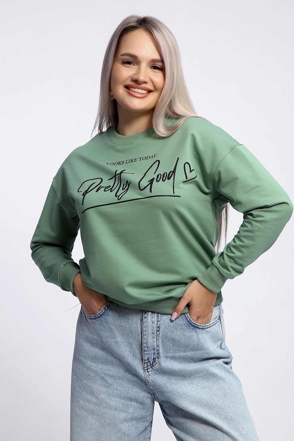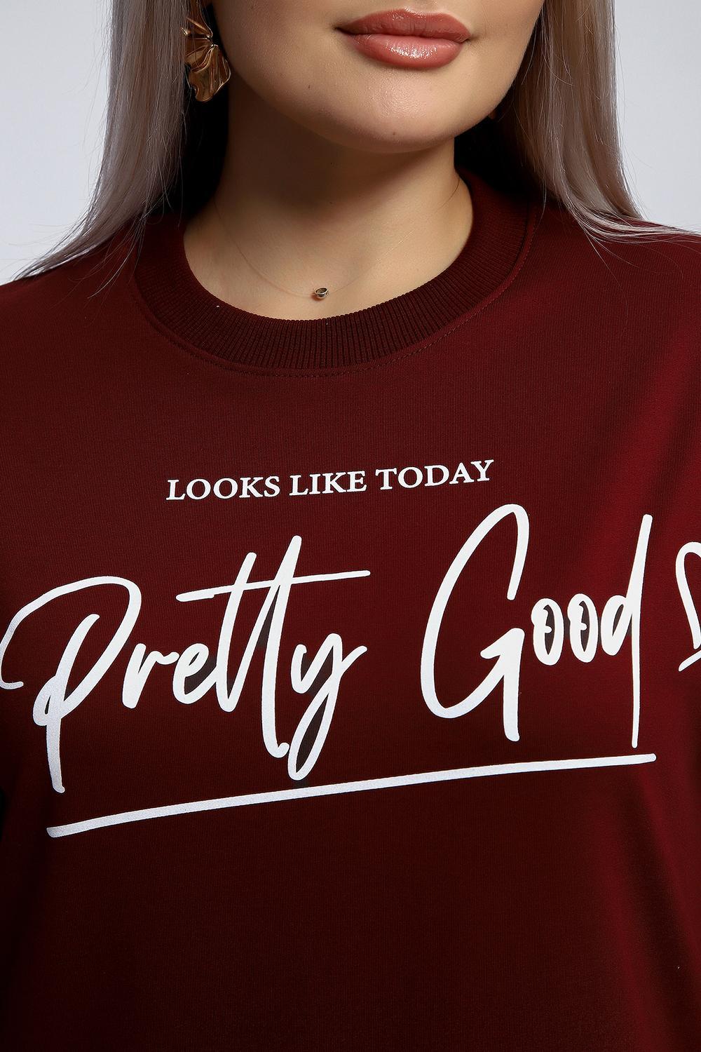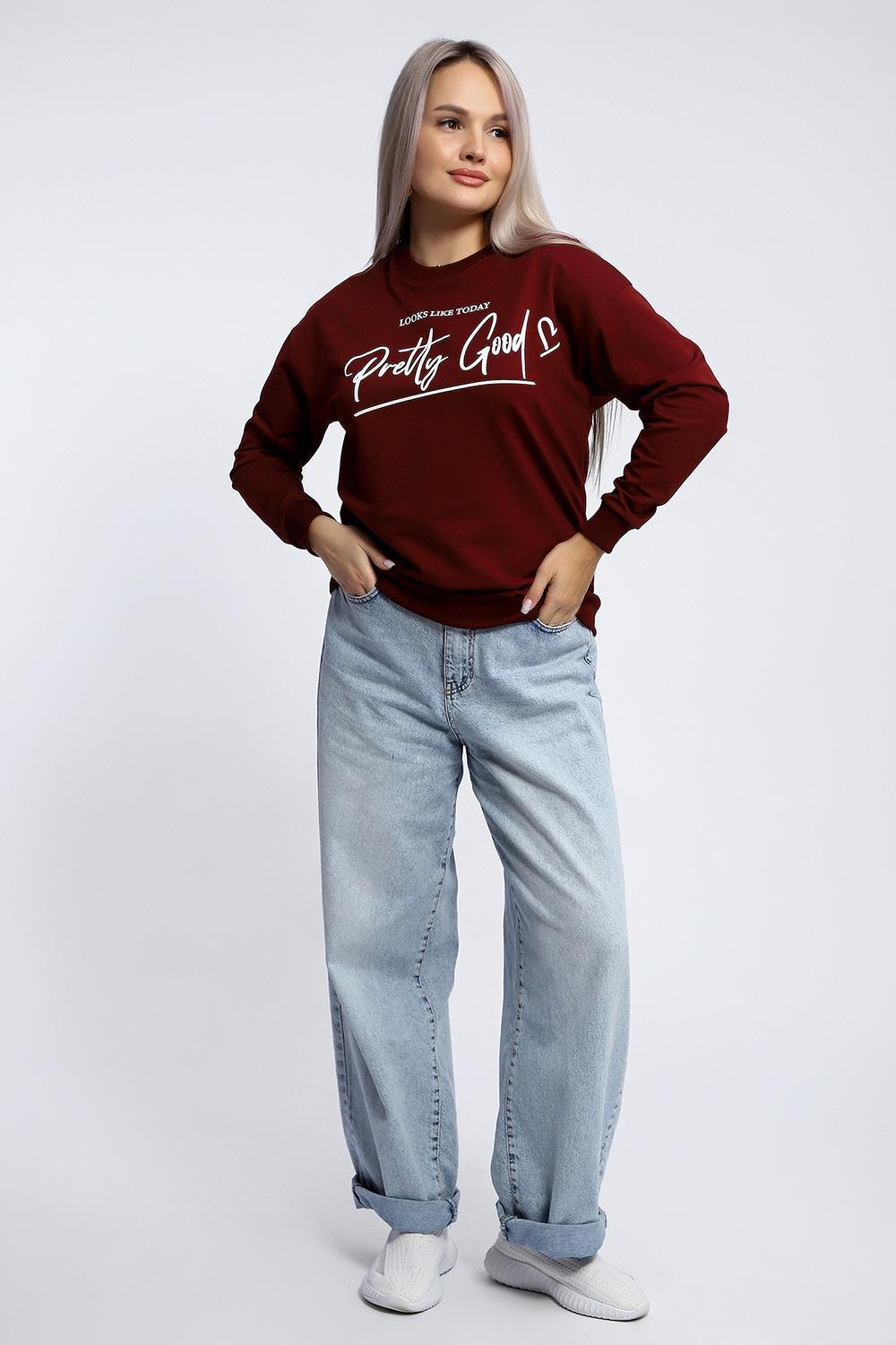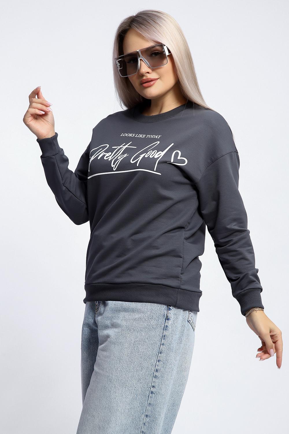 Толстовка свободного кроя "оверсайз" со спущенной линией плеча прекрасный вариант для прохладной погоды! Мягкое, эластичное кашкорсе в тон ткани использовано для отделки горловины, манжет и пояса. На полочке декоративный принт.