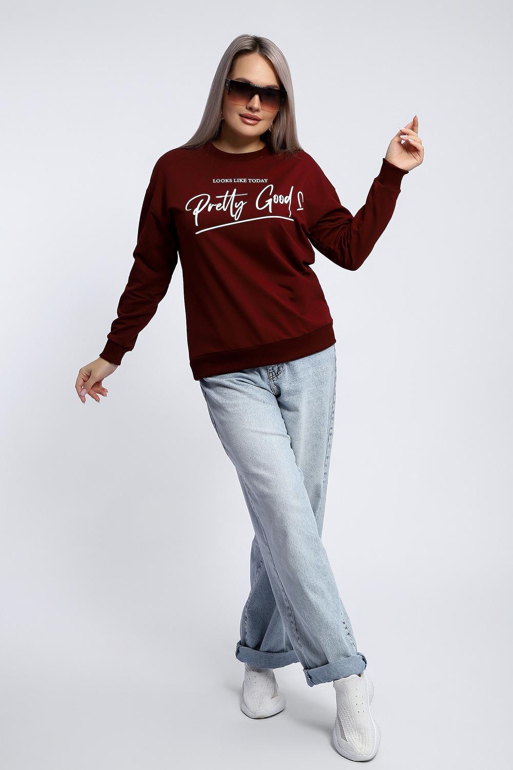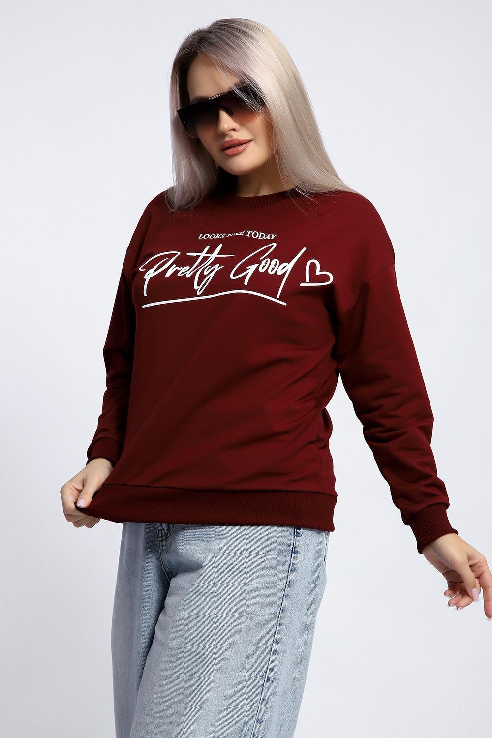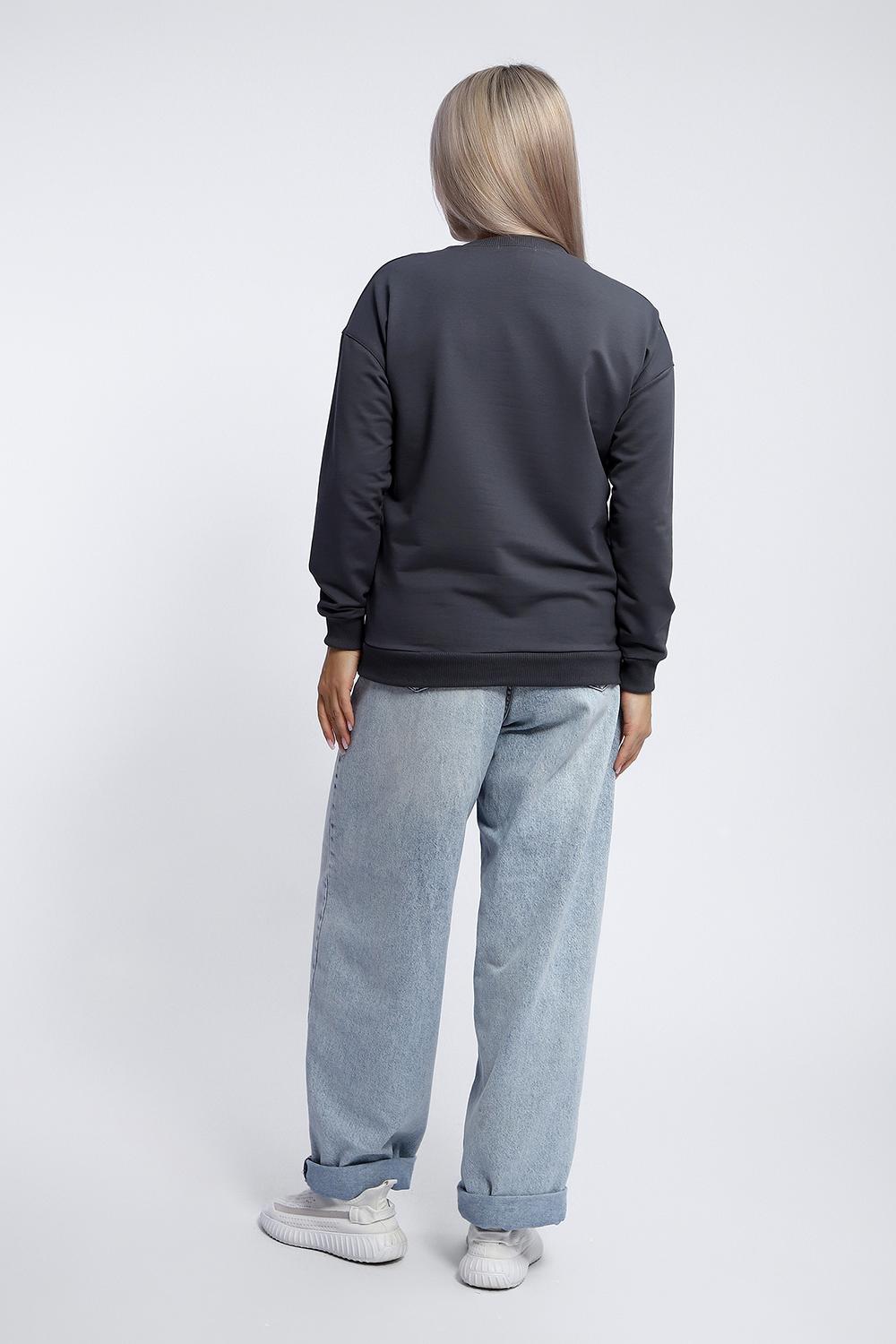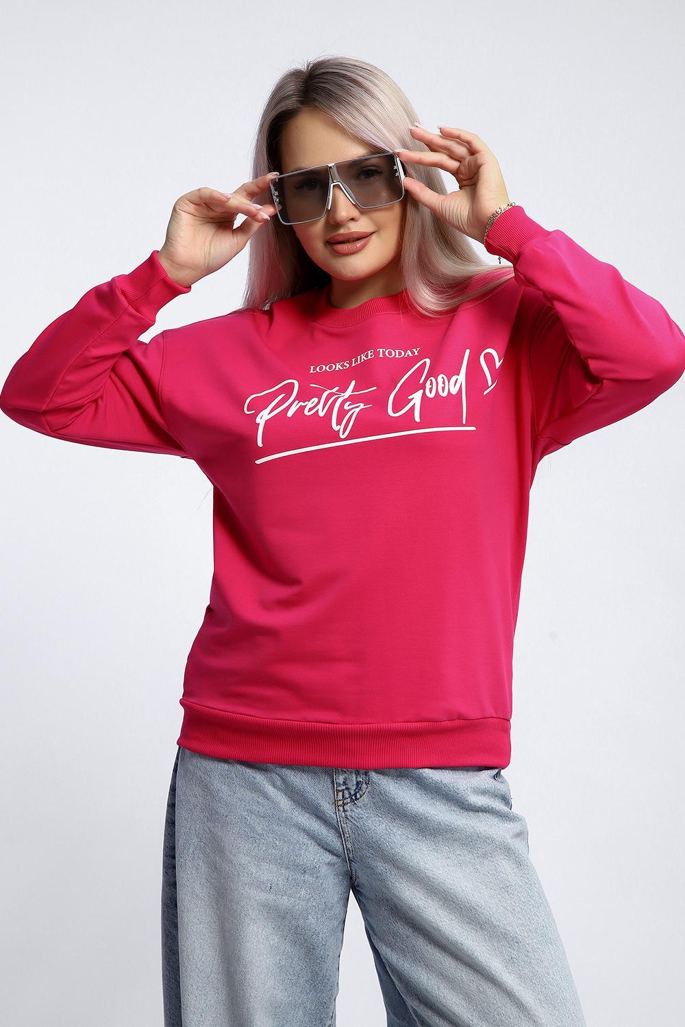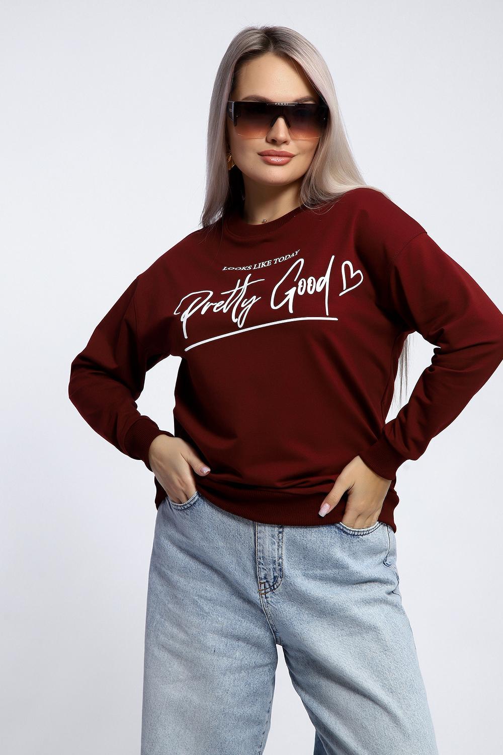Толстовка свободного кроя "оверсайз" со спущенной линией плеча прекрасный вариант для прохладной погоды! Мягкое, эластичное кашкорсе в тон ткани использовано для отделки горловины, манжет и пояса. На полочке декоративный принт.
