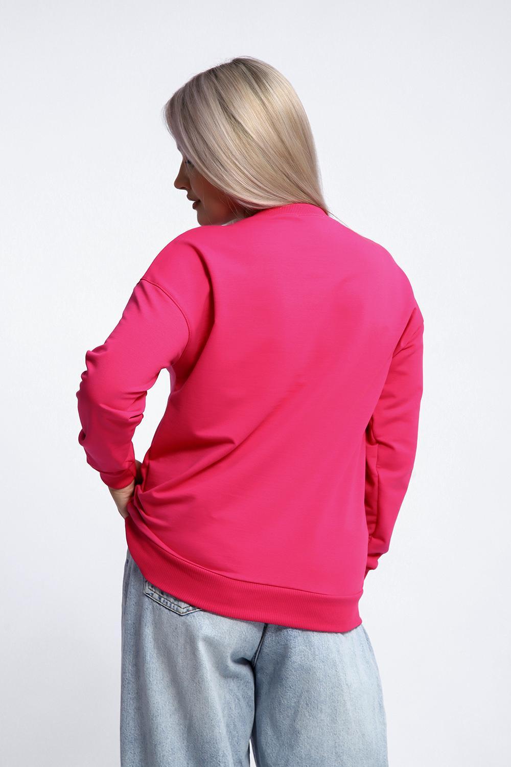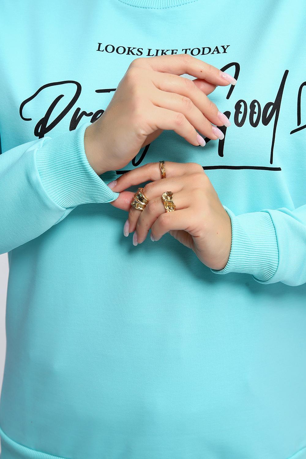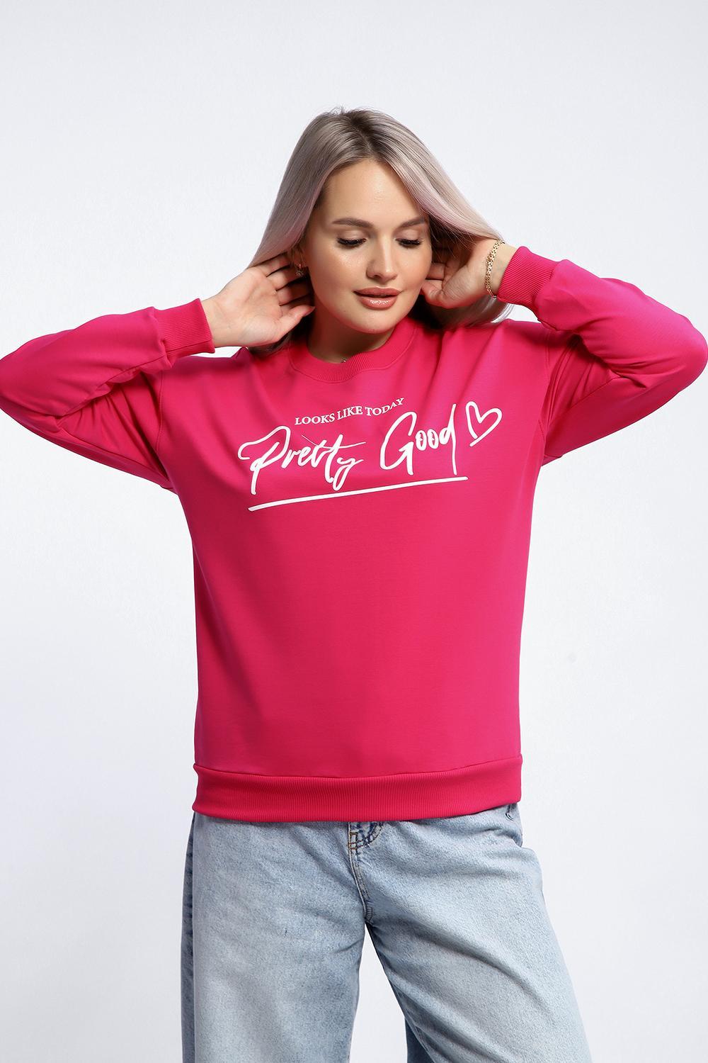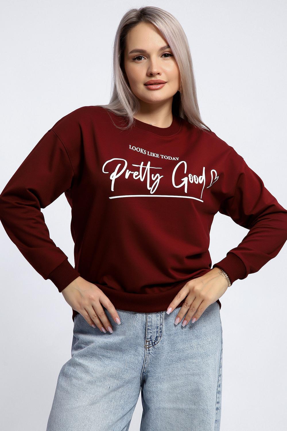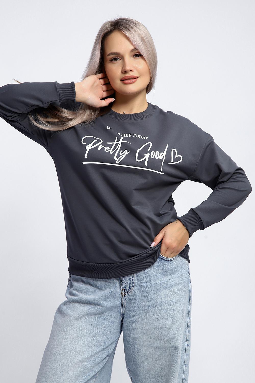 Толстовка свободного кроя "оверсайз" со спущенной линией плеча прекрасный вариант для прохладной погоды! Мягкое, эластичное кашкорсе в тон ткани использовано для отделки горловины, манжет и пояса. На полочке декоративный принт.