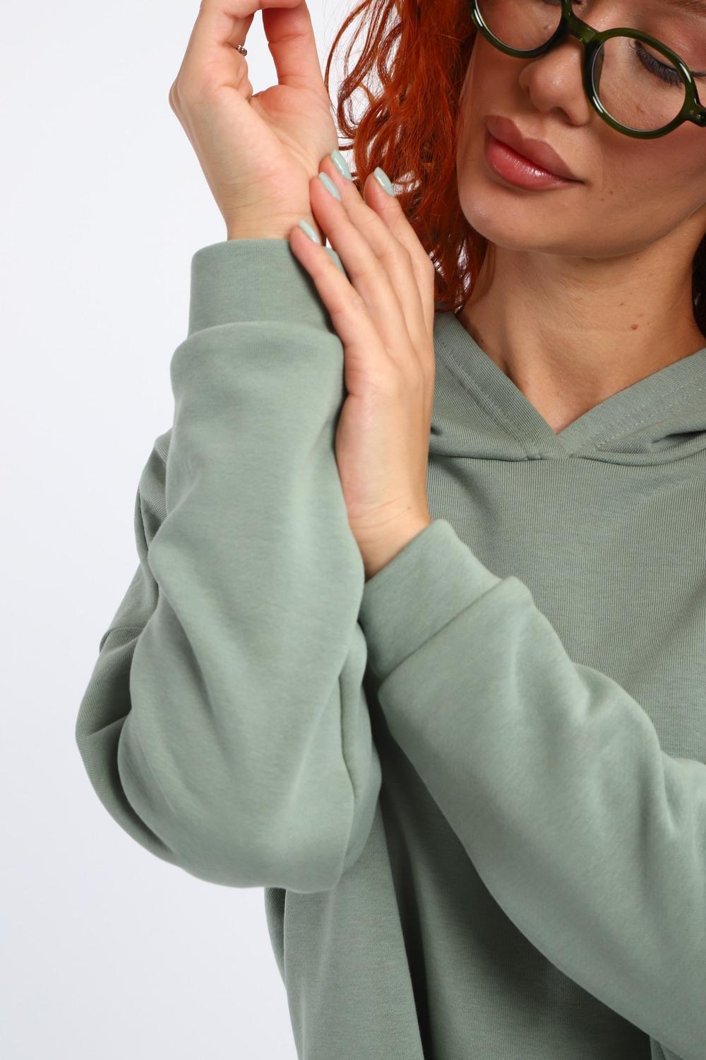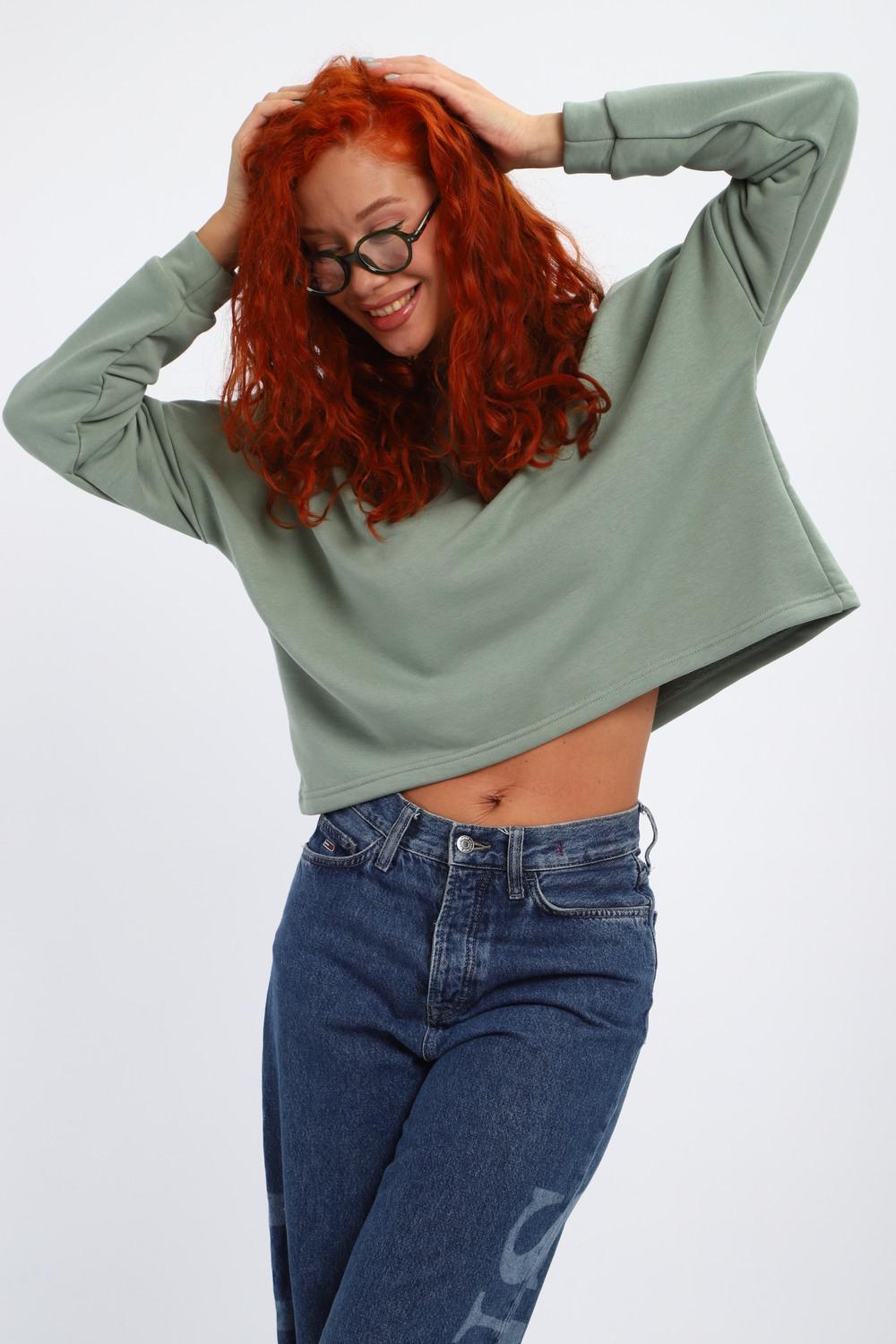 Толстовка - укороченная - это модный и стильный женский свитшот, который позволяет с легкостью создавать яркие образы. Она станет отличным дополнением к вашему гардеробу. Особенностью этой толстовки является его оверсайз фасон, который позволяет скрыть недостатки фигуры и подчеркнуть ее достоинства. Благодаря своей свободной посадке, он удобен в носке, не сковывает движения и придает легкость образу. Однотонная трикотажная толстовка - свободного кроя выполнена из мягкого, но плотного футера 3х нитки, который прекрасно держит форму, остается комфортным осенью и весной, подходит для демисезонных тренировок, фитнеса, танцев, бега и домашней носки.