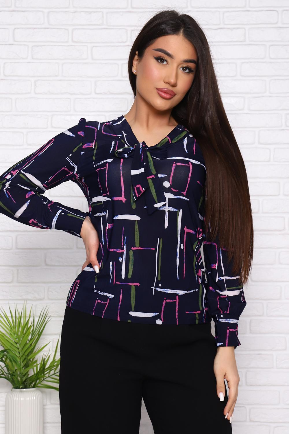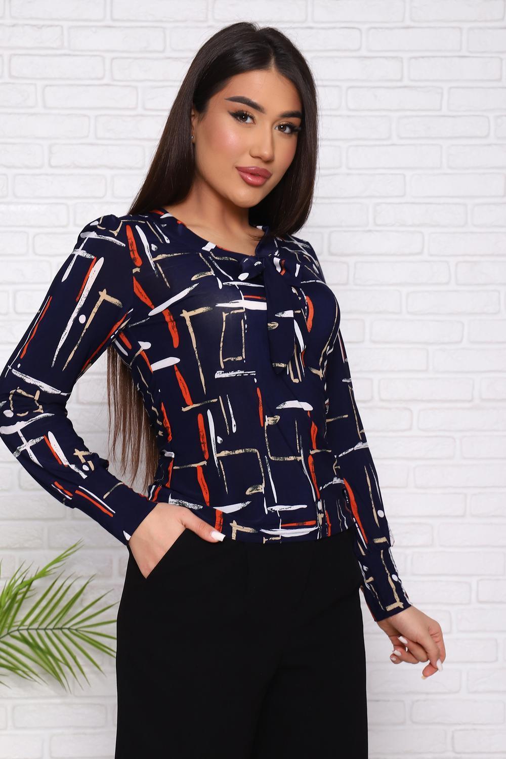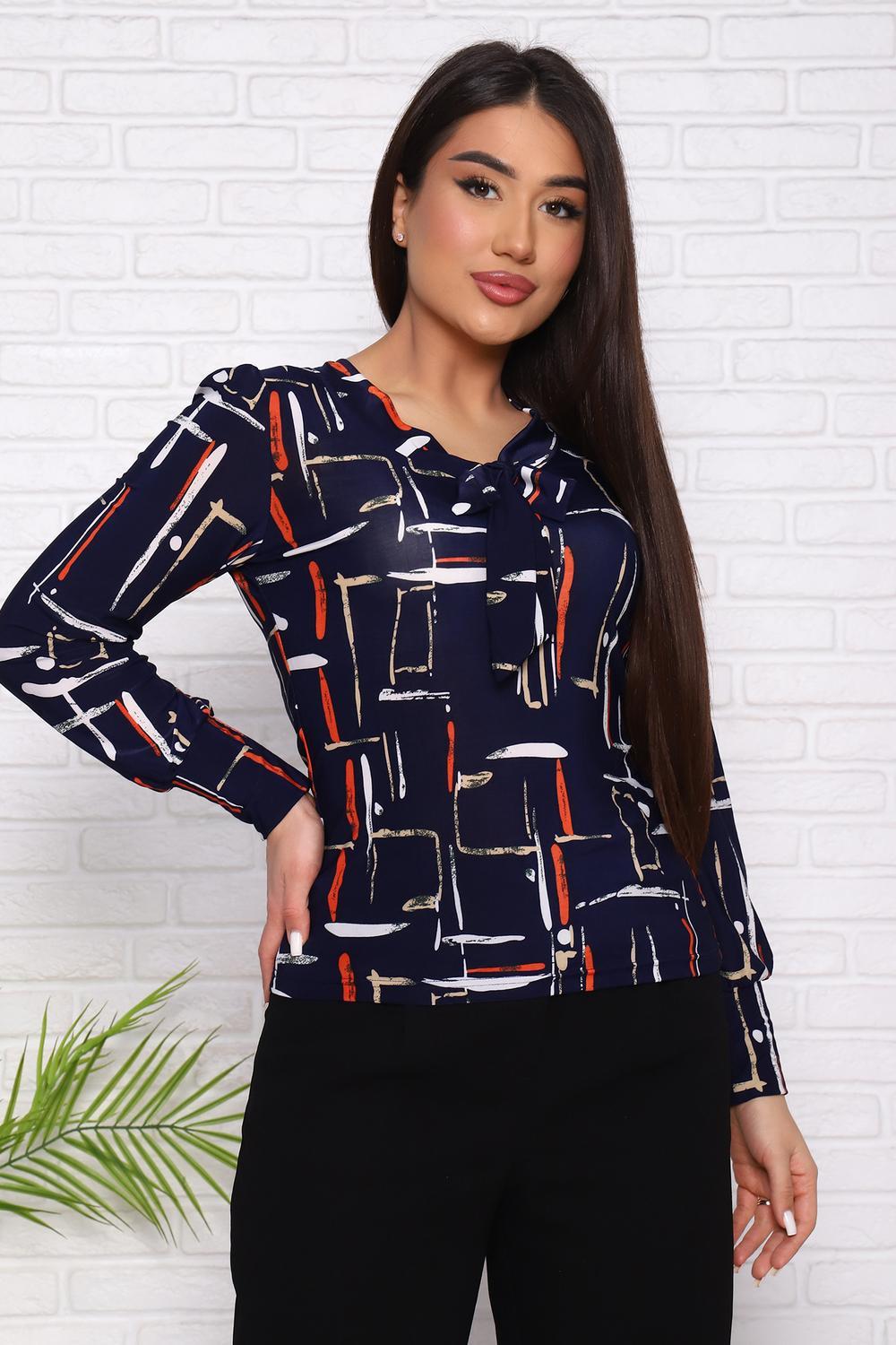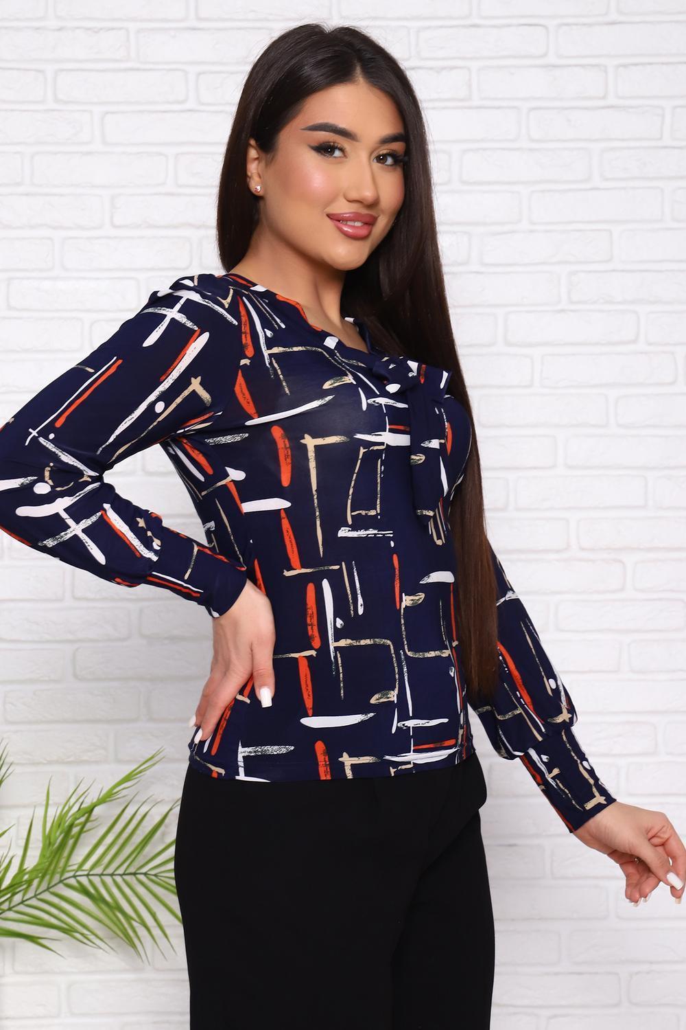 Женский джемпер с оригинальным вырезом, переходящим в завязки, приталенного силуэта. Рукав длинный с плотным манжетом.