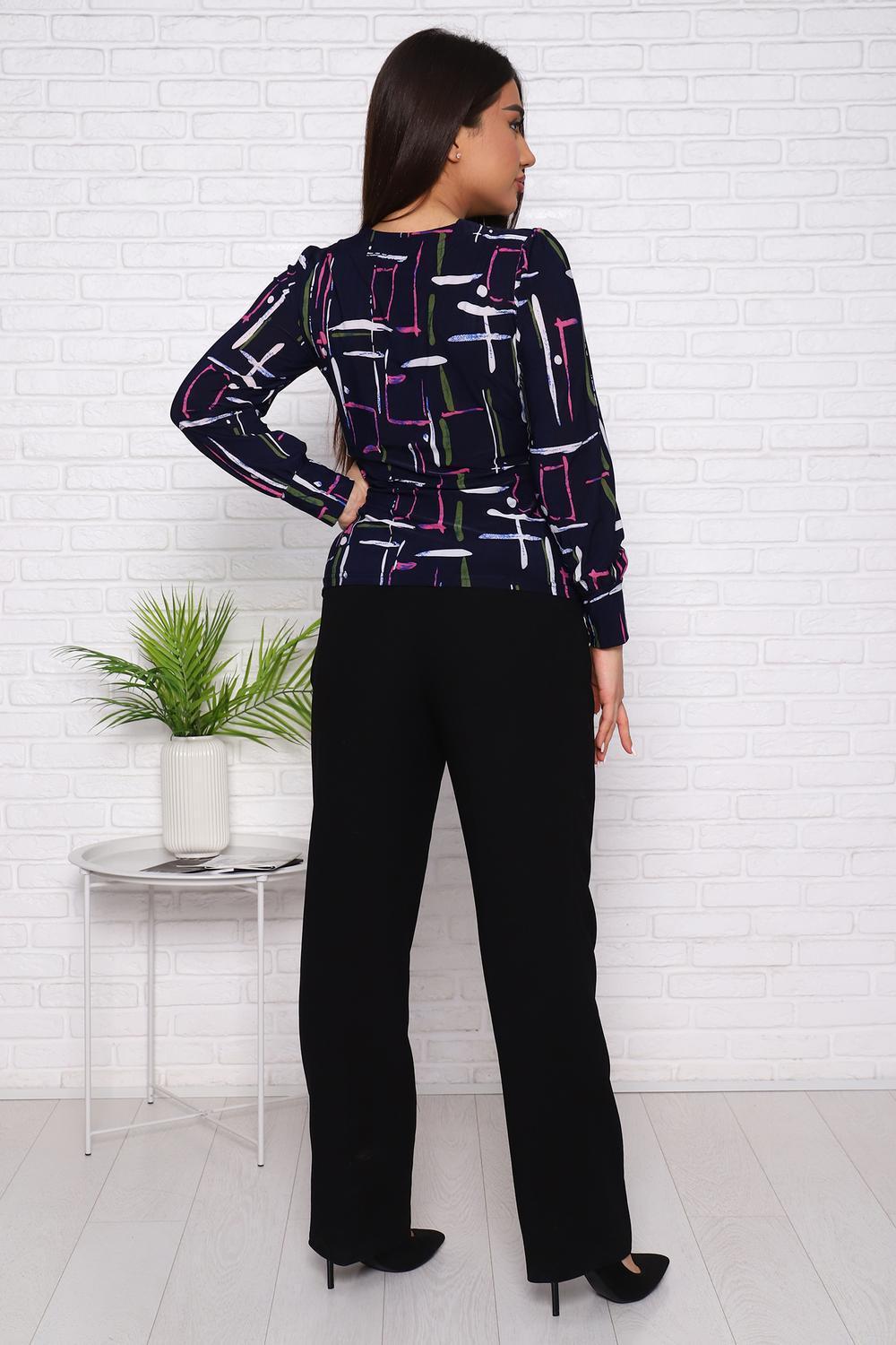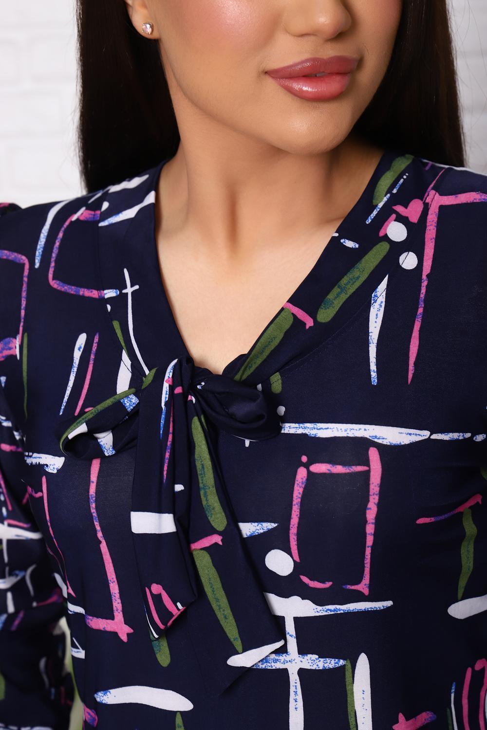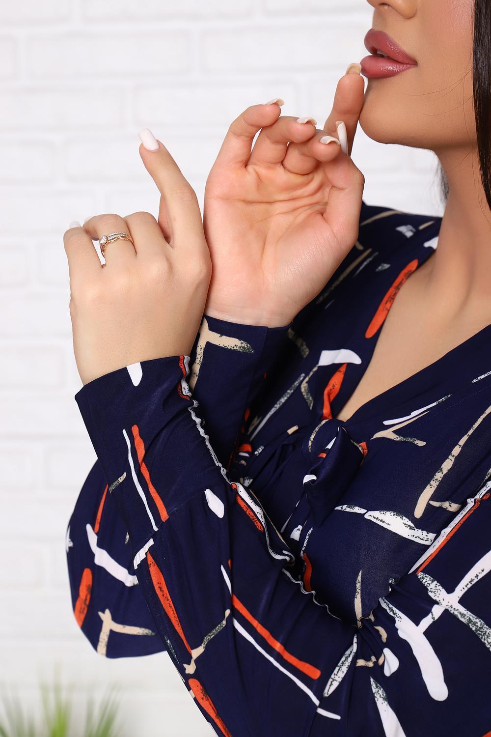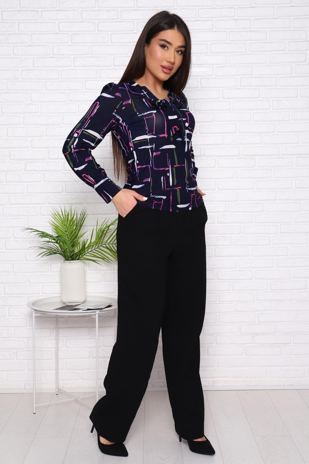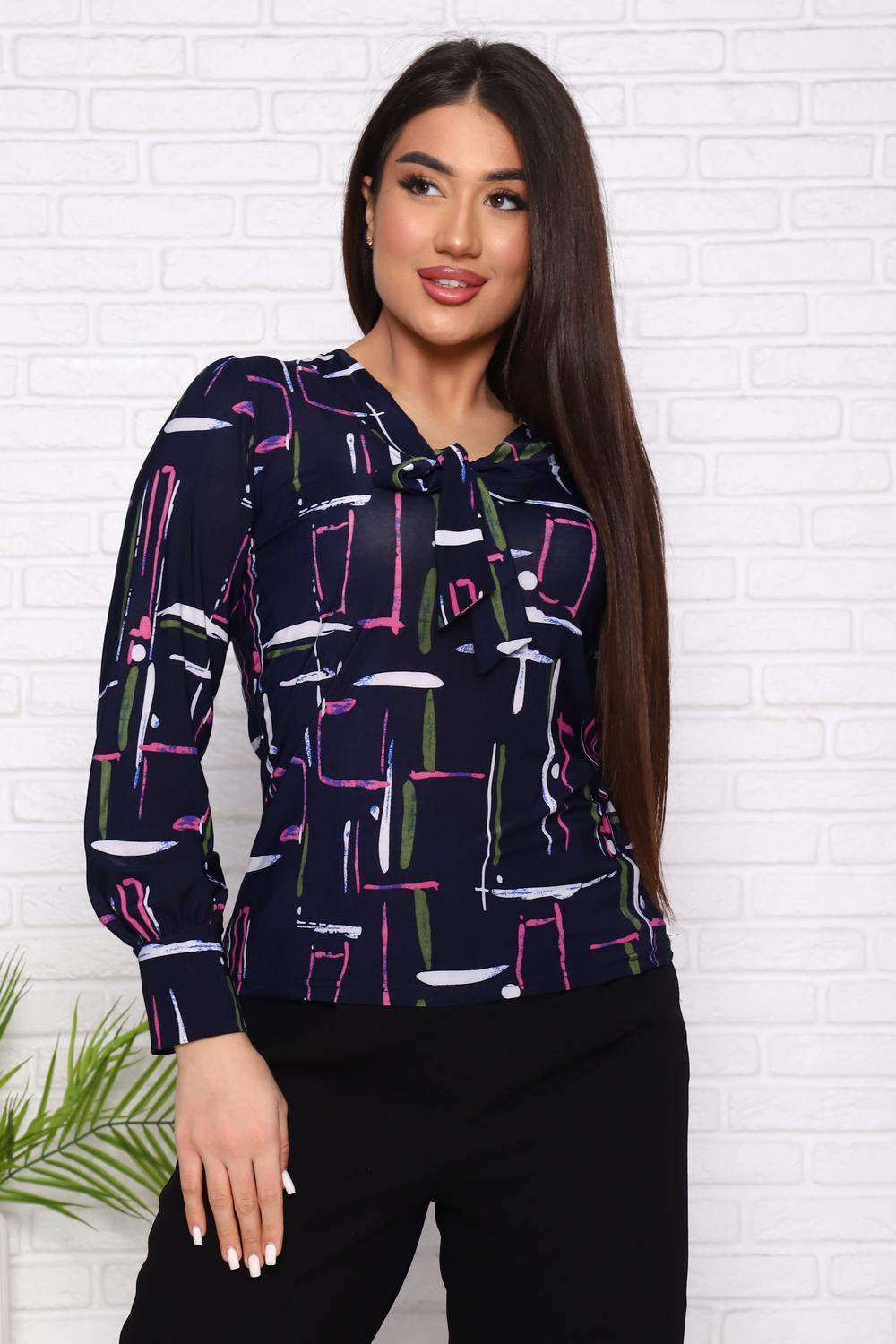 Женский джемпер с оригинальным вырезом, переходящим в завязки, приталенного силуэта. Рукав длинный с плотным манжетом.