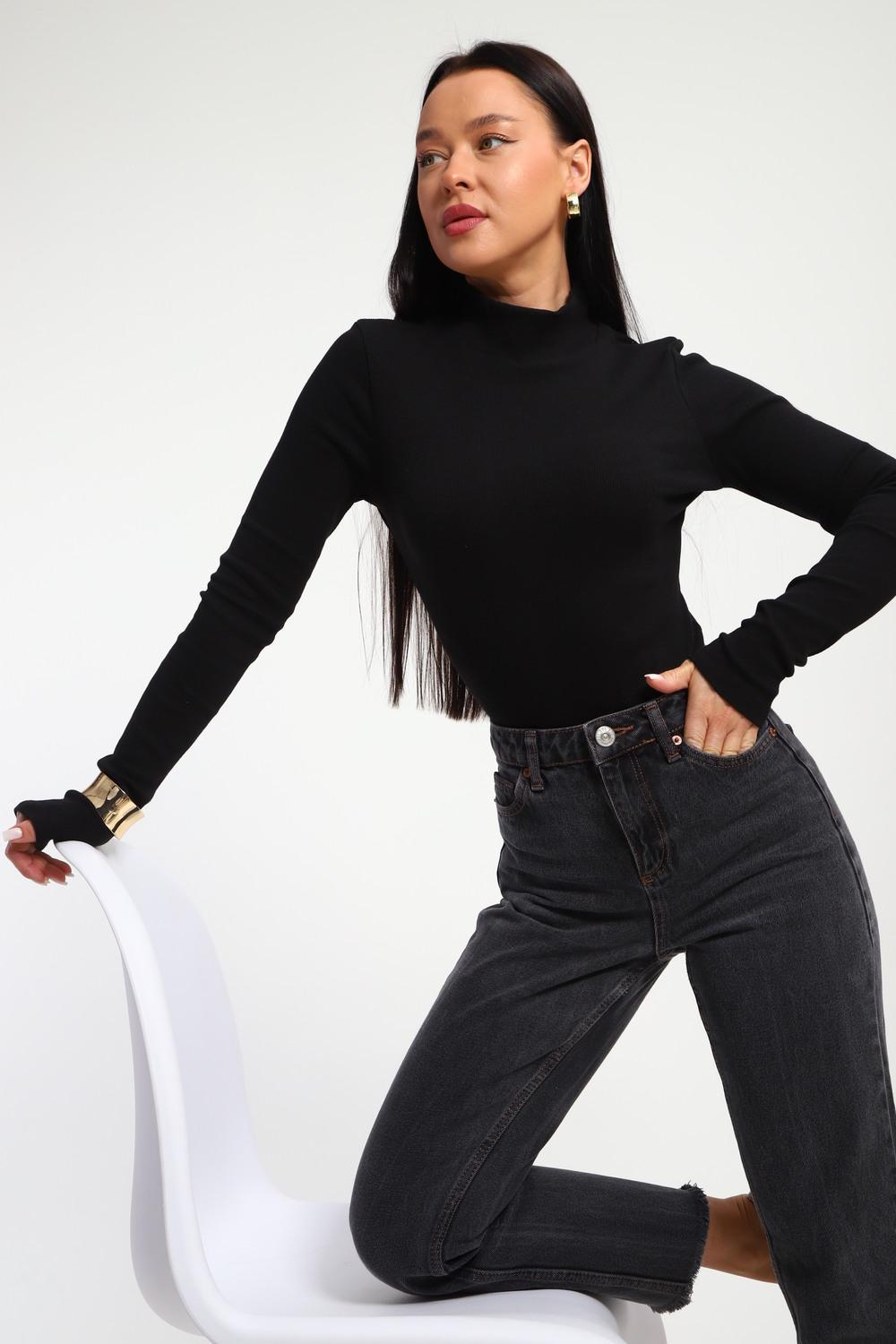 Её тонкая и облегающая форма идеально подчеркивает силуэт, стильно смотрится на разных типах фигуры, а длинные рукава и высокое горло создают уютное тепло в холодные дни. Черный цвет делает ее универсальным базовым элементом, который легко сочетать с различными стилями.