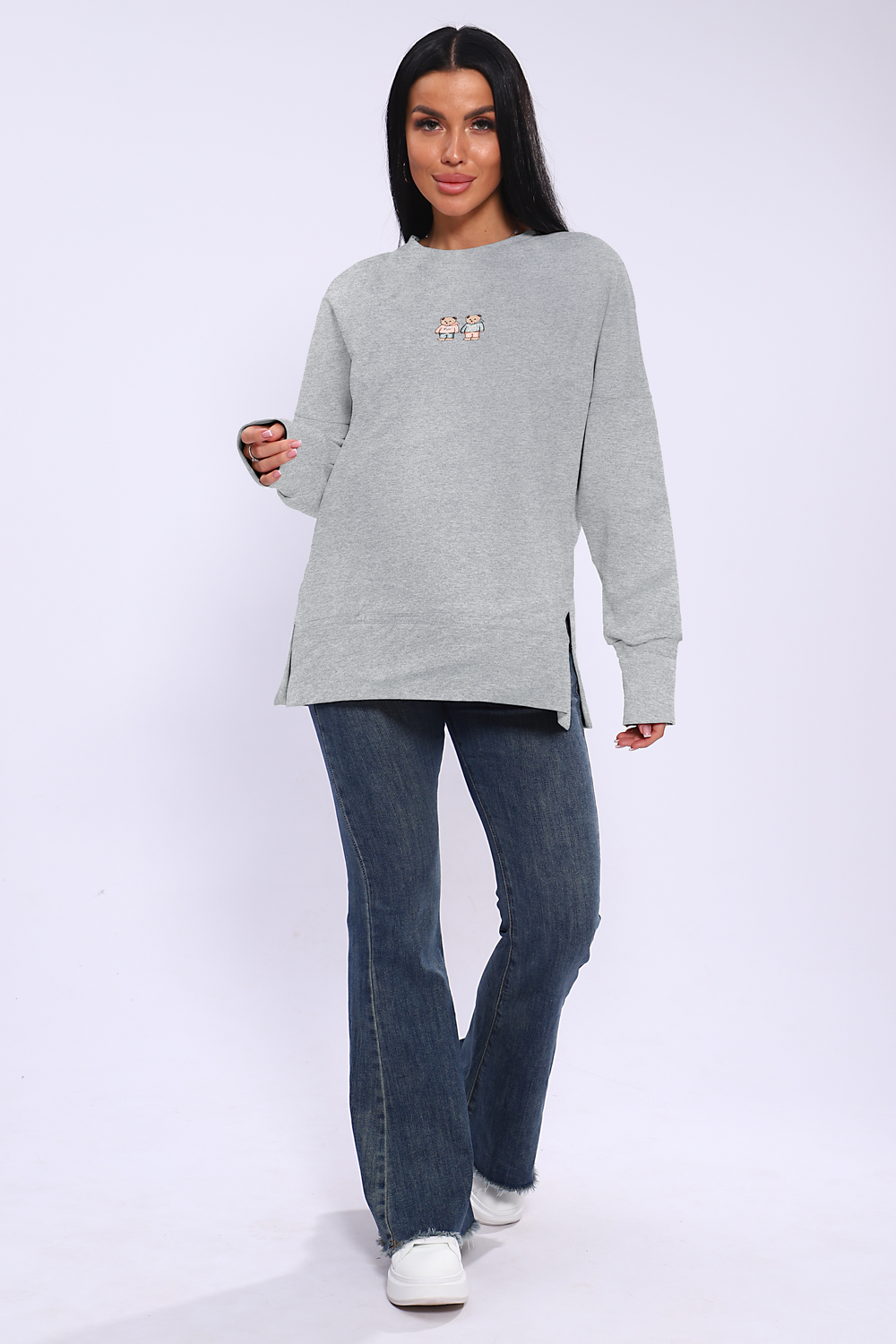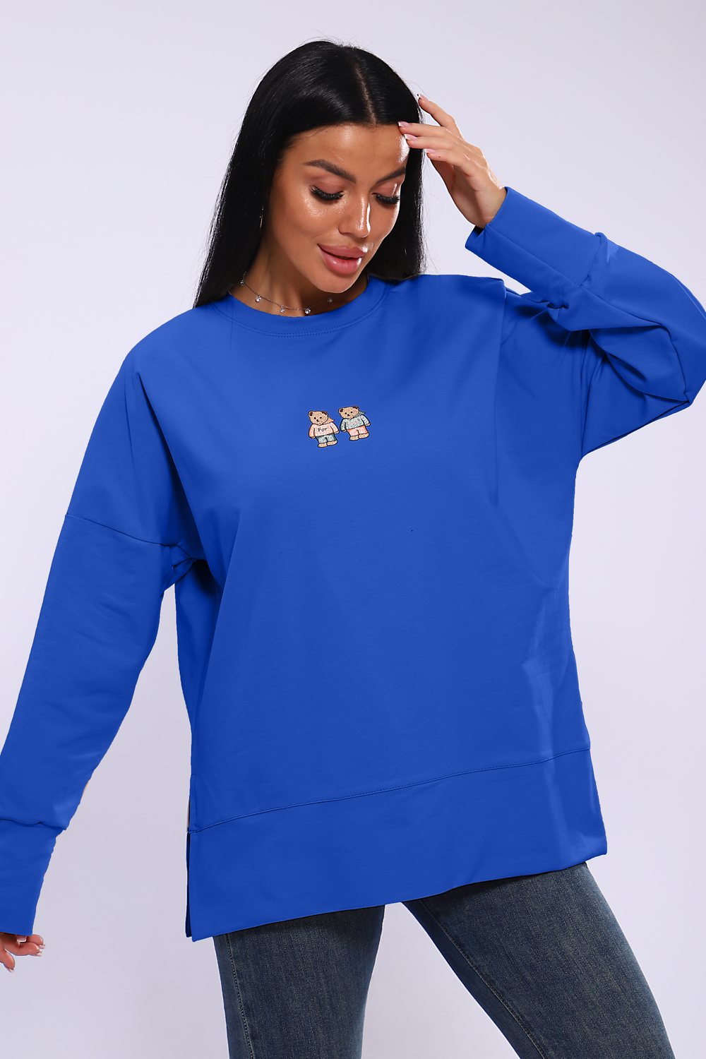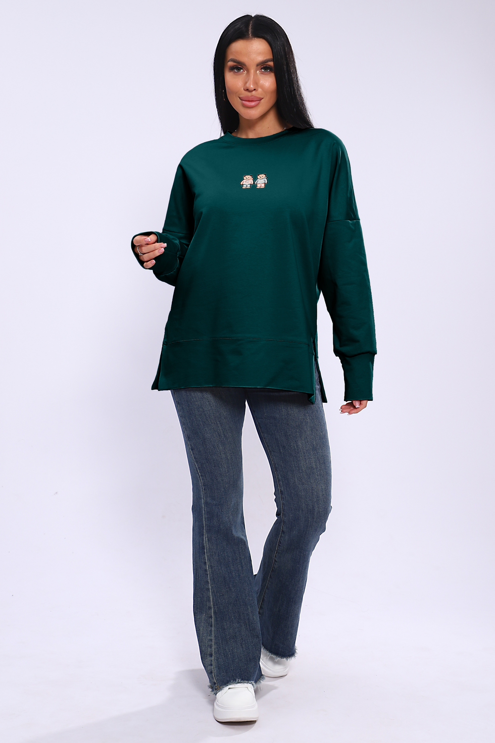 Женское худи свободного кроя со спущенным рукавом и разрезами по бокам. Модель выполнена из премиального футера 2-х нитка.