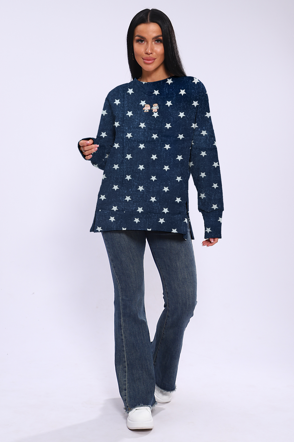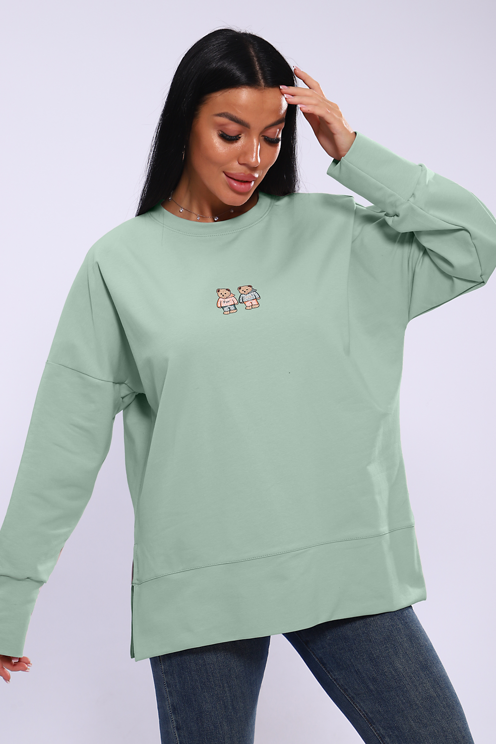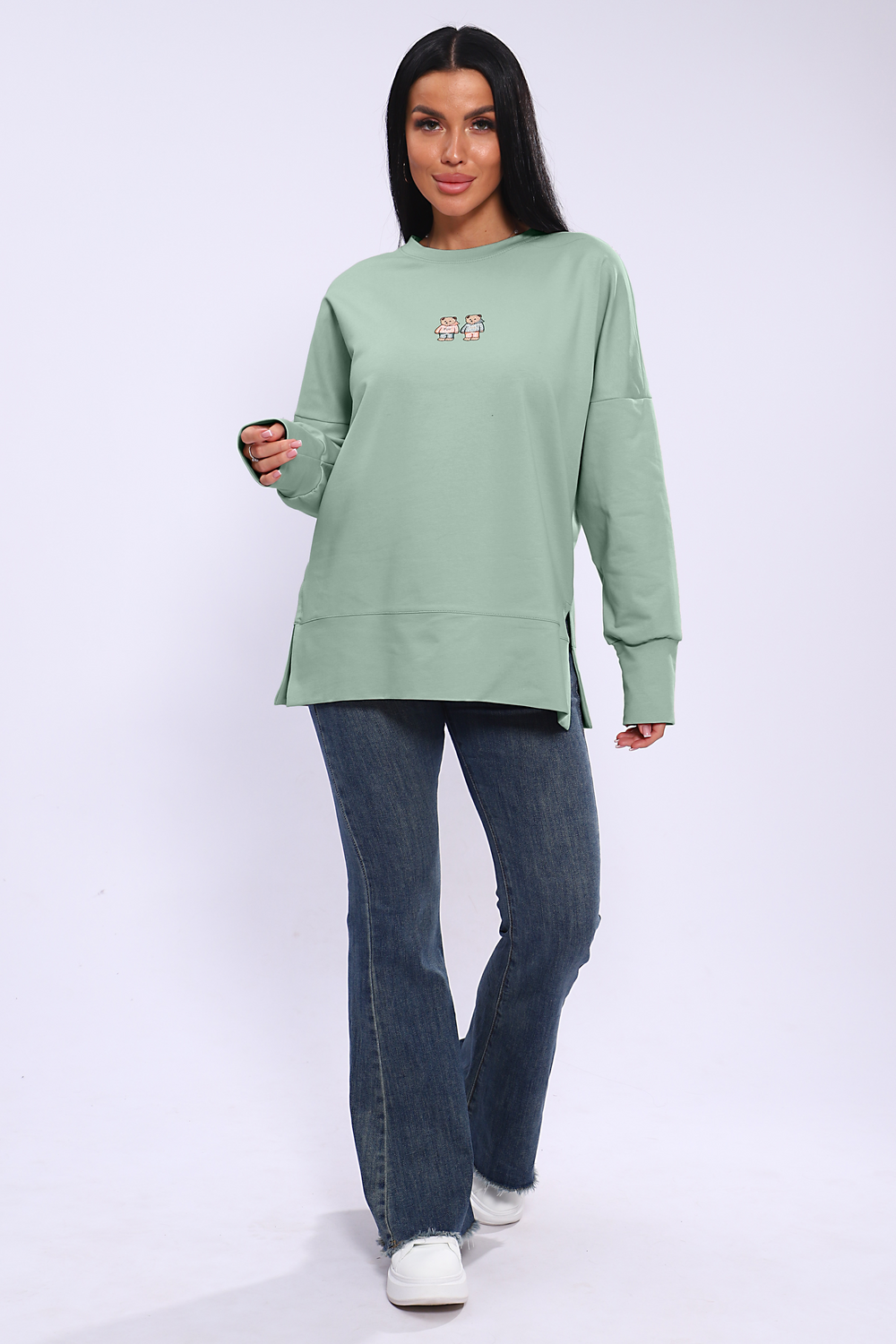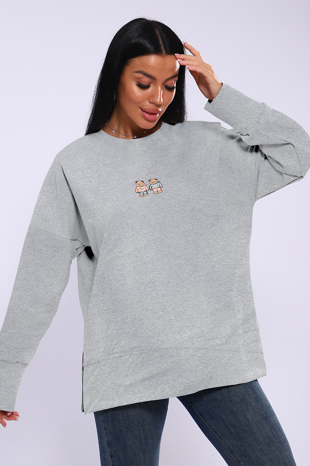 Женское худи свободного кроя со спущенным рукавом и разрезами по бокам. Модель выполнена из премиального футера 2-х нитка.