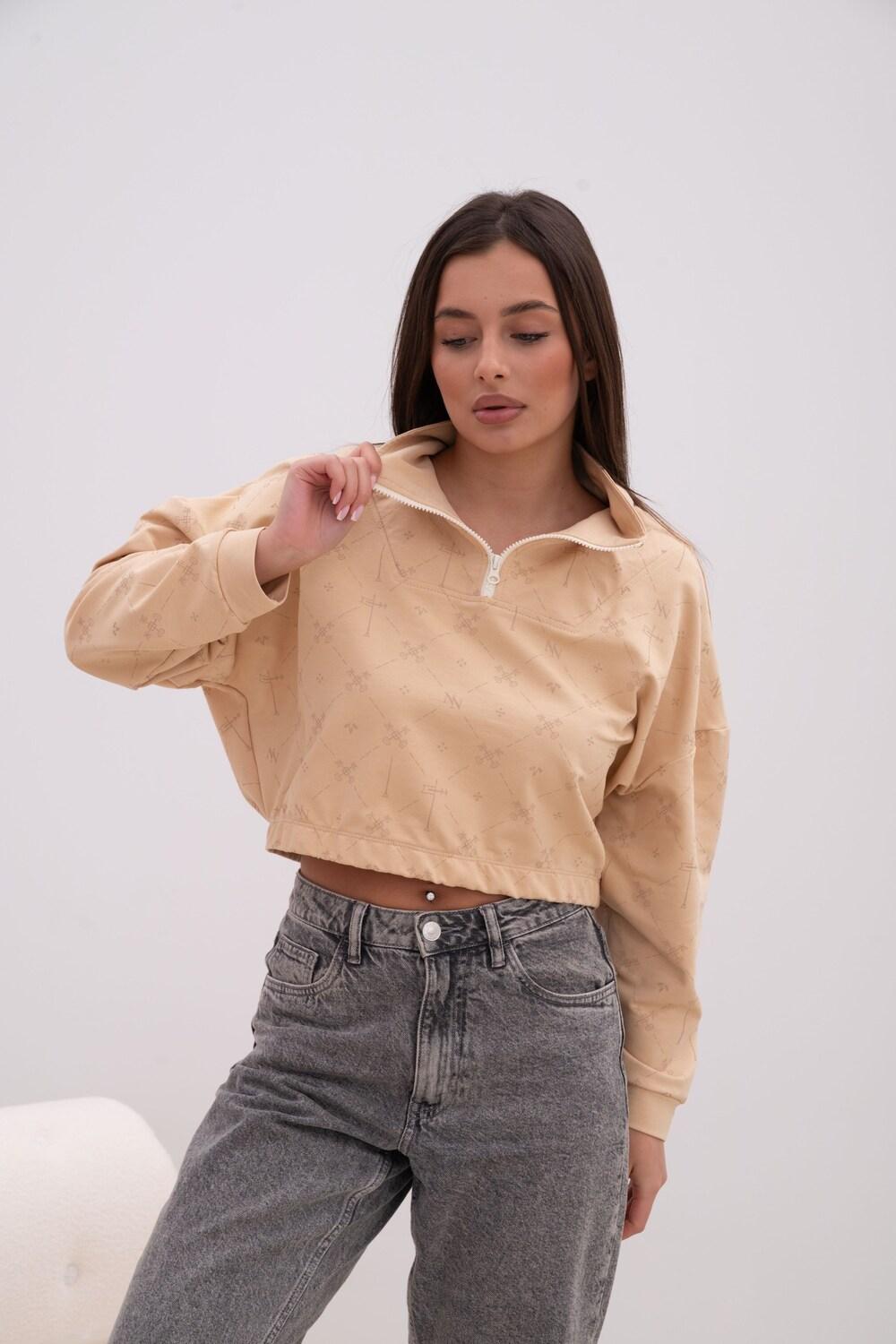 Укороченный свитшот оверсайз от бренда NINEL - незаменимая вещь для базового гардероба и тренд 2026 года. Модель предназначена для девушек и женщин любого возраста, а также будет актуальна для молодежи и девочек подростков.Эта модель сшита из качественного футера без начеса. Ее ткань приятна на ощупь, сохраняет тепло и позволяет коже дышать. Материал не теряет форму после множества стирок, а цвет остается насыщенным долгое время. Длинный рукав делает эту трикотажную толстовку практичным выбором для теплой и прохладной погоды. Это универсальное решение, которое позволяет выглядеть на все 100 каждый день.
