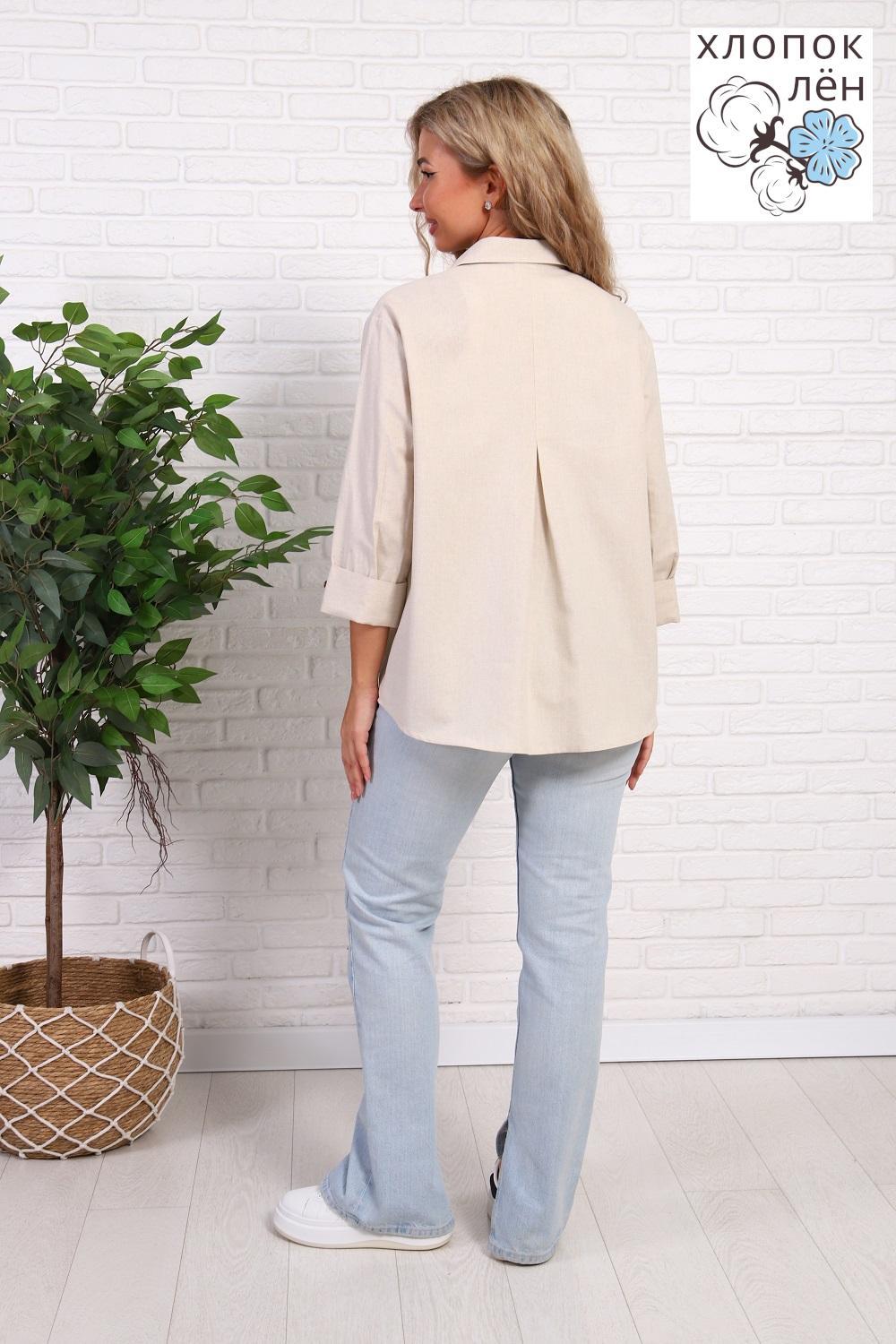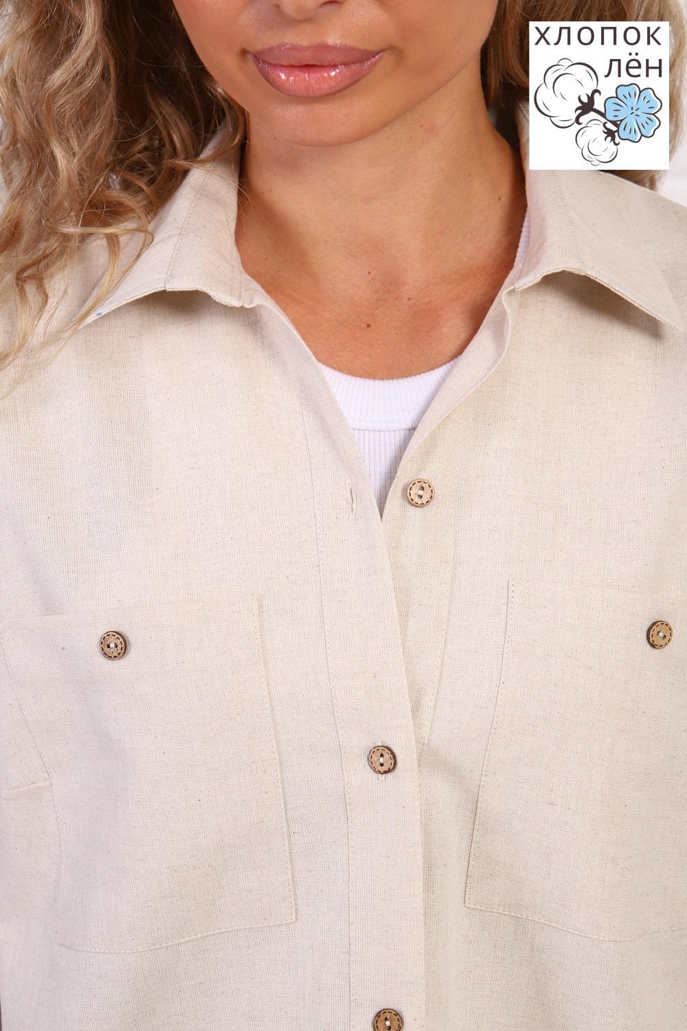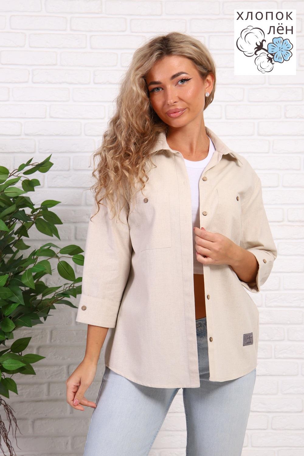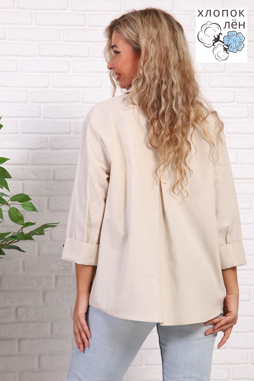 Рубашка женская офисная, свободного силуэта, 3/4 рукав. Из 100% натуральной ткани (хлопок 70% и лён 30%). Рубашка очень комфортная: рукава не сковывают движения; удобная длина, прикрывающая зону бедер; дышащая ткань. Трендовый силуэт и акцентные кокосовые пуговицы создают стиль этой рубашки. Сочетается и с денимом и с классической одеждой.