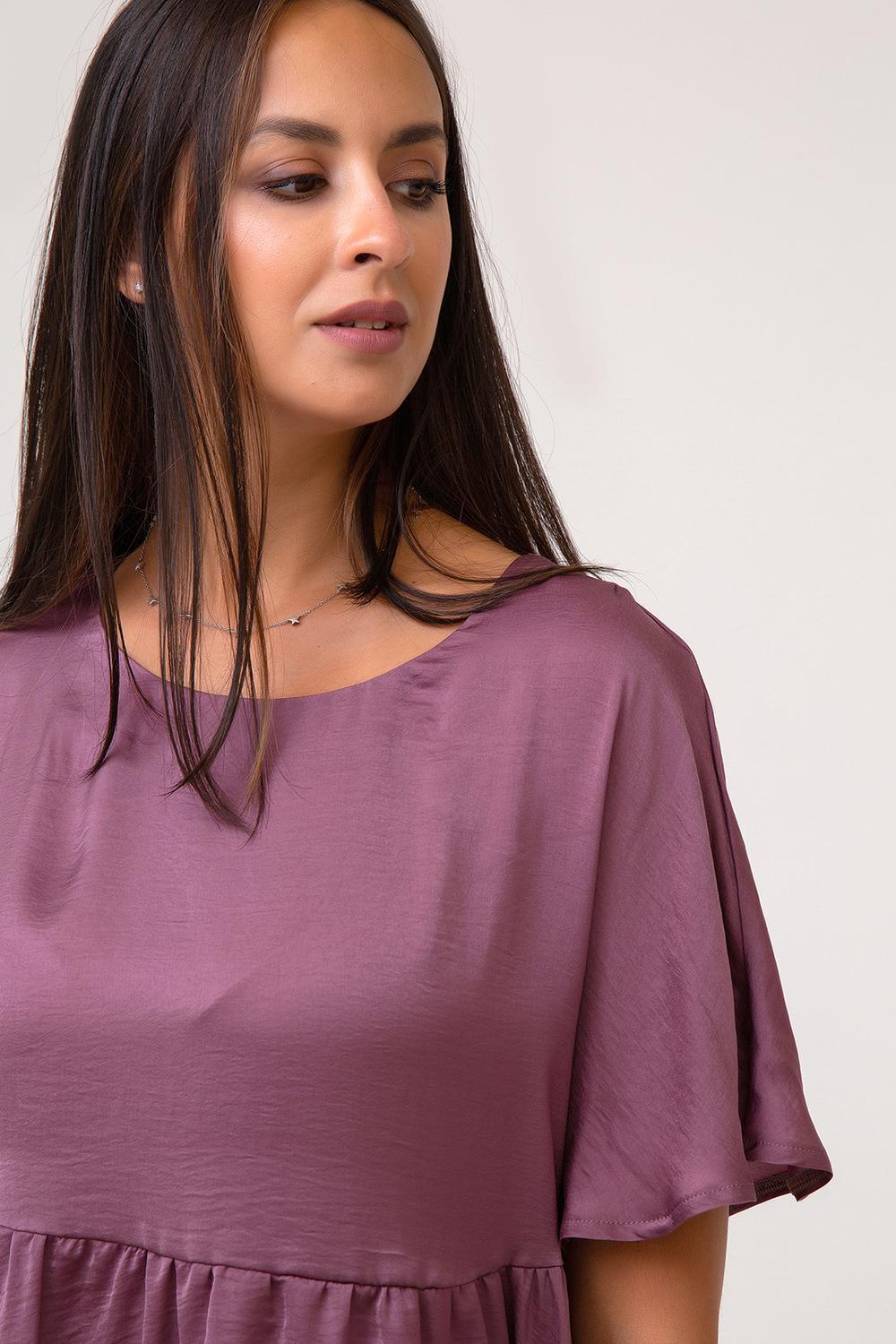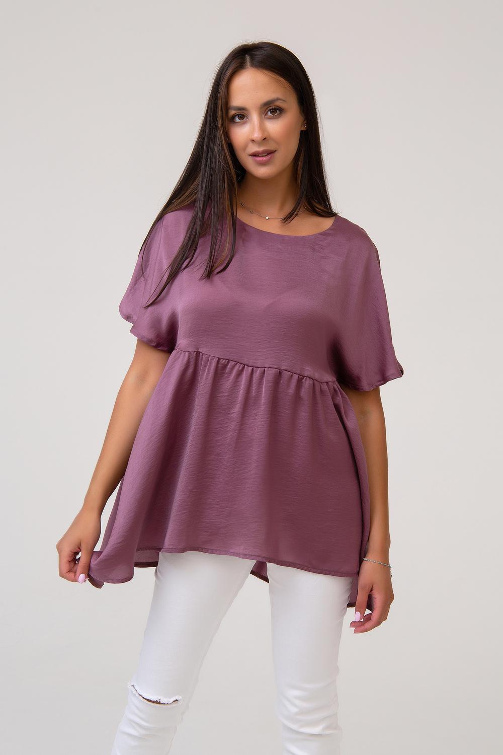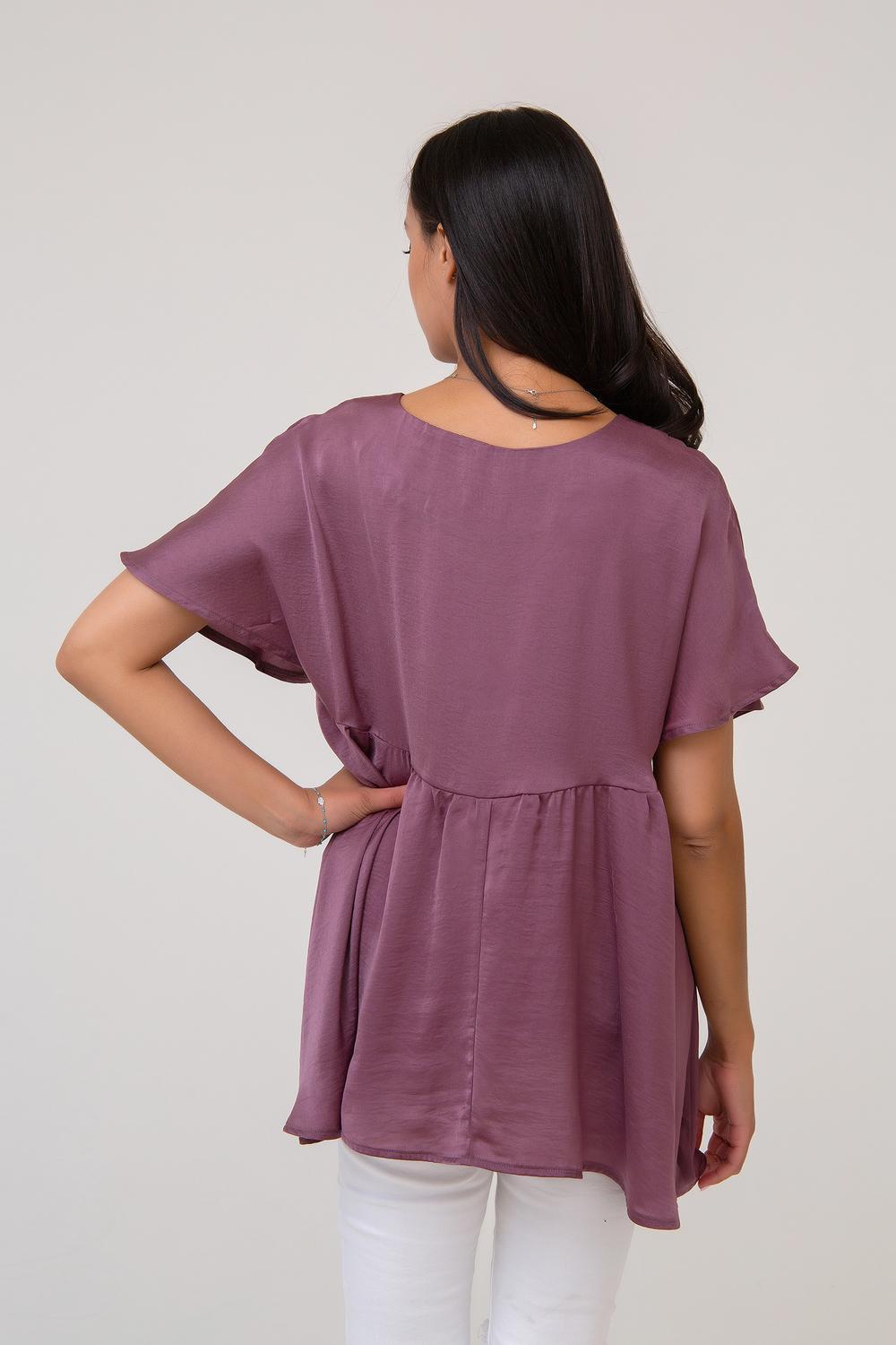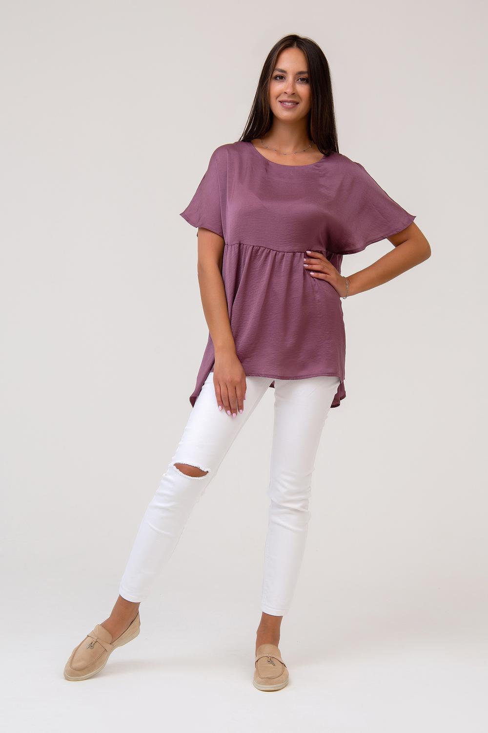 Лёгкая туника свободного кроя, выполненная в спокойном оттенке. Модель с отрезным, мягко струящимся подолом, что делает образ нежным и воздушным. Рукав короткий. Вырез горловины округлый. Изделие будет прекрасно сочетаться с узкими джинсами или, модными в этом сезоне, велосипедками. Ткань - шелк-атлас жатка. Состав - 100% полиэстер. Длина изделия 66 см. Рост модели на фото 173 см