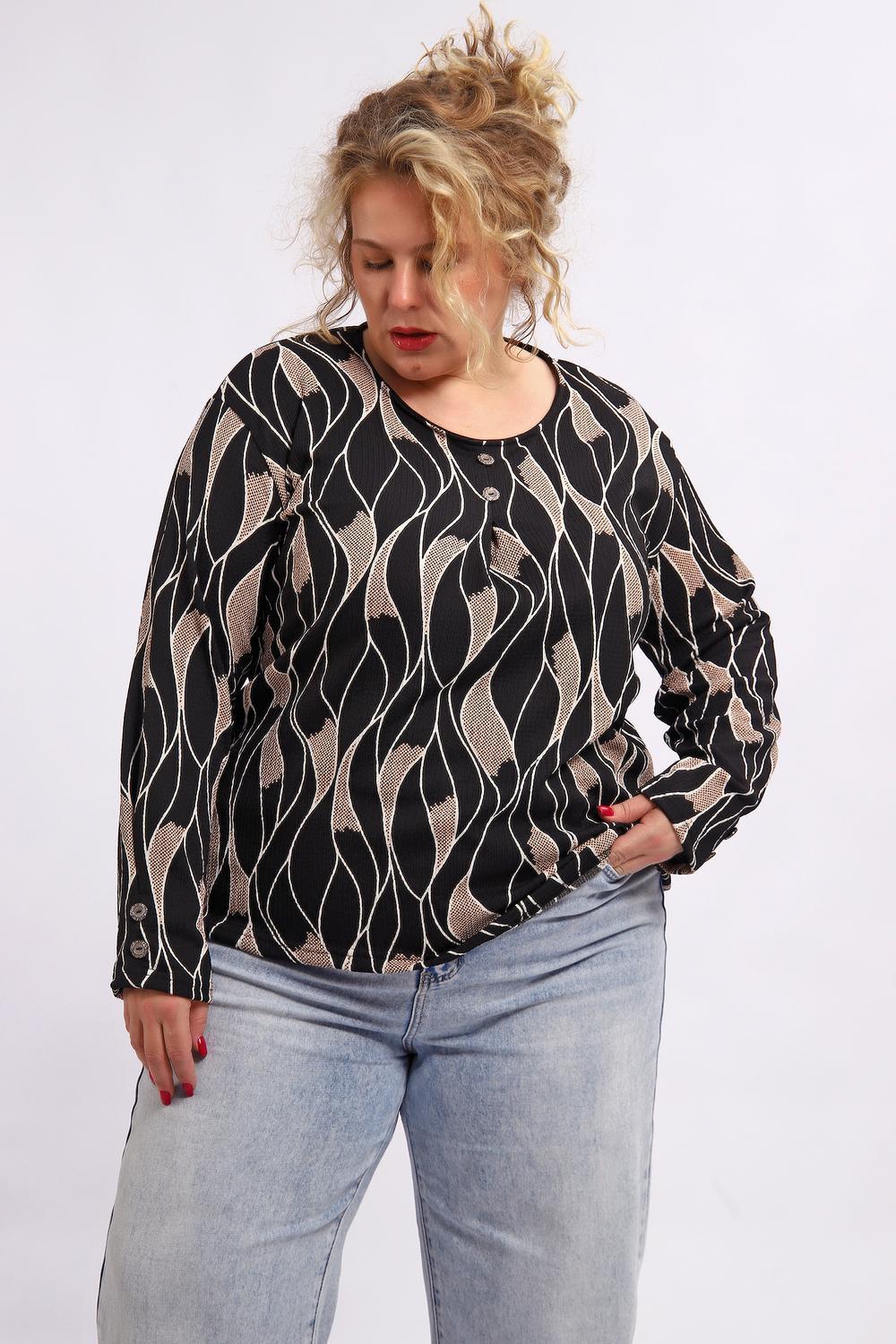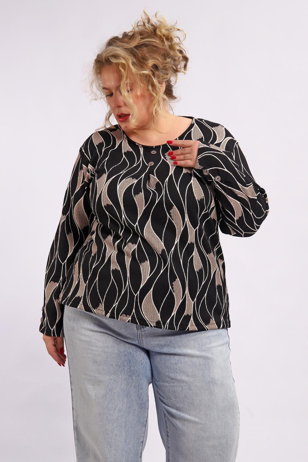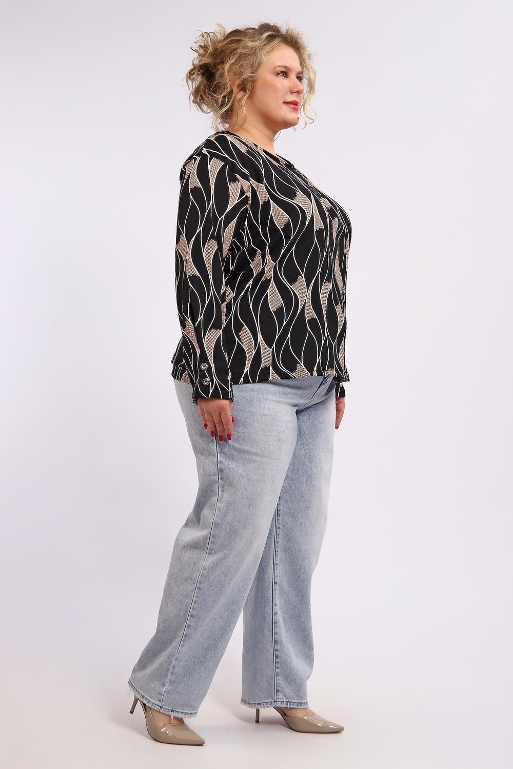 Элегантная блузка из 100 % полиэстера — практичная и стильная базовая вещь для повседневного и делового гардероба. Ткань отличается износостойкостью, хорошо держит форму, не мнётся и легко стирается. Контрастное черно‑белое сочетание цвета, создающее выразительный визуальный эффект. Стандартная длина до линии бёдер подходит для сочетания с юбками и брюками.