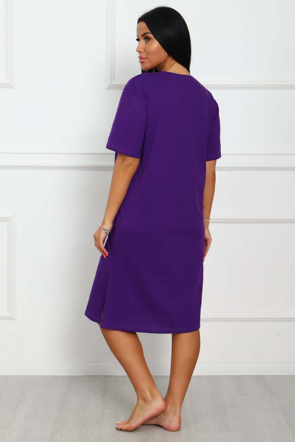 Туника женская прямого силуэта с разрезами в боковых швах. Низ изделия прямой. Длинна ниже колена, плечо спущенное, рукав короткий. Горловина круглой формы, обработана планкой с отделочной строчкой по шву притачивания. Принт (шелкография) располагается по центру переда.