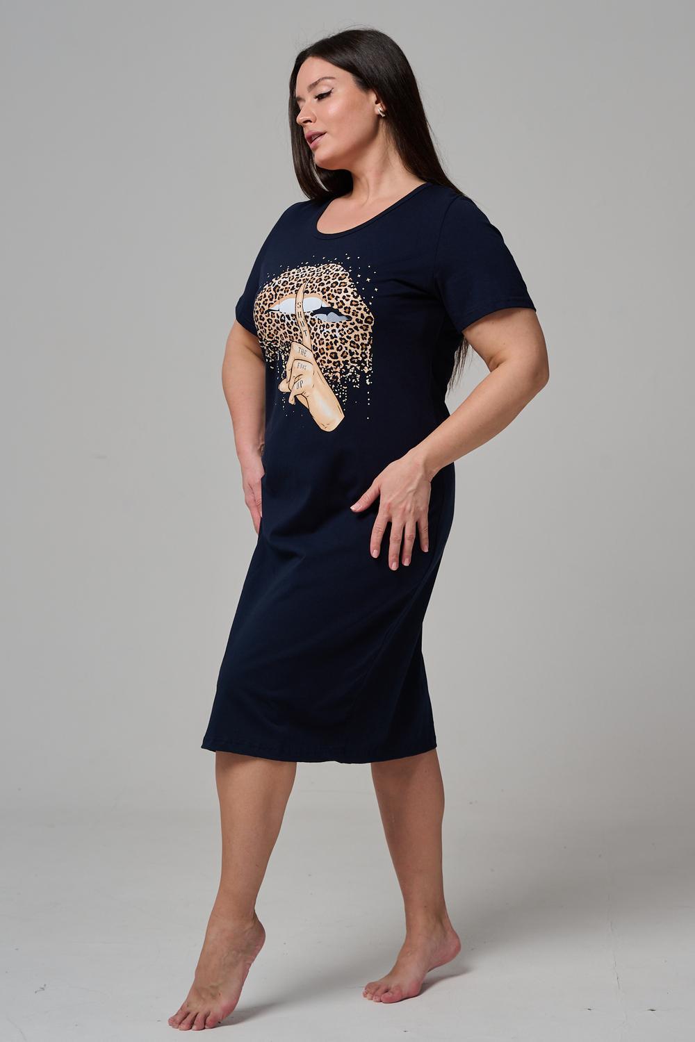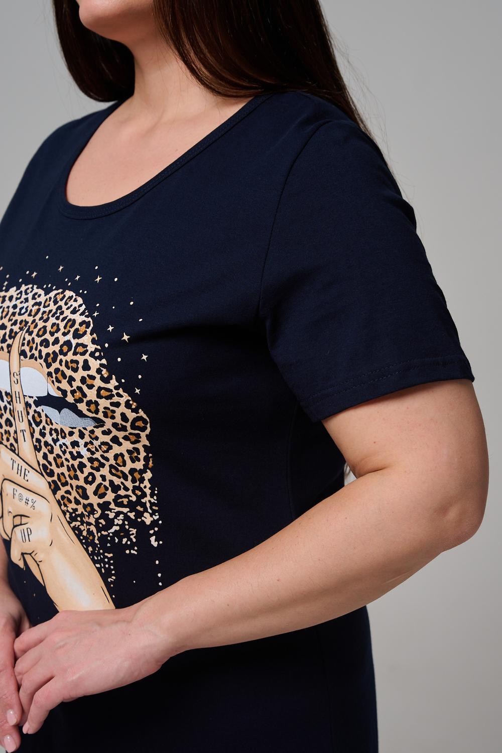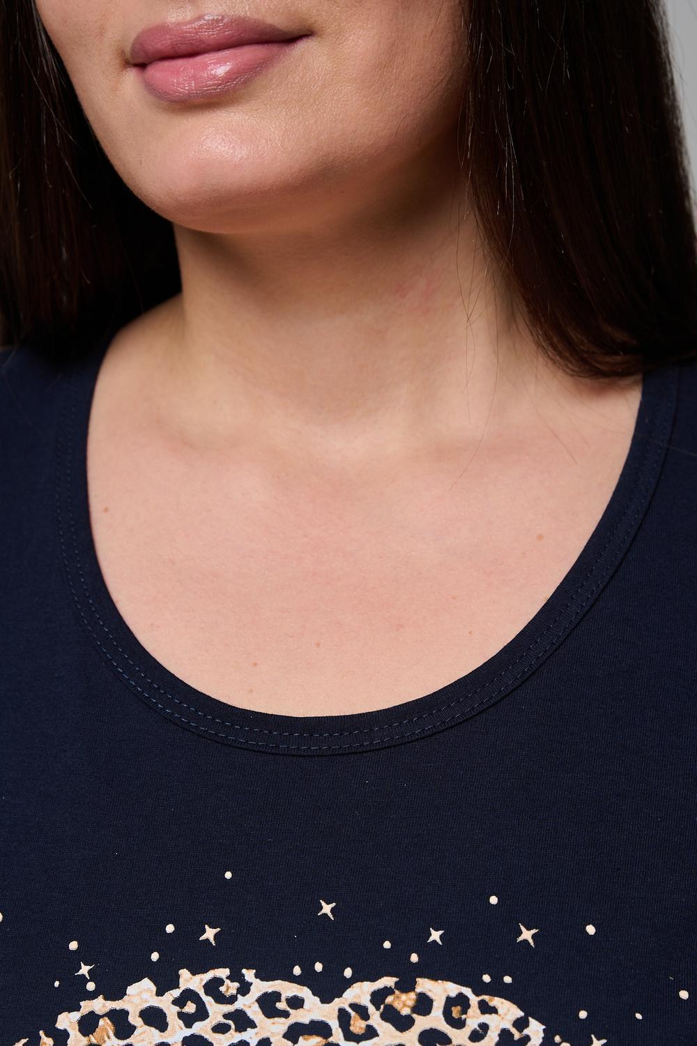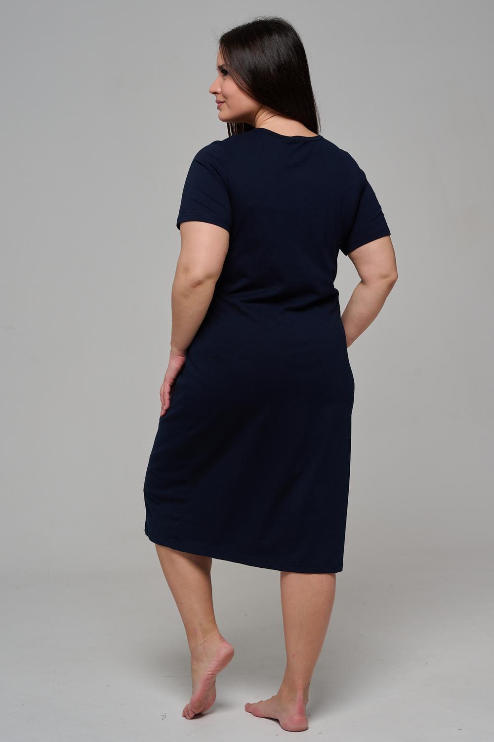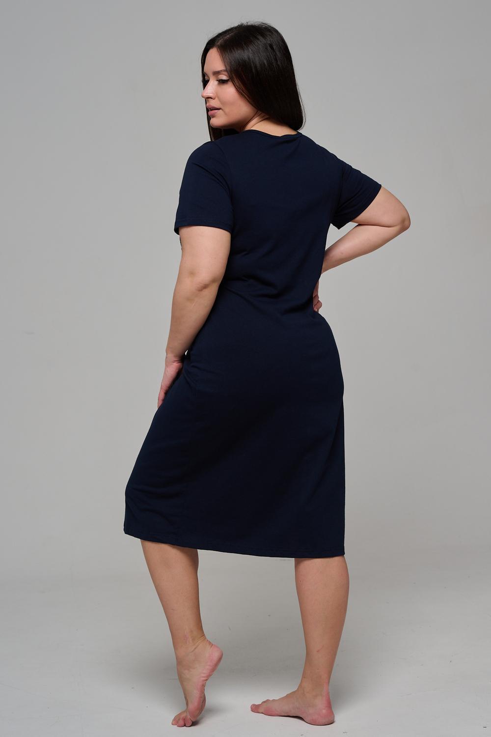 Туника полуприлегающего силуэта, с округлой горловиной, длиной ниже колена. Рукав втачной, короткий. Горловина обработана бейкой из основного полотна.