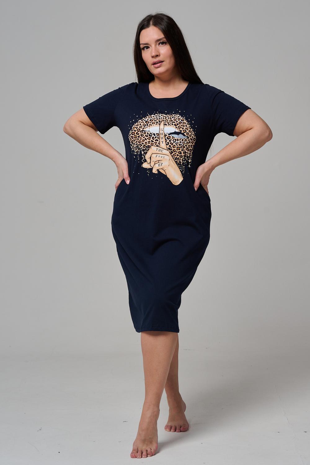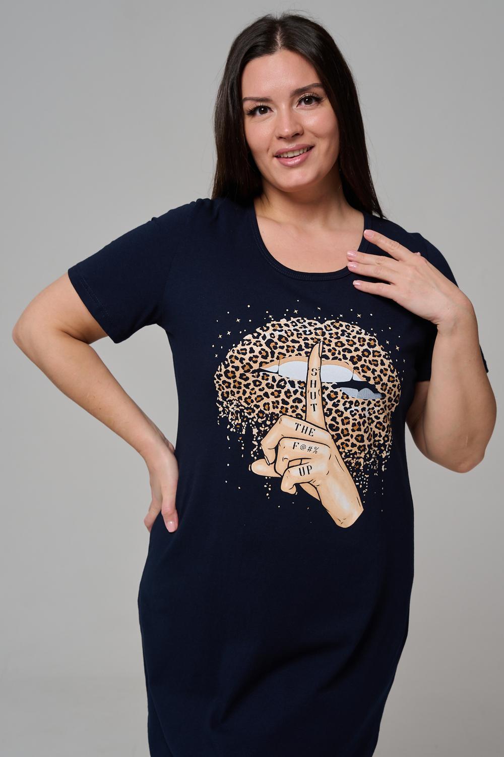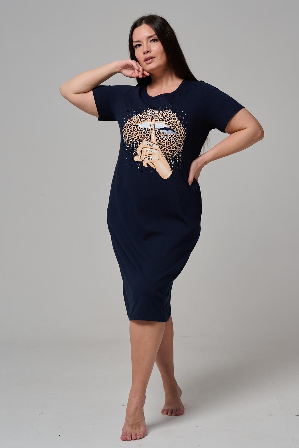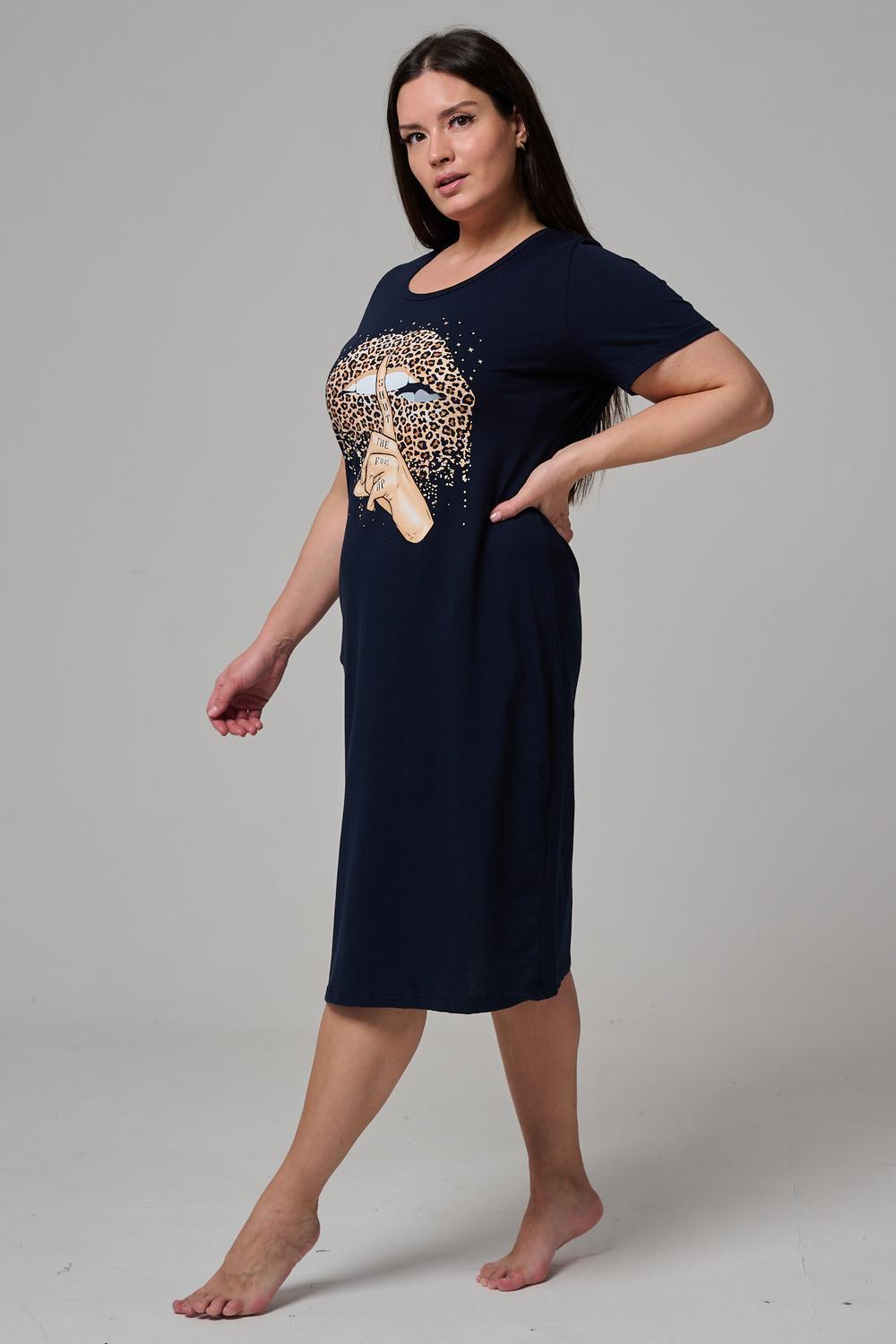Туника полуприлегающего силуэта, с округлой горловиной, длиной ниже колена. Рукав втачной, короткий. Горловина обработана бейкой из основного полотна.