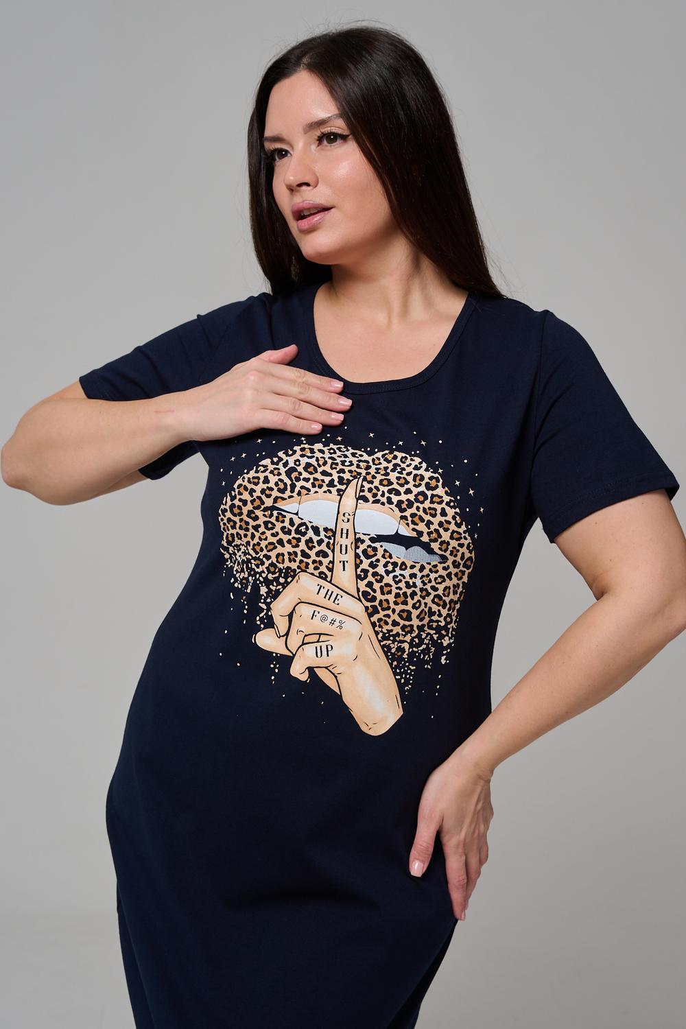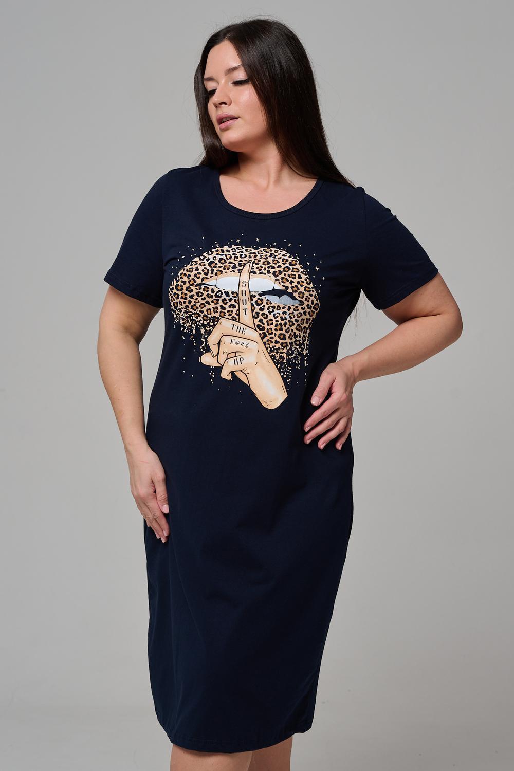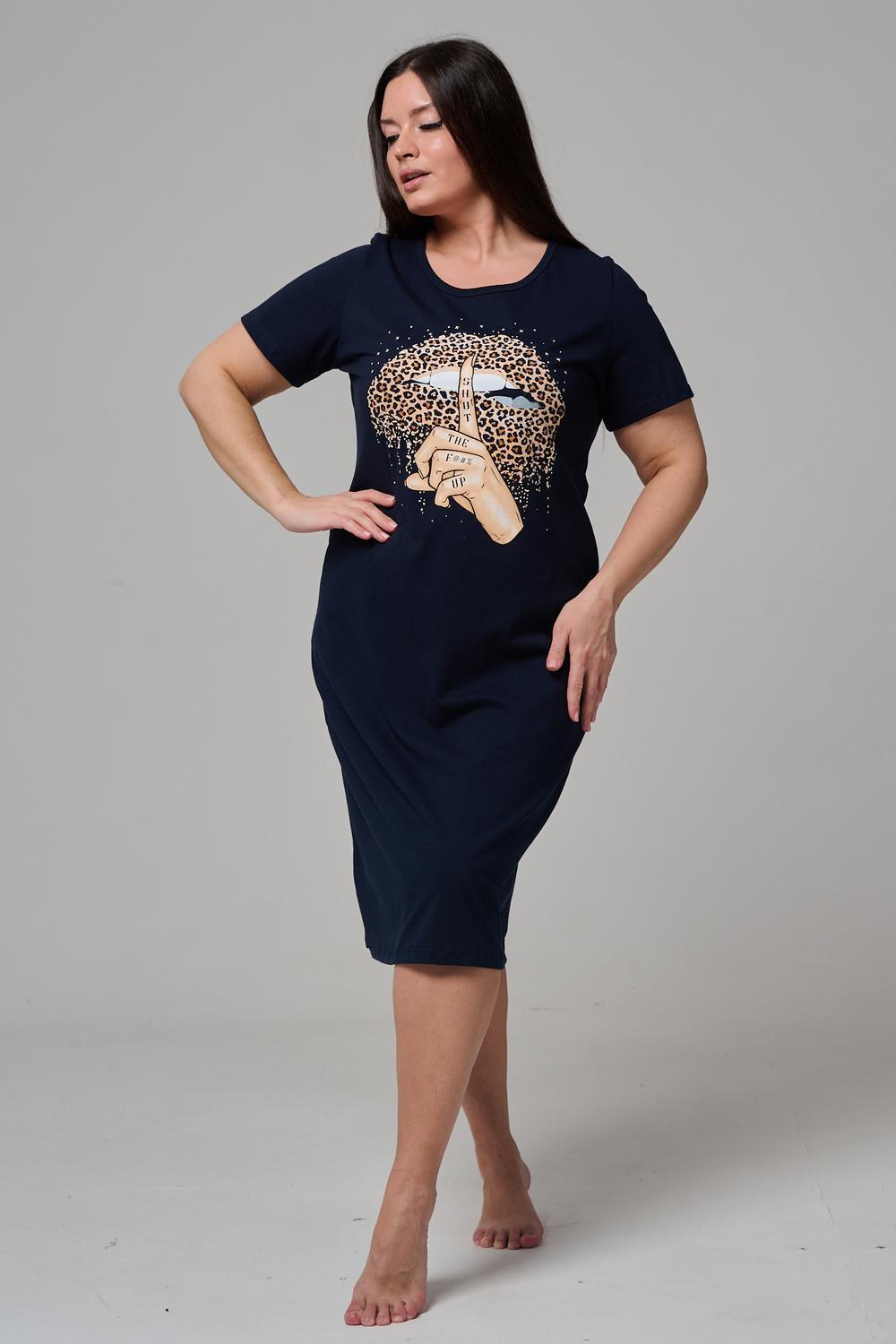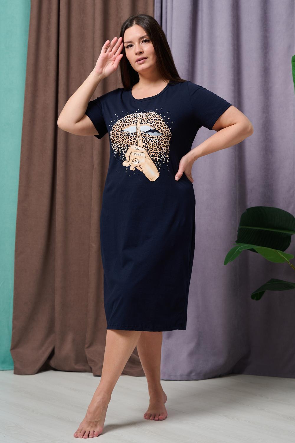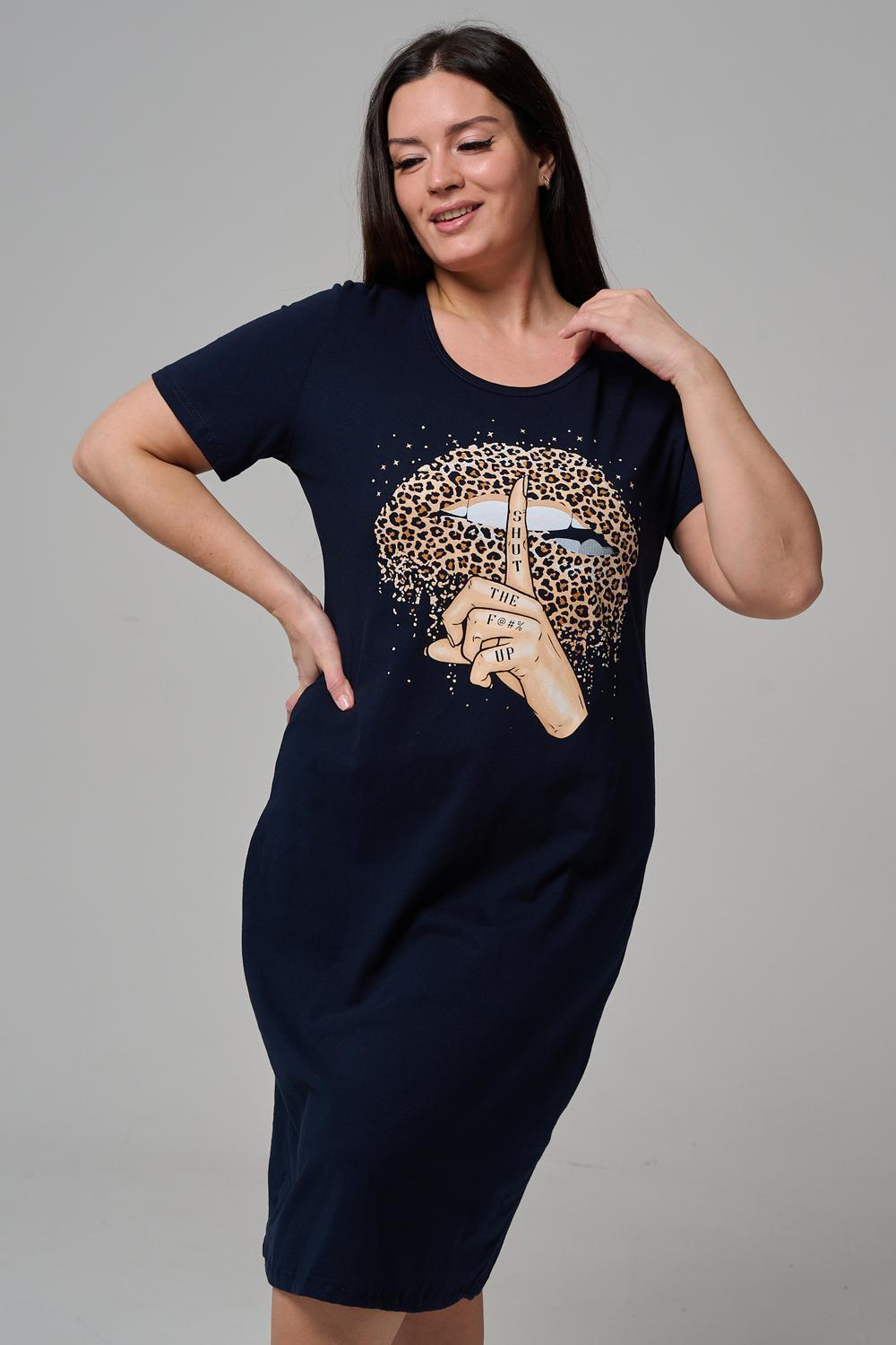 Туника полуприлегающего силуэта, с округлой горловиной, длиной ниже колена. Рукав втачной, короткий. Горловина обработана бейкой из основного полотна.