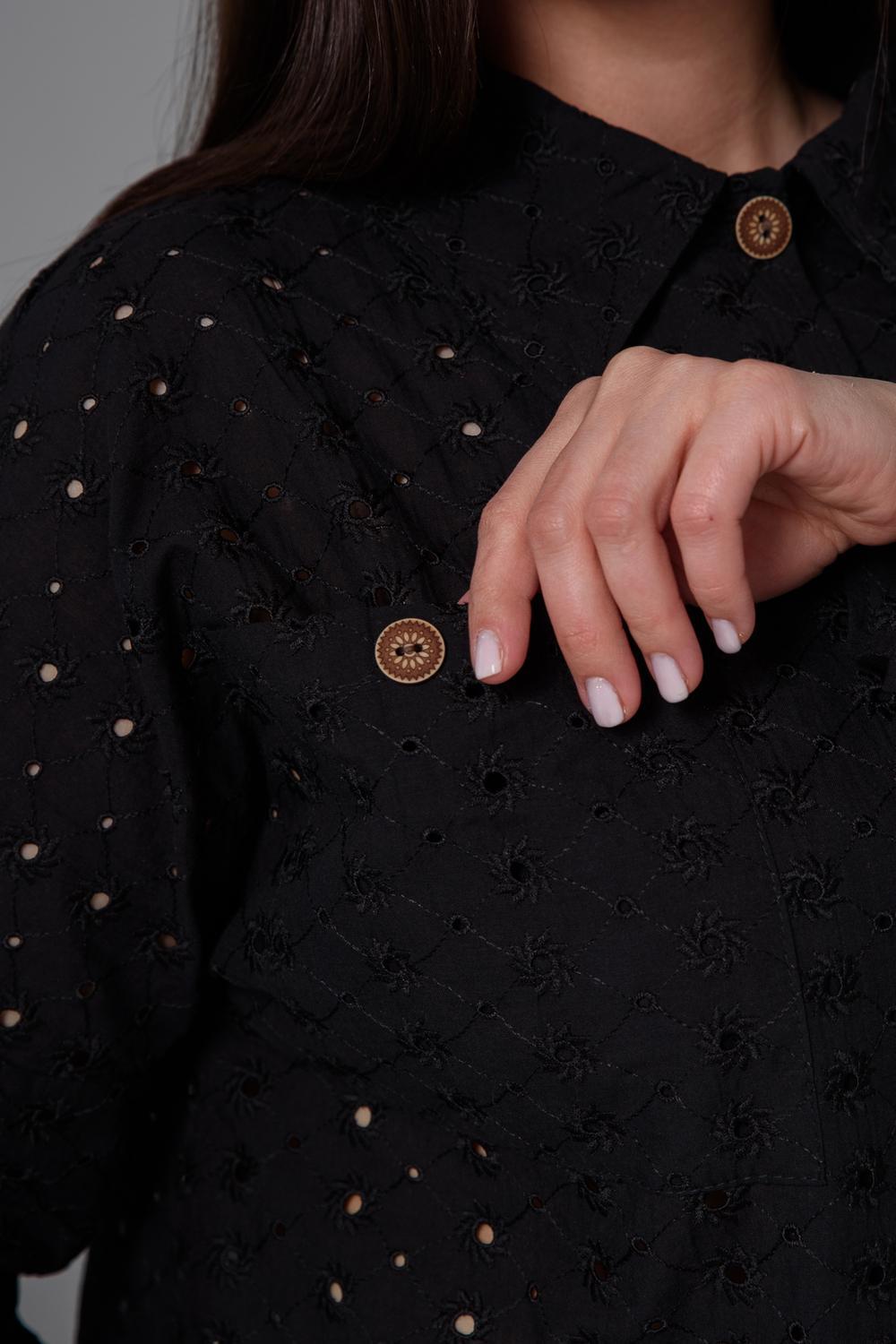 Рубашка женская, прямого силуэта, с притачным декоративным поясом внизу, воротник втачной. Рукав с заниженной линией плеча, с манжетой. Застежка на петли - пуговицы. На полочке два накладных кармана. Вдоль рукава складка с пуговицами. В летний период рубашка из красивой, натуральной х/б ткани незаменимая составляющая гардероба каждой модницы.