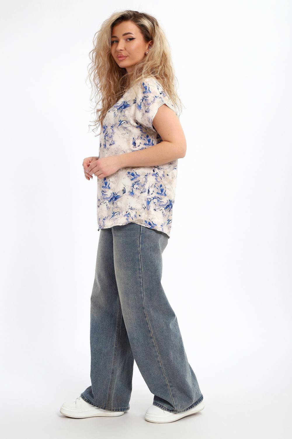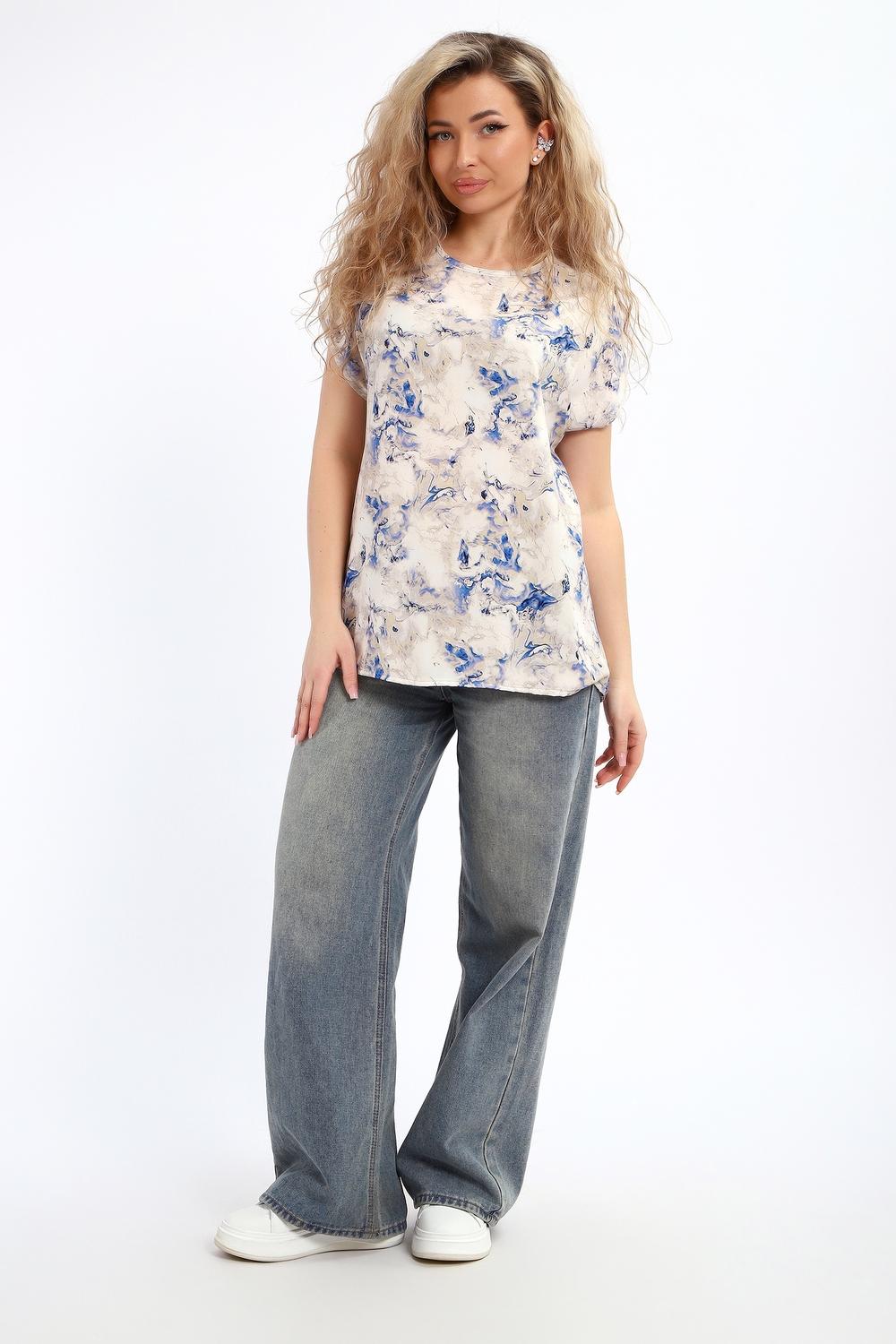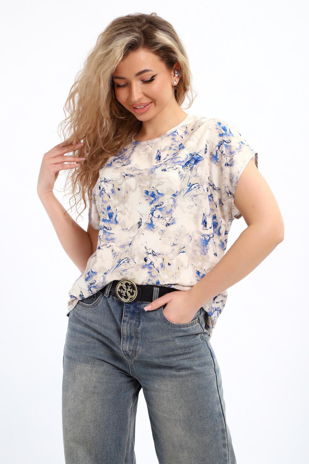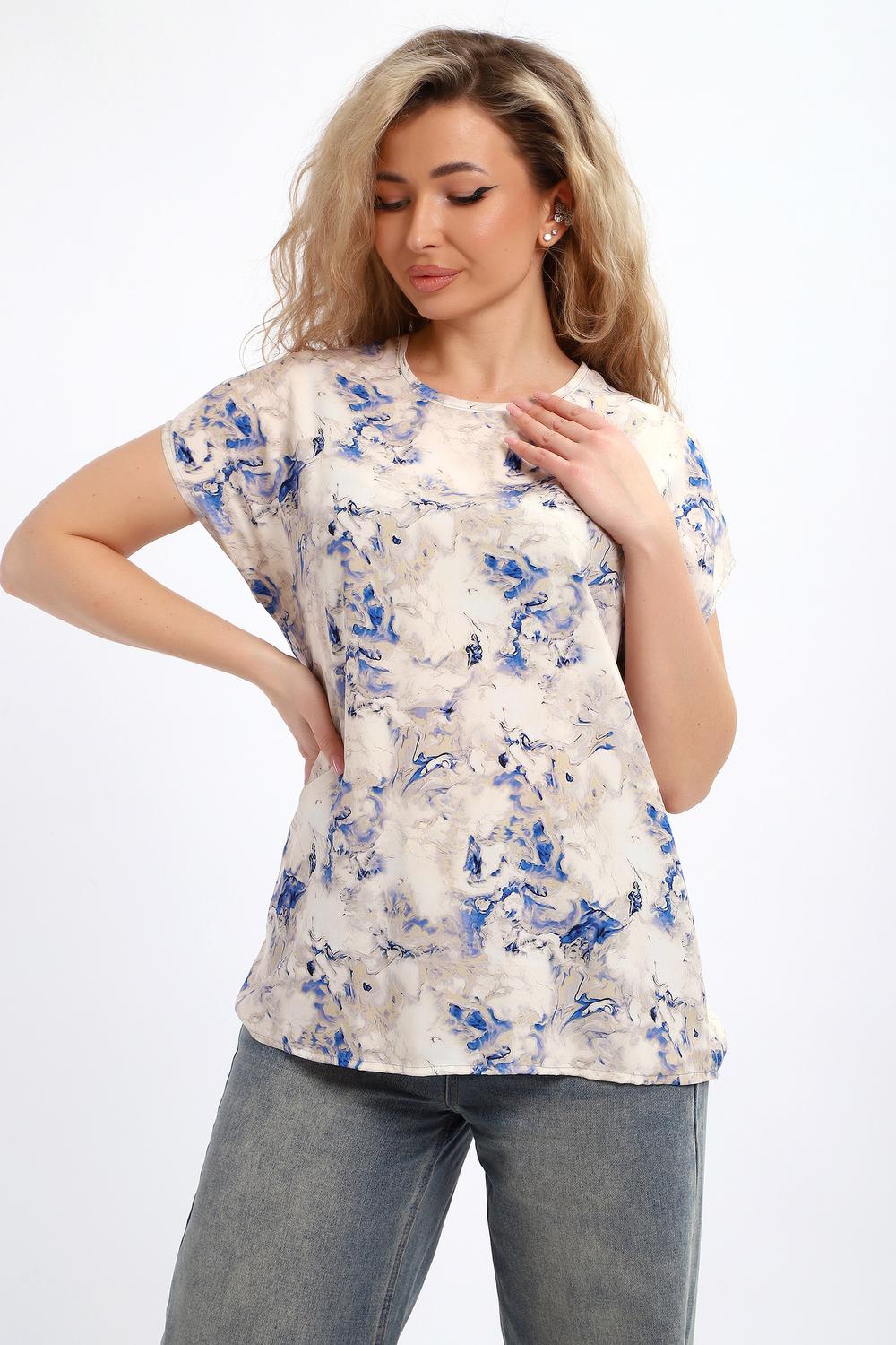 Блузка женская свободного кроя со спущенным плечом, горловина обработана узким кантом, выполнена из 100% ПЭ. Блузка отлично сочетается как с юбкой и брюками, так и с джинсами, подойдет для романтичного и повседневного образа.
