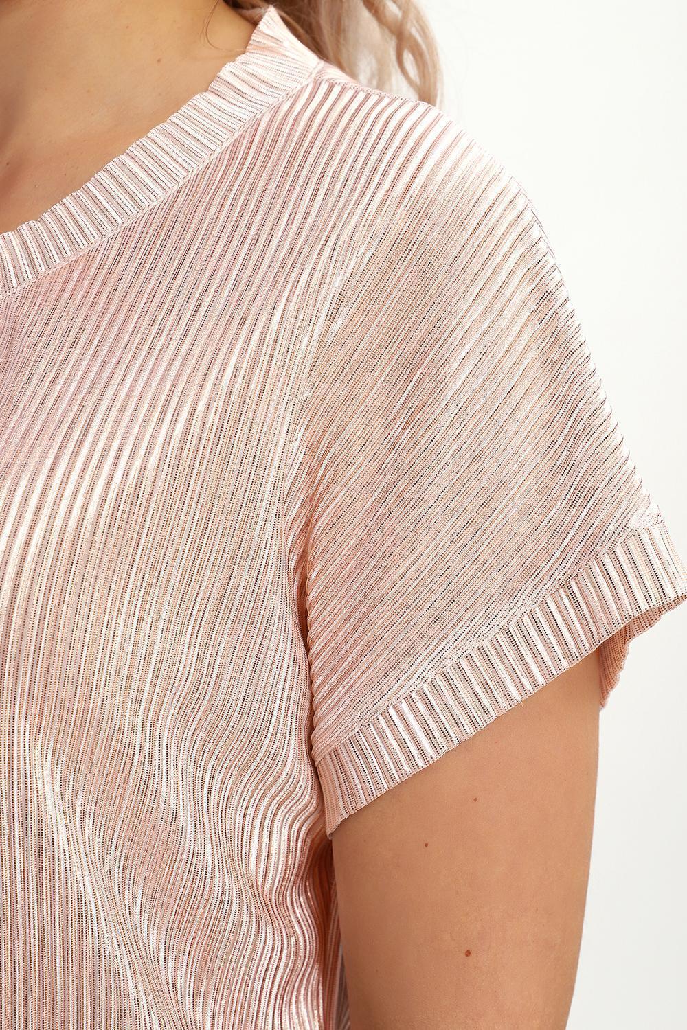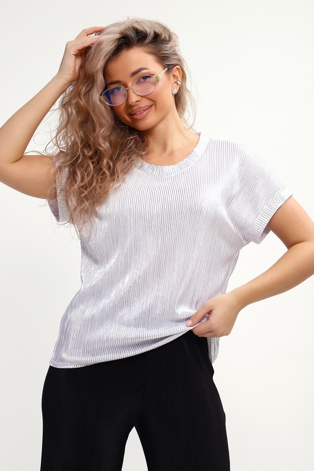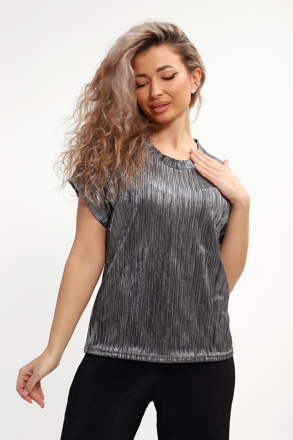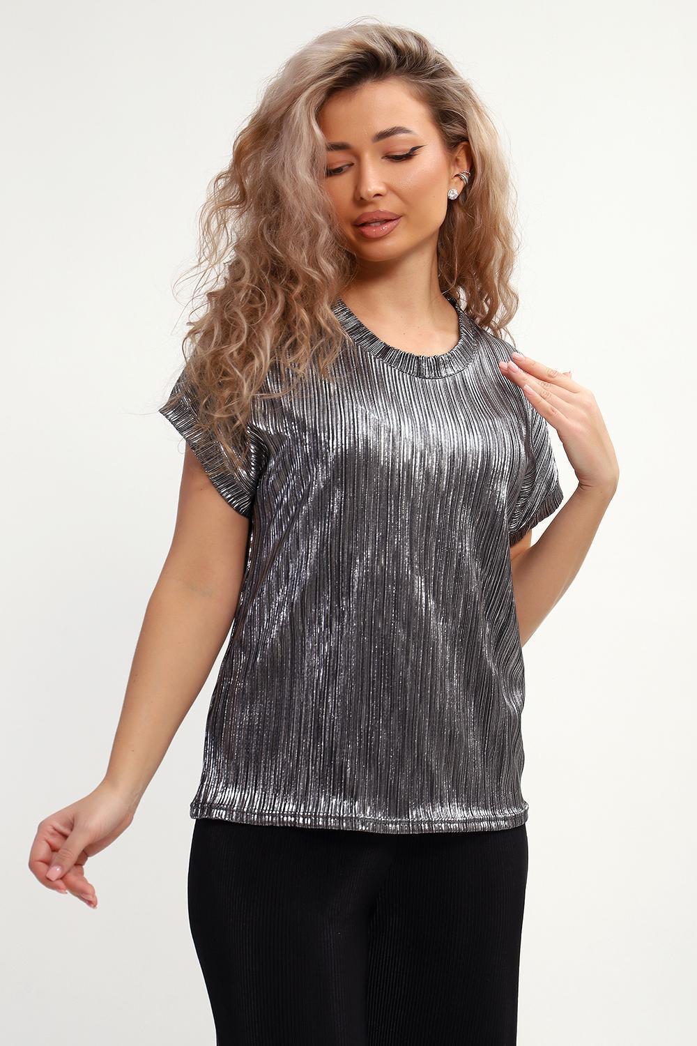 Стильная нарядная блузка, сочетающая в себе комфорт и элегантность. Благодаря свободному крою, блузка создает легкий силуэт и деликатно скрывает особенности фигуры. Добавляет изюминку изделию блестящая ткань с прочным напылением фойл, которое отлично держится на ткани после стирки. Ткань атлас гофре приятна на ощупь, хорошо тянется, не мнется, держит форму. Блузка смотрится и как офисная, и как вечерняя модель, а также это отличный вариант для летнего наряда. Округлая горловина, обработанная обтачкой, подчеркивает женственность образа, спущенный рукав не стесняет движений. Нарядная блузка позволит вам эффектно выглядеть не только на праздничных мероприятиях, но и в будни.