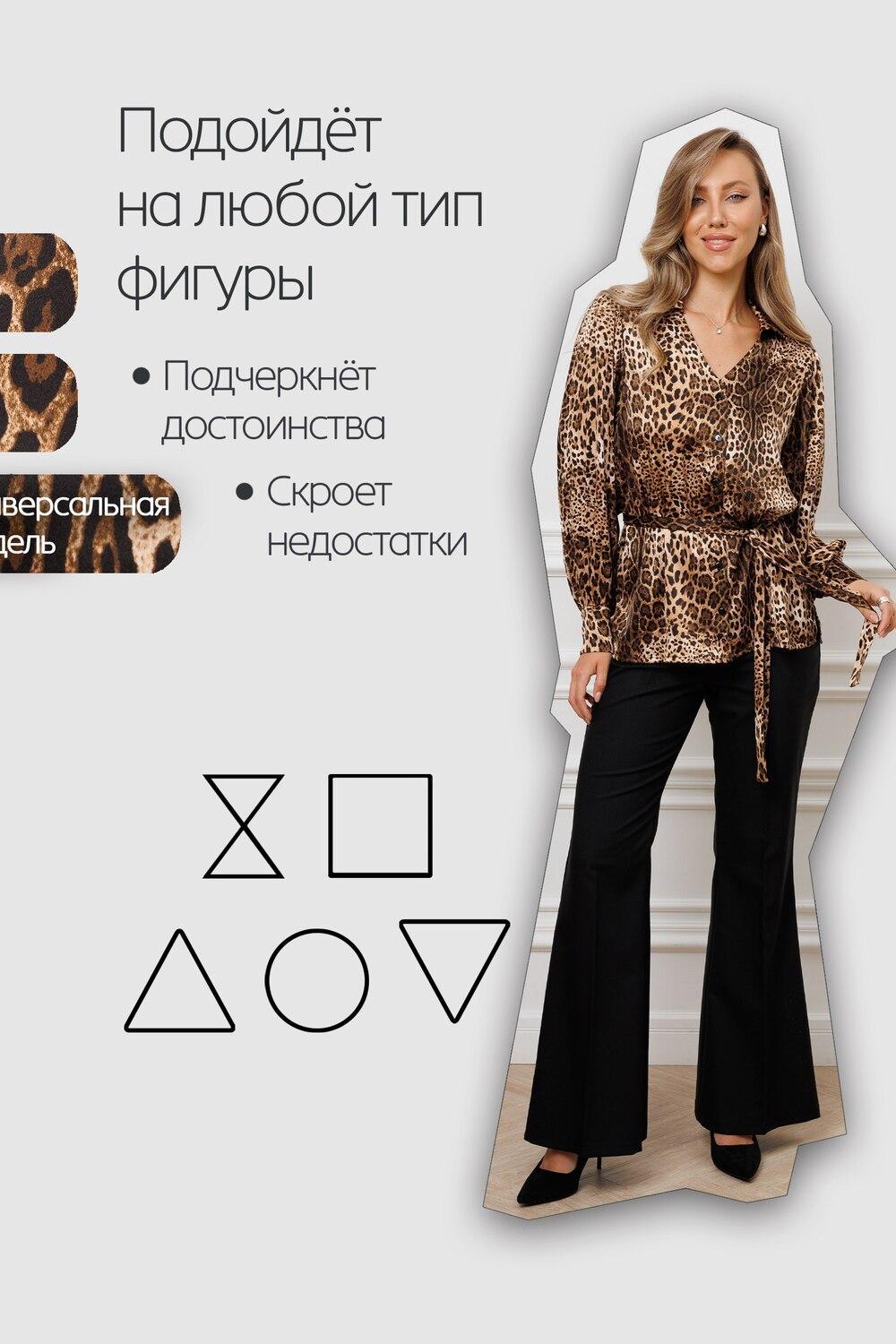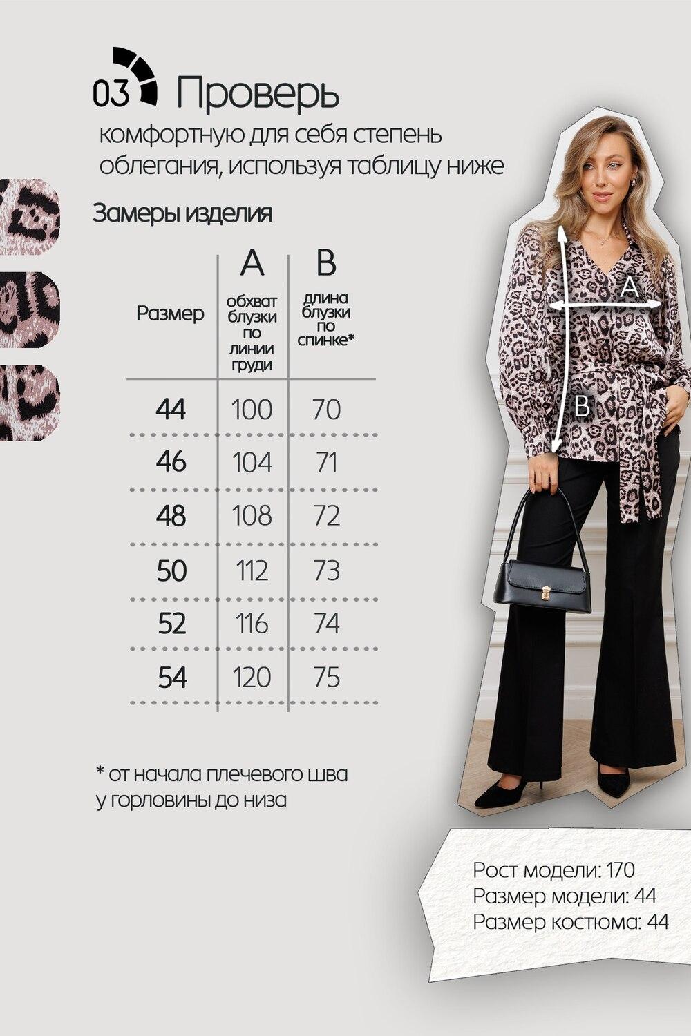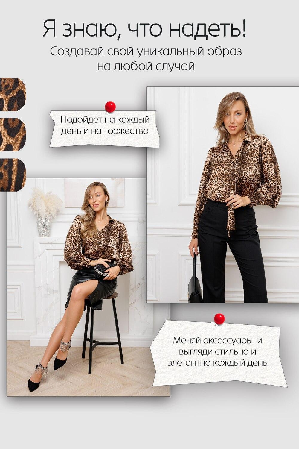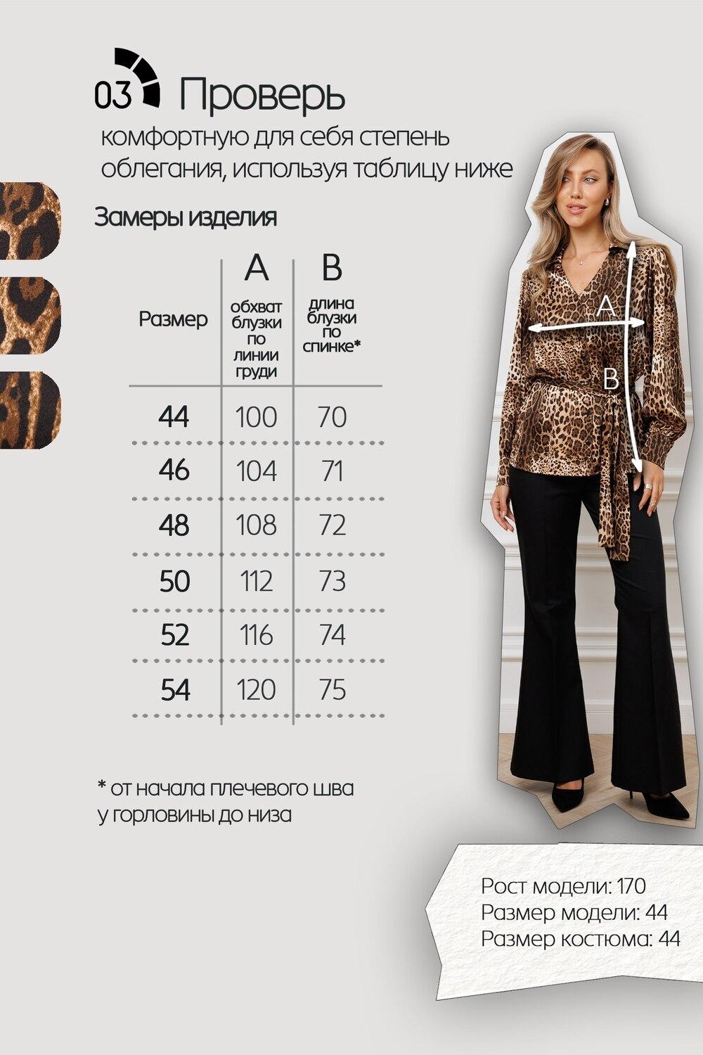 Блузка с поясом от российского производителя бренда женской одежды! Блуза прямого силуэта с V-образным вырезом, застегивается на пуговицы. Данная модель свободного кроя имеет леопардовый принт, в боковых швах имеются разрезы, пояс съемный. Рукав полной длины внизу имеет две складки, разрез и манжету, которая застегивается на две пуговицы. Необычное дизайнерское решение позволило совместить элегантную классику и эффектный стиль. Леопардовая рубашка женская станет отличным дополнением к любому гардеробу. Шелковая модель имеет в комплекте пояс, что подчеркивает талию и создает элегантный силуэт. Стильная блузка с поясом станет отличным выбором для женщин, стремящихся выглядеть нарядно и модно. Изготовленная из легкой атласной ткани, она обладает свободным кроем оверсайз, что обеспечивает комфорт в носке. Черный и белый цвета отлично подойдут как для праздничного мероприятия, так и для офисных встреч.