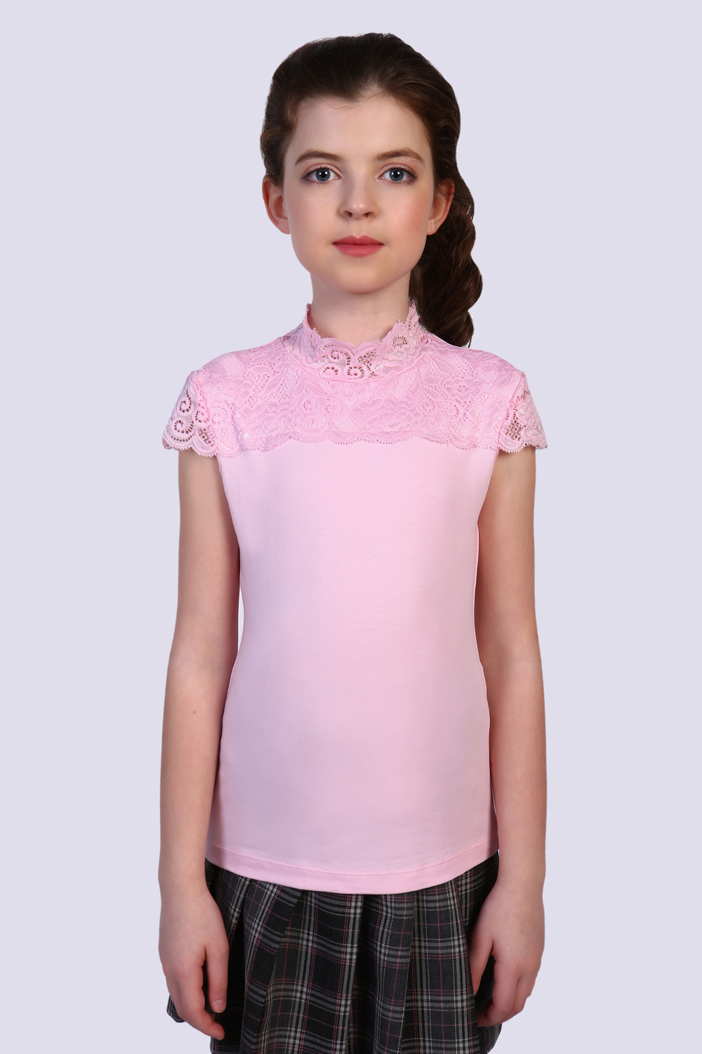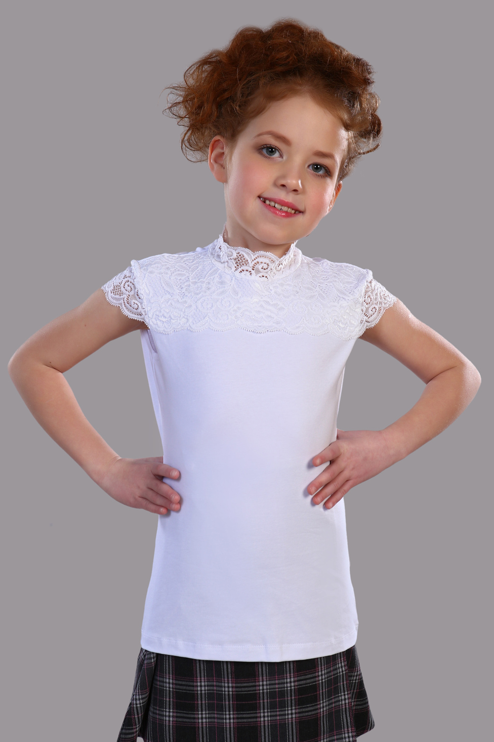 Трикотажная блузка для девочки станет замечательным выбором для школьной формы - она легко надевается благодаря кружевному элестичному воротнику и отлично подходит для ежедневной носки. Обтягивающий крой подойдет под любой пиджак или сарафан. В составе эластичный хлопок, который прекрасно дышит и не вызовет аллергию, идеальный вариант для детей и подростков. Плотный трикотаж отлично тянется и удобен в носке на каждый день - в блузке будет тепло как в учебном классе, так и на праздничных мероприятиях, парадах или линейке к 1 сентября.
