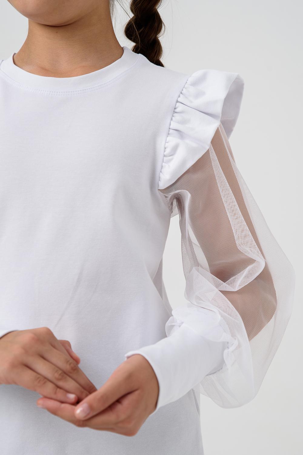 Стильная школьная блузка для девочки подростка с рукавами из фатина. Красивый джемпер для девочек подростков на каждый день.