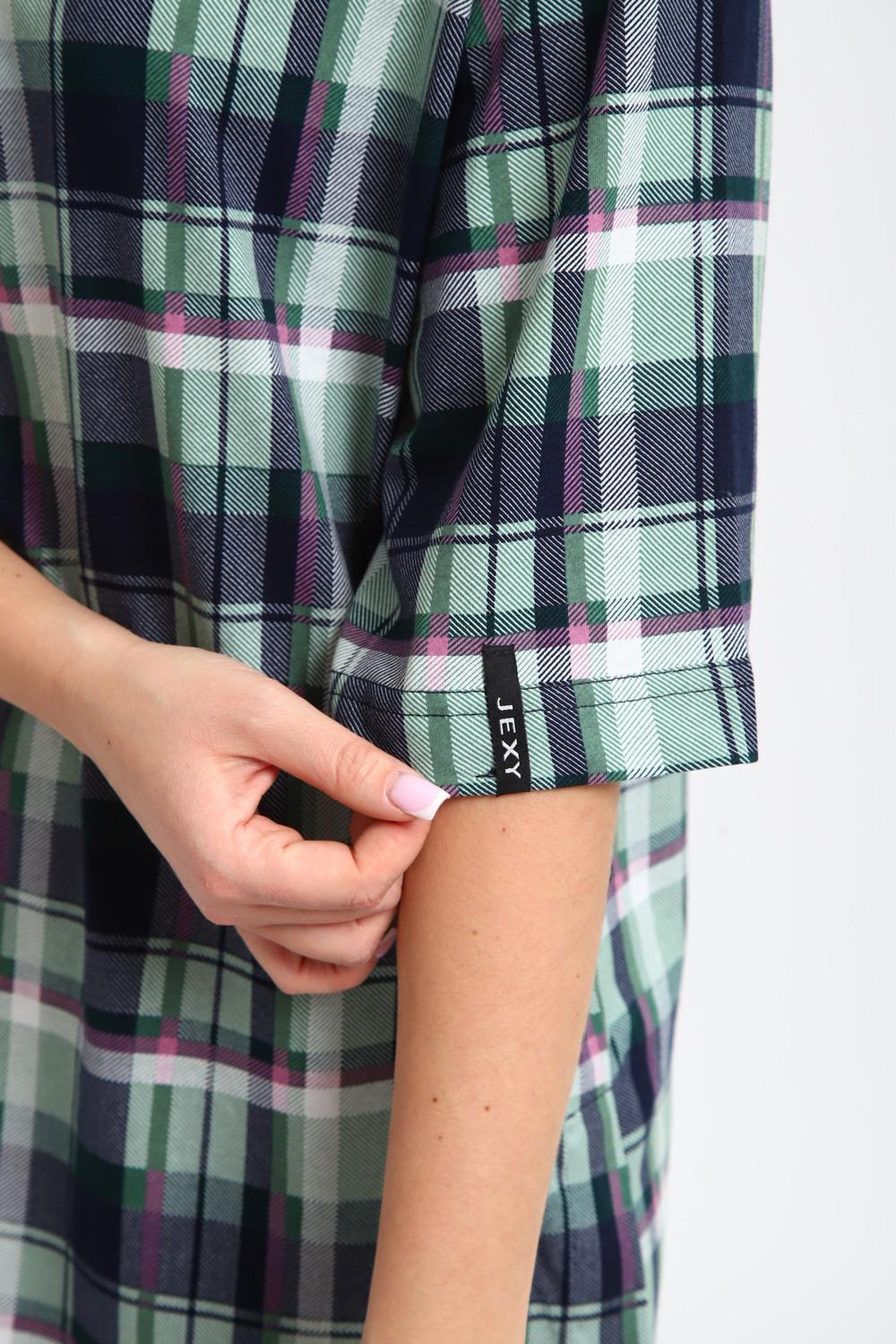 Туника женская JEXY – идеальный выбор для комфортного пребывания дома. Эта длинная одежда мягкая и приятная к телу благодаря использованию хлопка. Она прекрасно подходит для беременных женщин, обеспечивая удобство и свободу движений благодаря оверсайз силуэту. Трикотажная ткань подчеркивает её стиль, а крупный клетчатый узор добавляет характер.