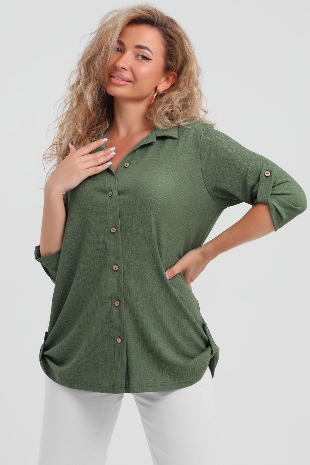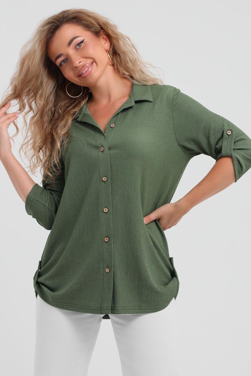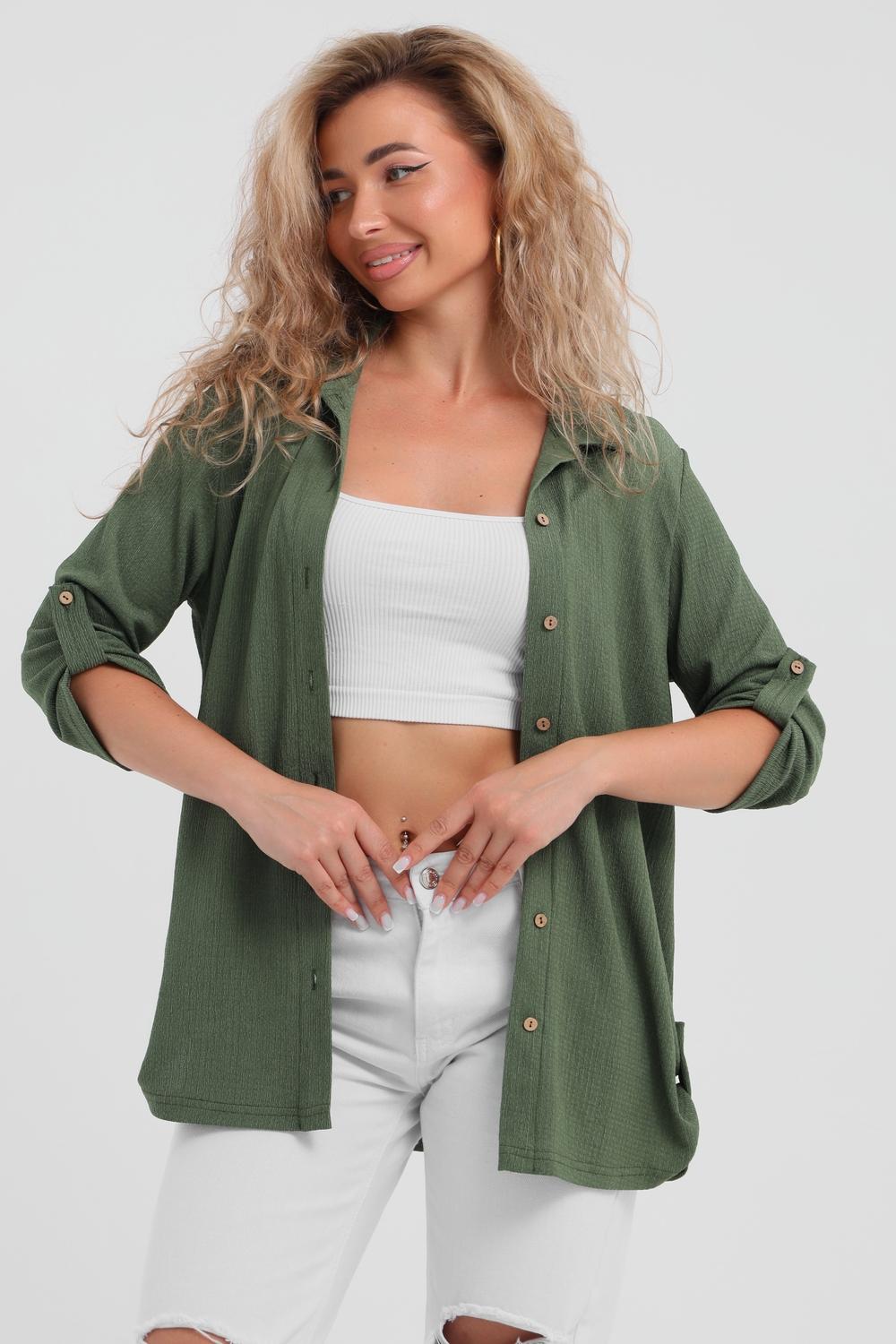 Модная рубашка в стиле oversize выполнена из лёгкого и приятного к телу материала - жатка. Это одна из самых модных и популярных моделей сезона. Рубашка имеет слегка удлинённую спинку, рукав 3/4, классический рубашечный воротник и планку. А модные цвета этого лета добавляют законченность деталям и определяют "must have" сезона. За счёт свободного фасона рубашку можно носить с любым типом фигуры, отлично подойдёт для беременных женщин, а также кормящих мам. Женская рубашка идеальна как для лета, так и для прохладного вечера. С помощью такой рубашки Вы можете создать деловой образ или летний расслабленный. А также отправиться на праздник или вечеринку, в школу или на прогулку, на пляж или провести незабываемый вечер дома. Модель такого плана идеально подойдёт и в качестве подарка для себя и своих любимых!