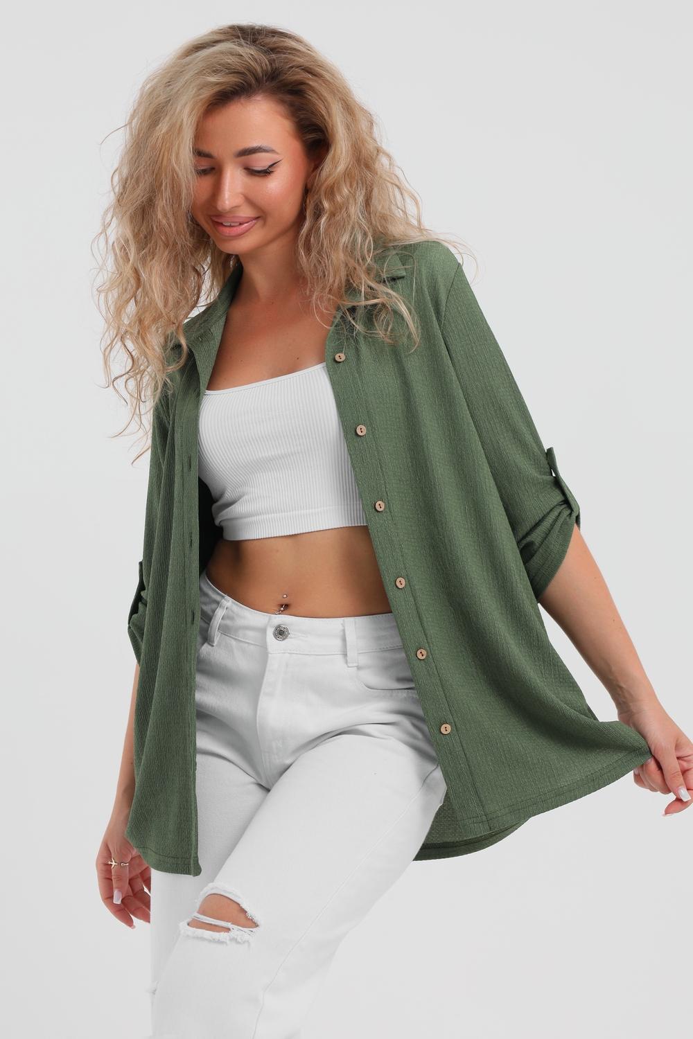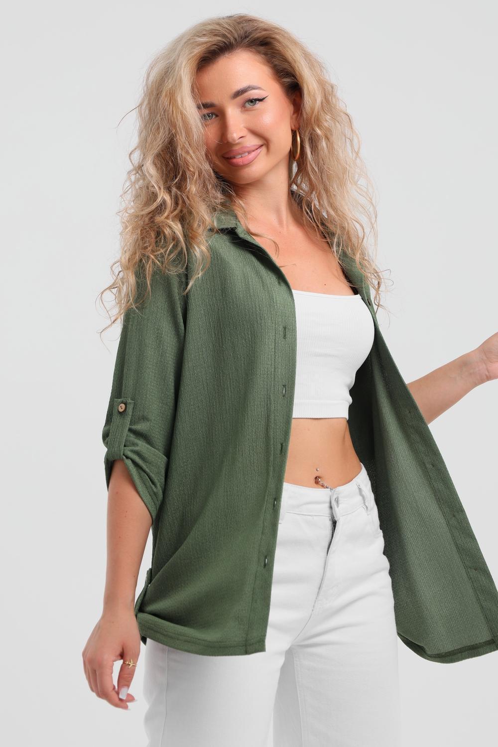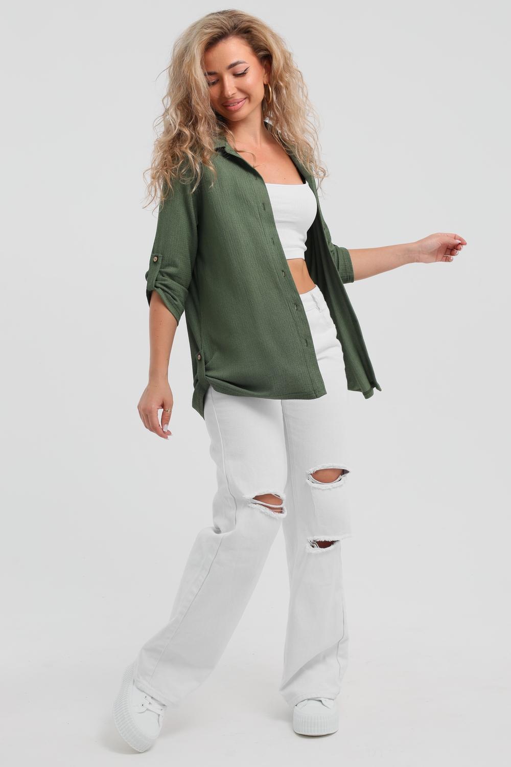Модная рубашка в стиле oversize выполнена из лёгкого и приятного к телу материала - жатка. Это одна из самых модных и популярных моделей сезона. Рубашка имеет слегка удлинённую спинку, рукав 3/4, классический рубашечный воротник и планку. А модные цвета этого лета добавляют законченность деталям и определяют "must have" сезона. За счёт свободного фасона рубашку можно носить с любым типом фигуры, отлично подойдёт для беременных женщин, а также кормящих мам. Женская рубашка идеальна как для лета, так и для прохладного вечера. С помощью такой рубашки Вы можете создать деловой образ или летний расслабленный. А также отправиться на праздник или вечеринку, в школу или на прогулку, на пляж или провести незабываемый вечер дома. Модель такого плана идеально подойдёт и в качестве подарка для себя и своих любимых!