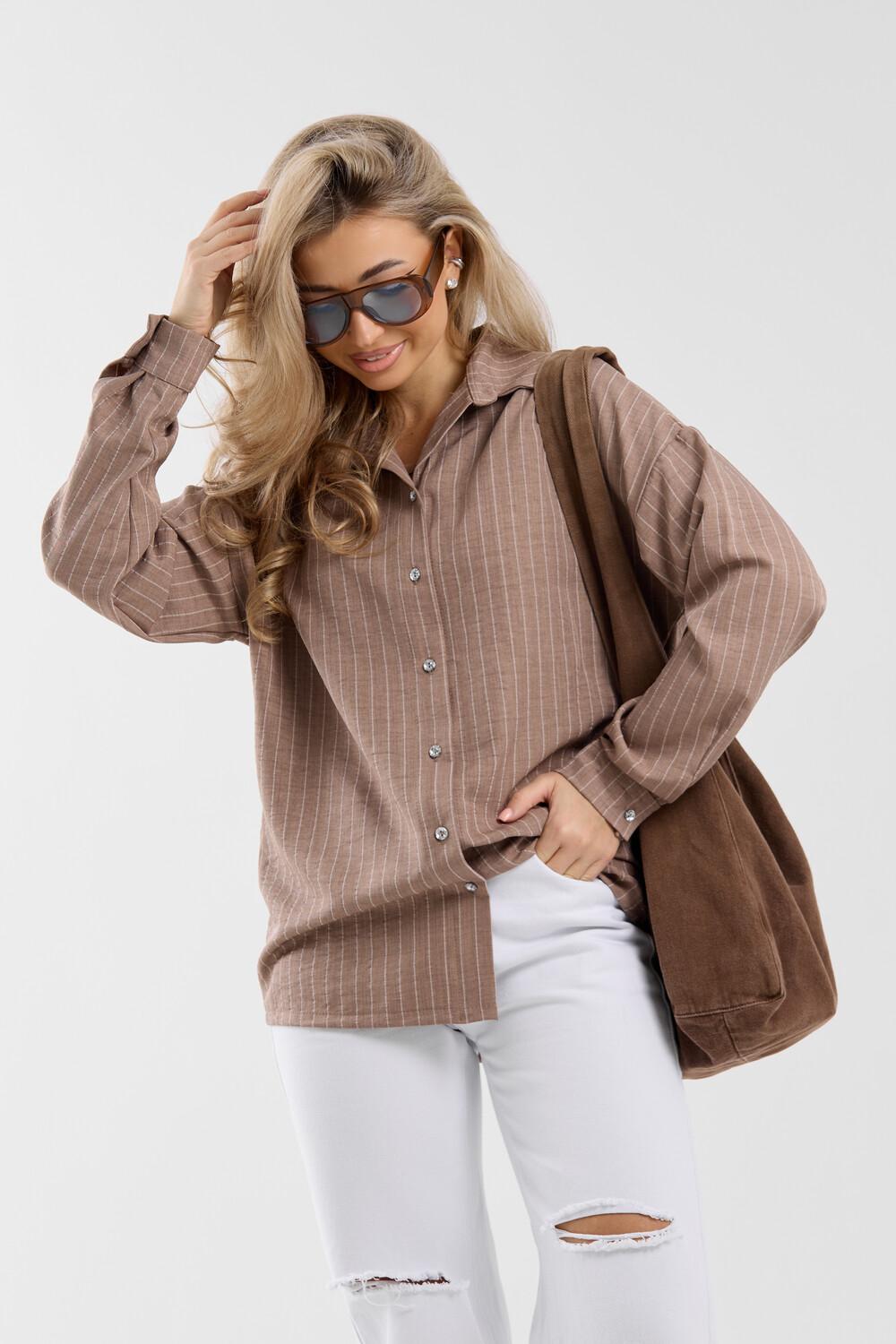 Модная рубашка в стиле oversize выполнена из качественного льняного материала в полоску. Рубашка такого плана делает любой образ уникальным и выразительным. Полоса будет самой актуальной в этом сезоне. Главное преимущество полосы —это стройность вашего силуета, поэтому вам не придется переживать за целостность образа. Но будьте осторожны — в комплект к моделям с полосой лучше выбирать однотонные вещи, чтобы не перегружать лук. Это одна из самых модных и популярных моделей сезона. Рубашка имеет слегка удлинённую спинку, спущенную линию плечевого шва, классический рубашечный воротник со стойкой, планку и манжеты на пуговках. За счёт свободного фасона рубашку можно носить с любым типом фигуры, отлично подойдёт для беременных женщин, а также кормящих мам. Женская льняная рубашка идеальна как для лета, так и для прохладного вечера. С помощью такой рубашки Вы можете создать деловой образ или летний расслабленный. А также отправиться на праздник или вечеринку, на прогулку, на пляж или провести незабываемый вечер дома. Модель такого плана идеально подойдёт и в качестве подарка для себя и своих любимых! Современная туника - это почти неотъемлемая часть гардероба любой женщины, которая сделает Вас неотразимой в любой ситуации.