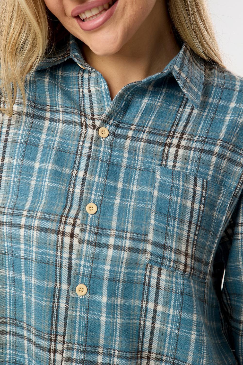 Свободная женская рубашка в классическую клетку из мягкой фланели — идеальный выбор для тех, кто ценит уют и стиль в одном изделии. Ткань приятна к телу и сохраняет тепло благодаря натуральному содержанию хлопка (70%) при небольшой добавке полиэстера (30%) для прочности и износостойкости. Рубашка выполнена в классическом стиле, что обеспечивает комфортную посадку и свободу движений. Модель имеет накладной карман на груди для практичности. Рукава с манжетами, которые можно подкатить или зафиксировать для регулировки длины. Крой рубашки оптимальной посадки изделия и придать ему нужную форму. Рубашка доступна в размерах 40–52, поэтому легко подобрать вариант как для более свободного, так и для чуть более прилегающего силуэта. При желании можно выбрать на два размера больше для Oversize, перед этим советуем воспользоваться ТАБЛИЦЕЙ РАЗМЕРОВ на фото. Рубашка универсальная в сочетаниях — носите её с джинсами и кедами для повседневного образа, как лёгкий верх поверх футболки или тонкого свитера, заправленной в юбку с ремнём для акцента на талии, а также как уютный домашний вариант с трикотажными брюками. Уход прост — машинная стирка при температуре до 30°C на деликатном режиме, не отбеливать, сушить развешенной или в разложенном виде вдали от прямых солнечных лучей, при необходимости гладить при низкой температуре через ткань. Аккуратная обработка швов и прочные пуговицы обеспечивают долговечность, а сочетание комфорта и практичности делает эту рубашку незаменимым элементом вашего базового гардероба в прохладные дни.