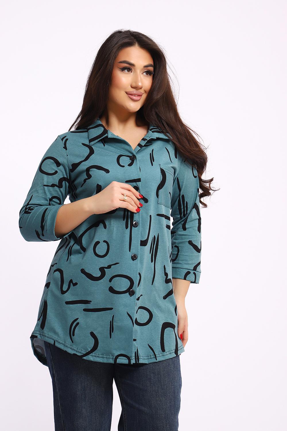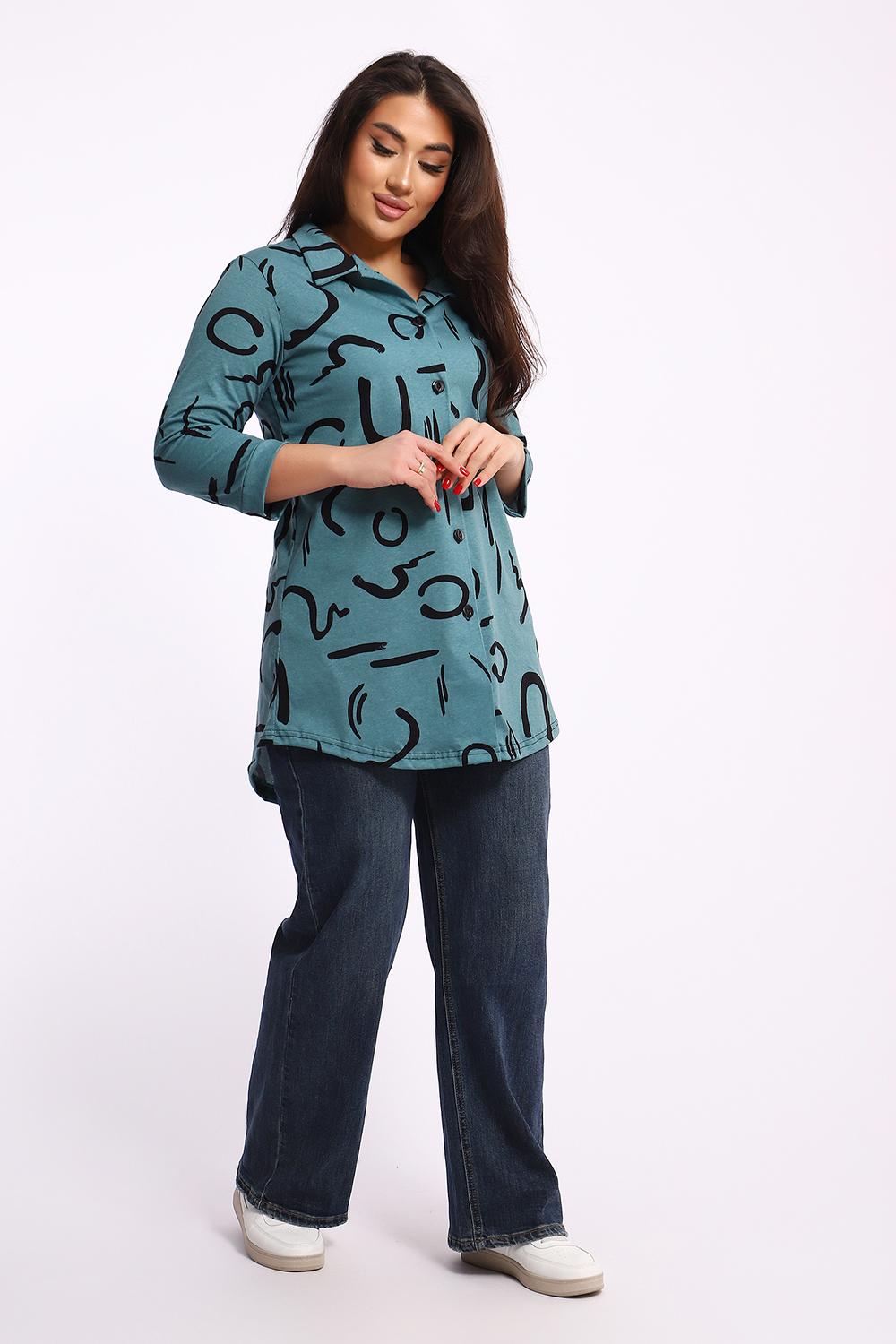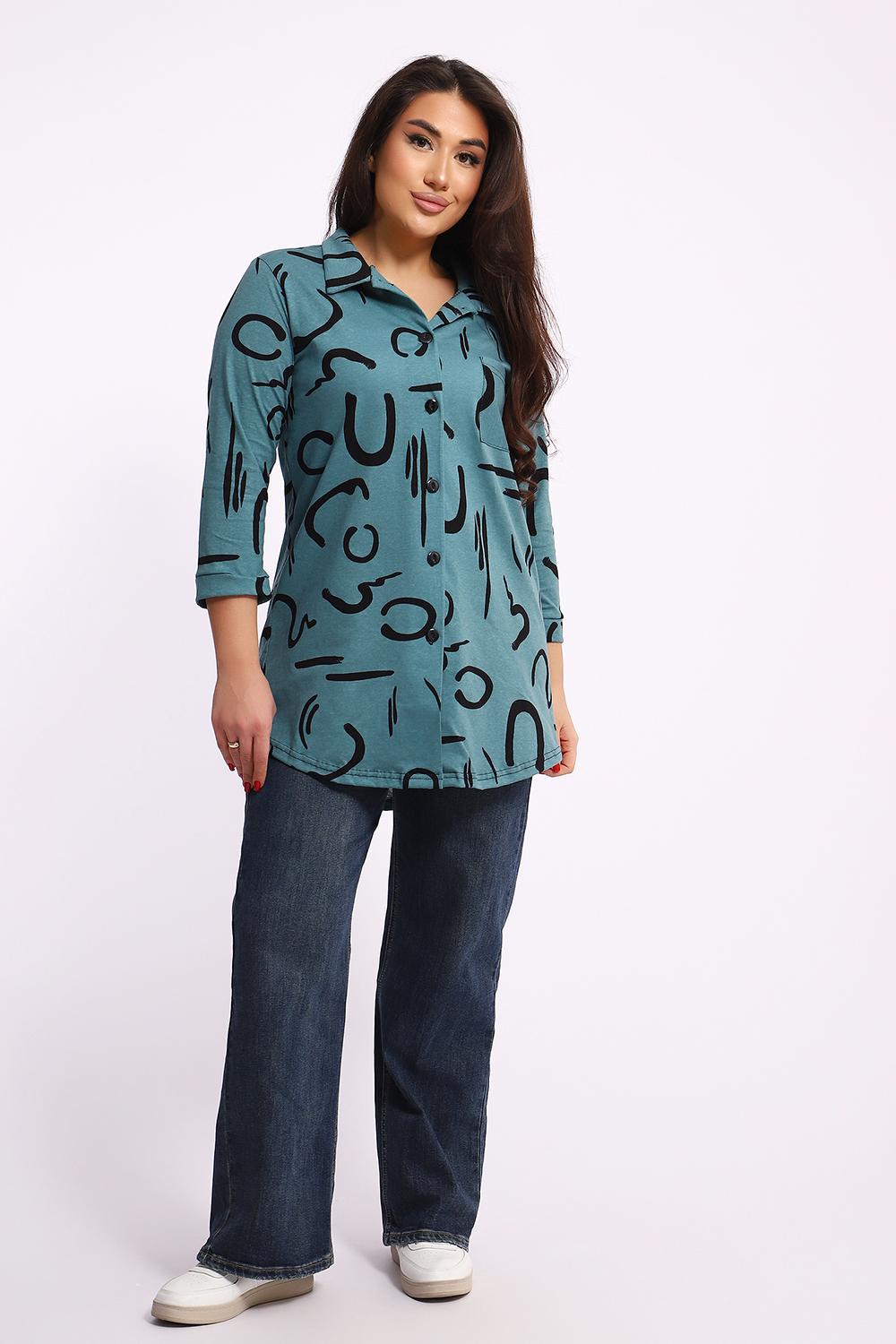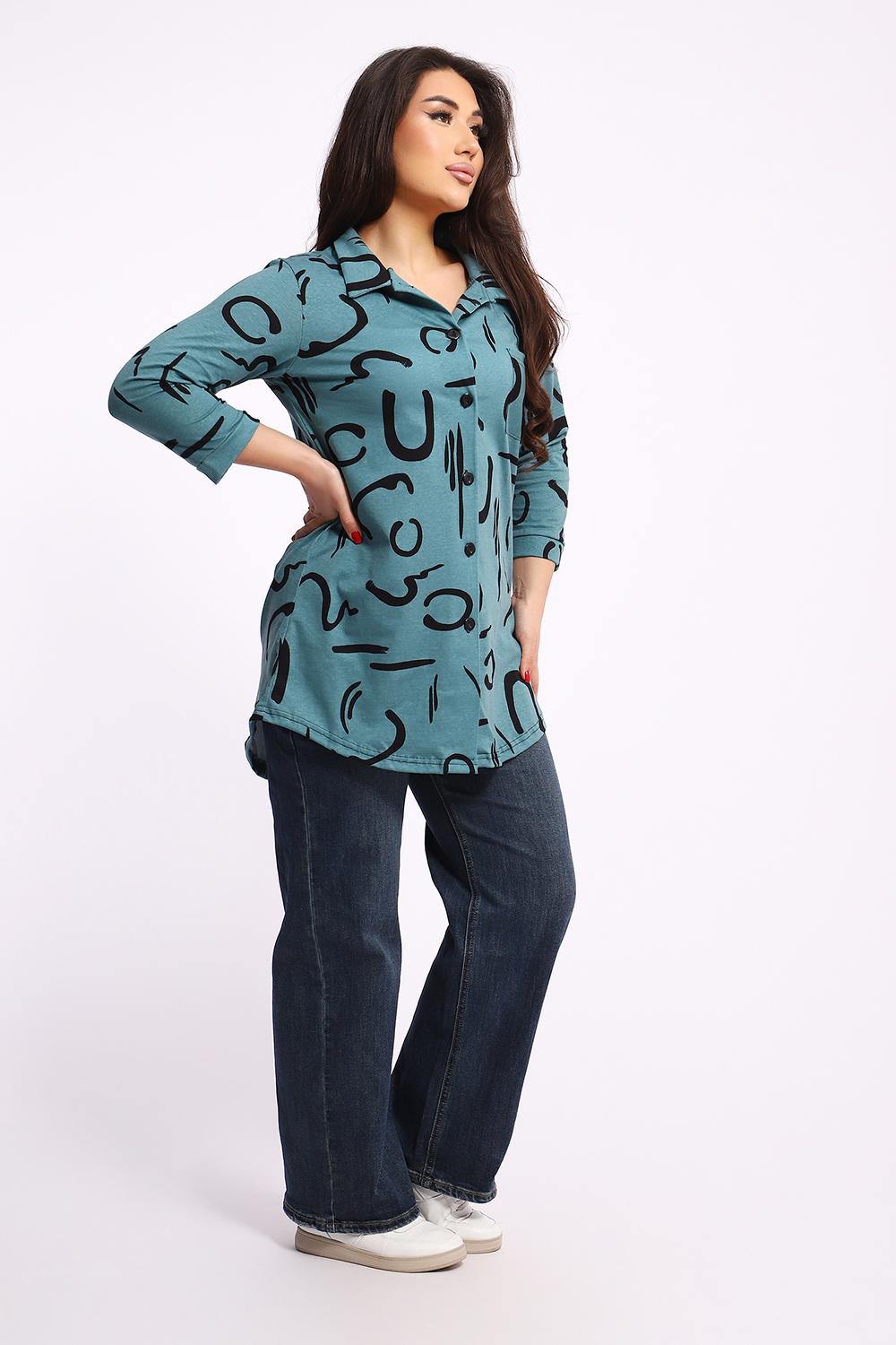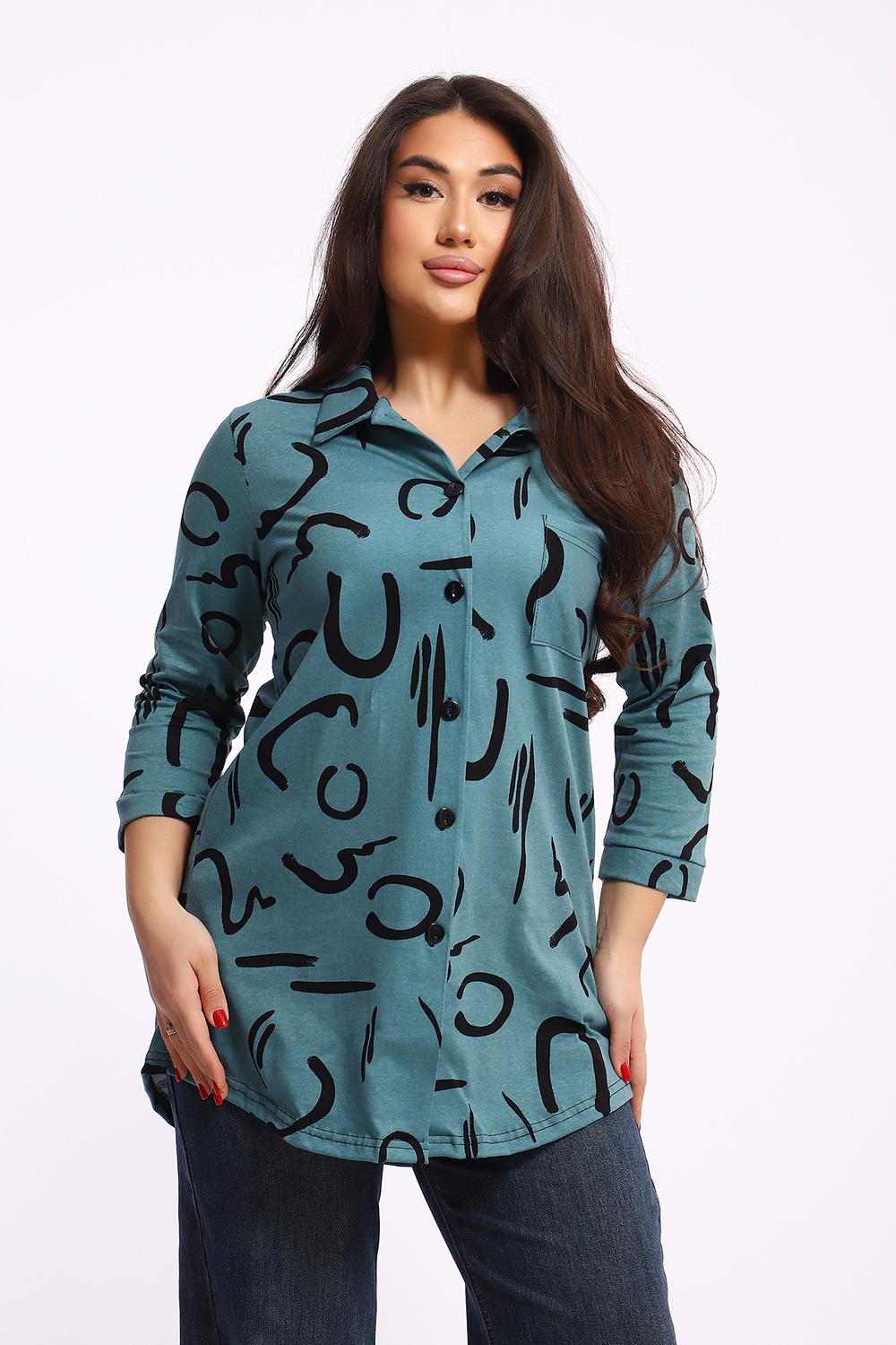 Женская туника-рубашка на пуговицах выполнена из хлопкового трикотажного полотна. Изделие свободного покроя с оригинальным комбинированием прекрасно подойдет для любителей комфорта в стильных вещах.