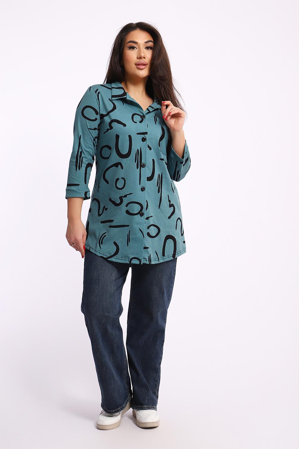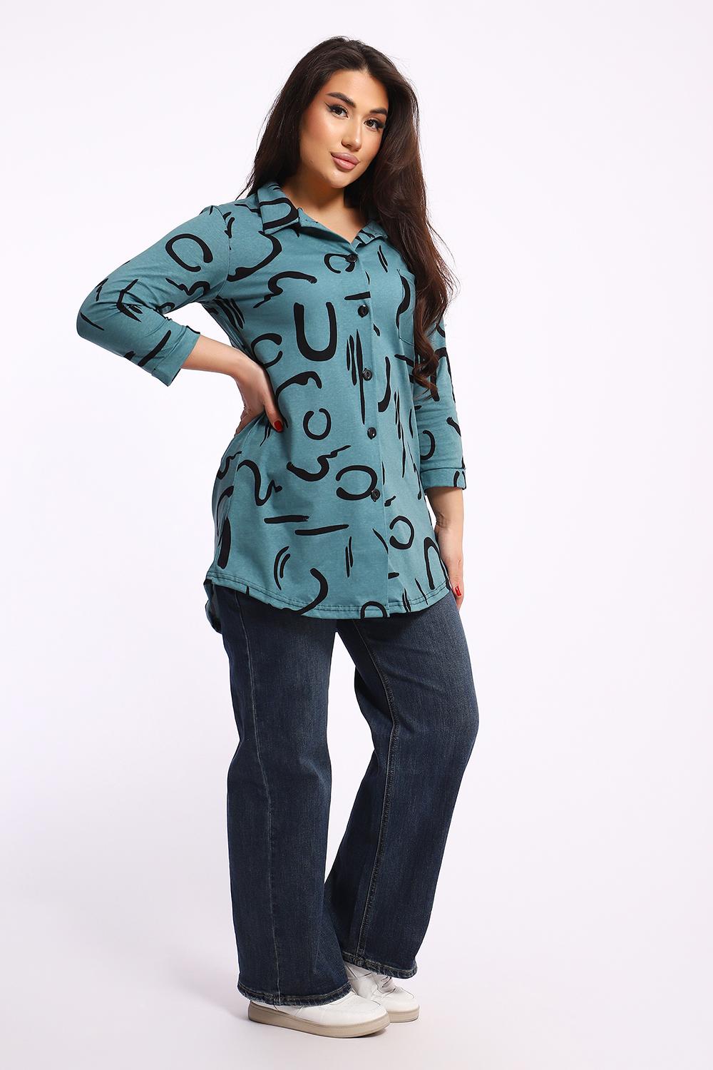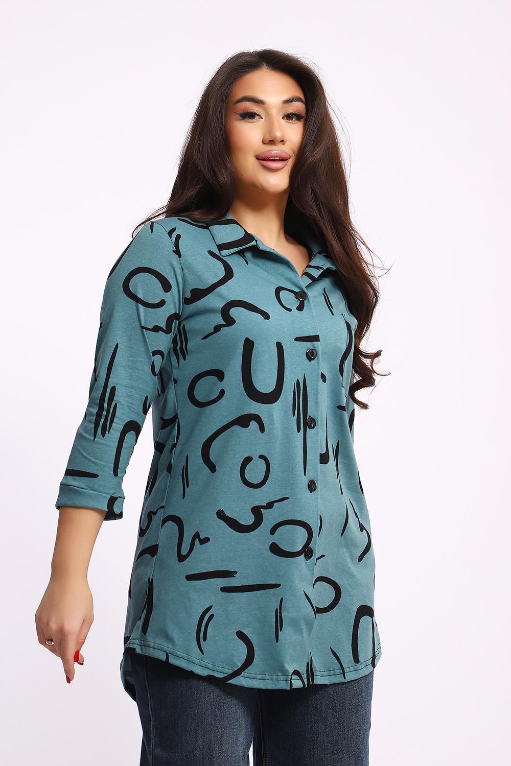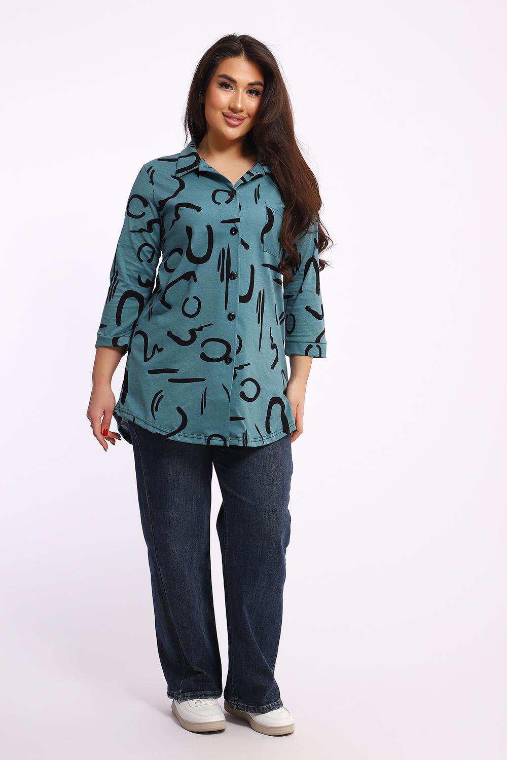 Женская туника-рубашка на пуговицах выполнена из хлопкового трикотажного полотна. Изделие свободного покроя с оригинальным комбинированием прекрасно подойдет для любителей комфорта в стильных вещах.
