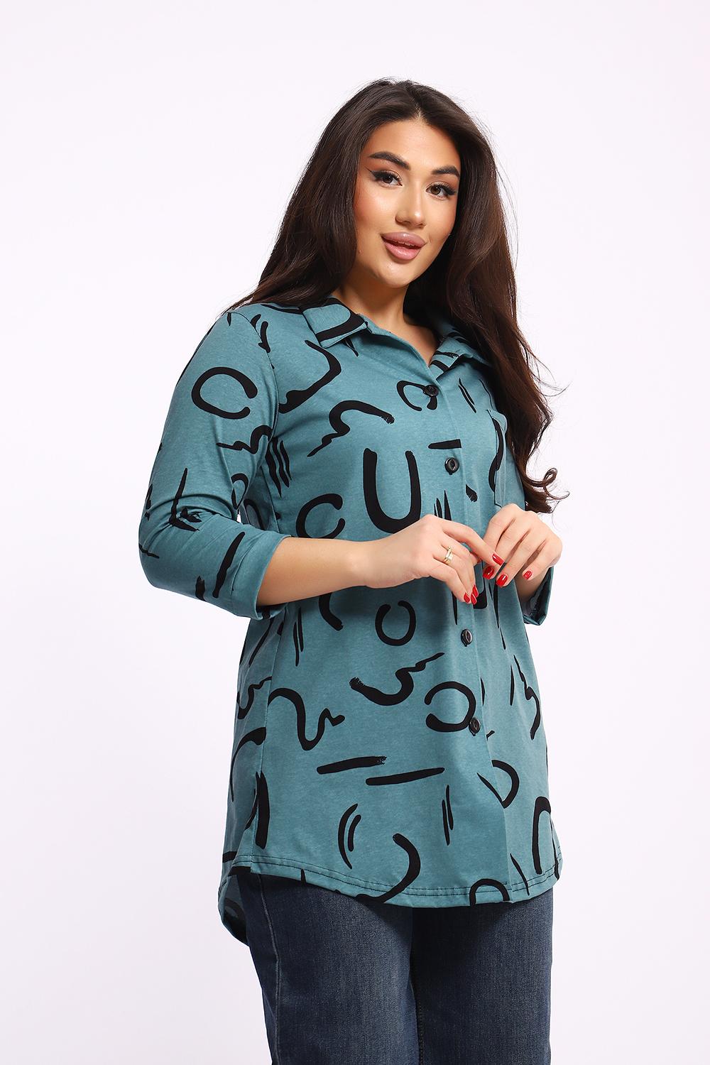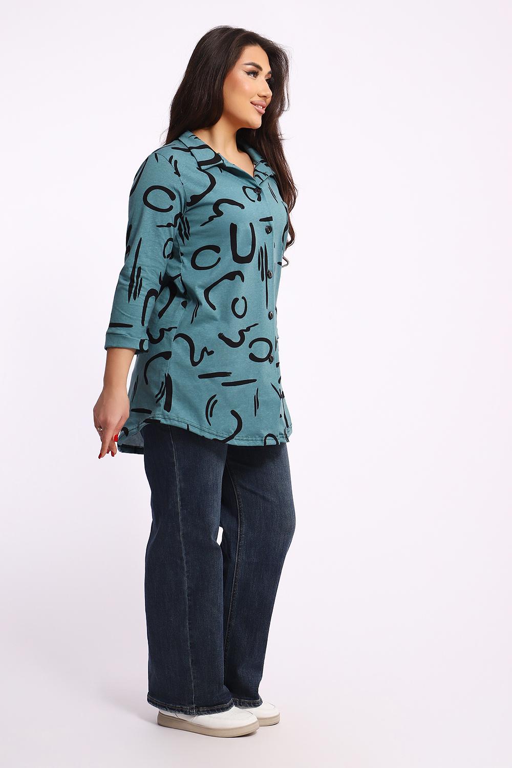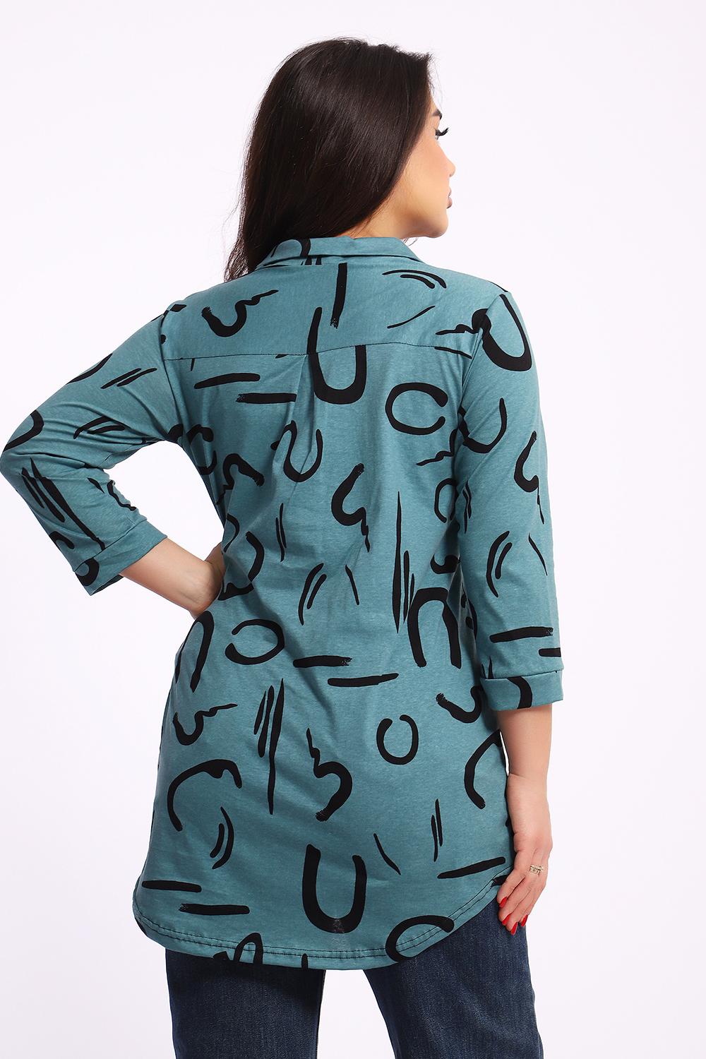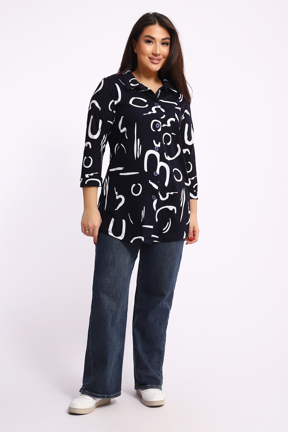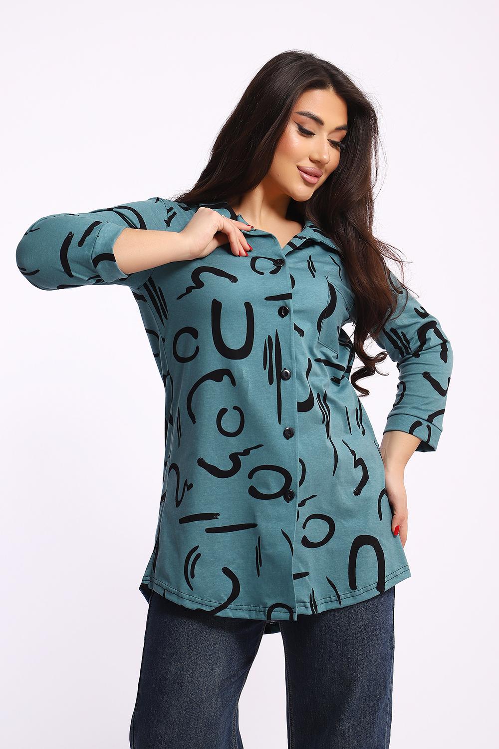Женская туника-рубашка на пуговицах выполнена из хлопкового трикотажного полотна. Изделие свободного покроя с оригинальным комбинированием прекрасно подойдет для любителей комфорта в стильных вещах.
