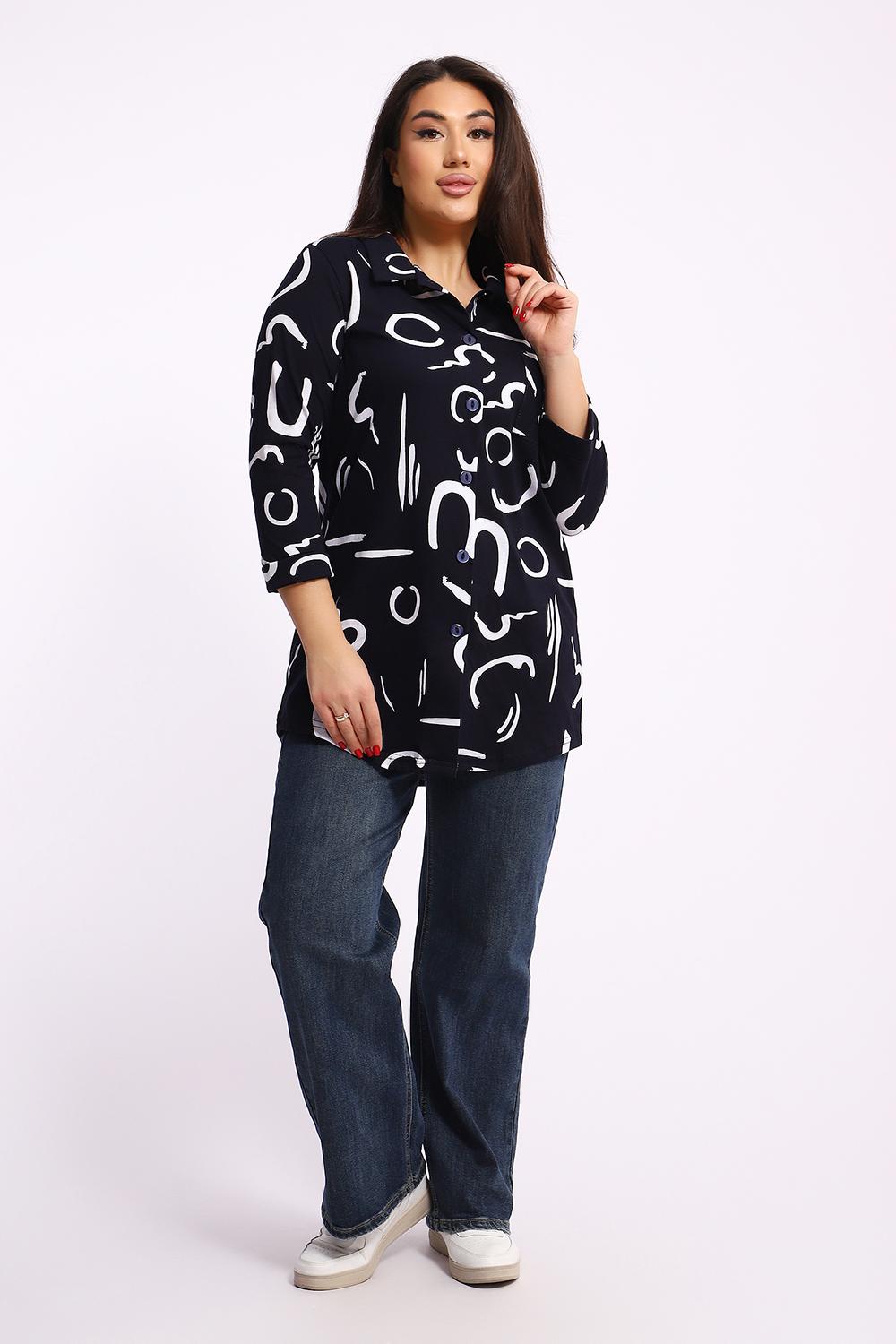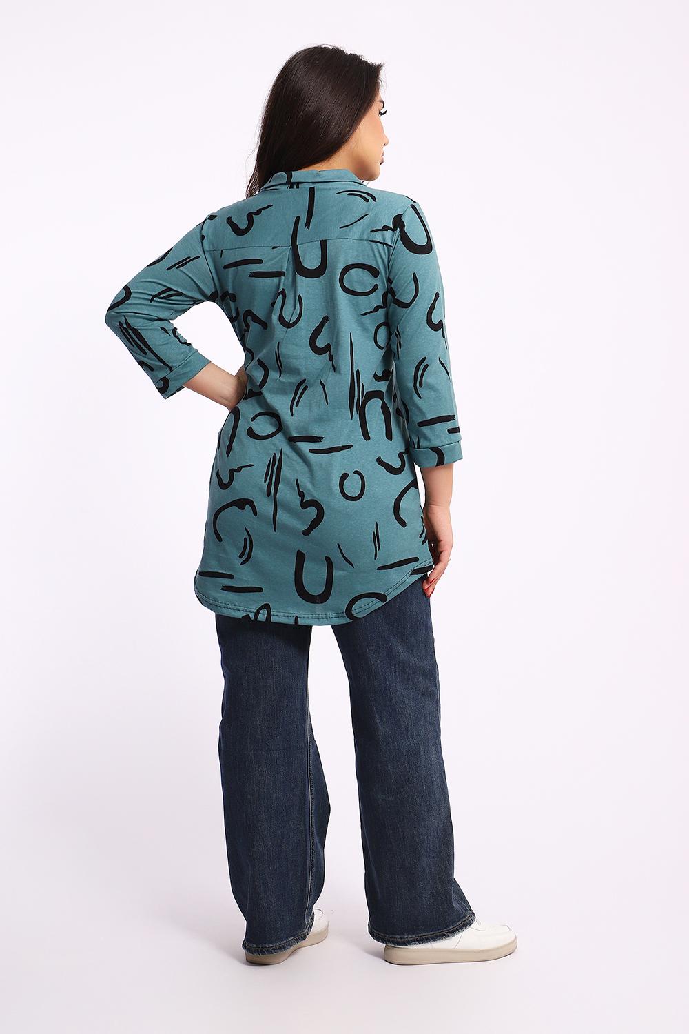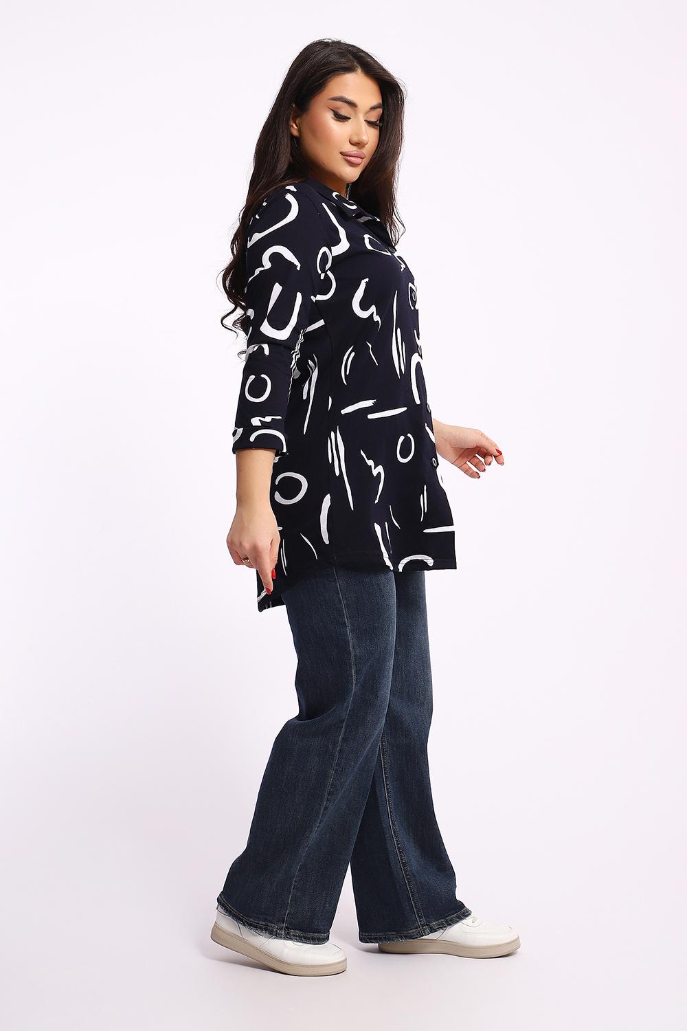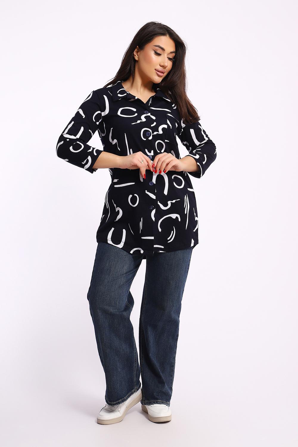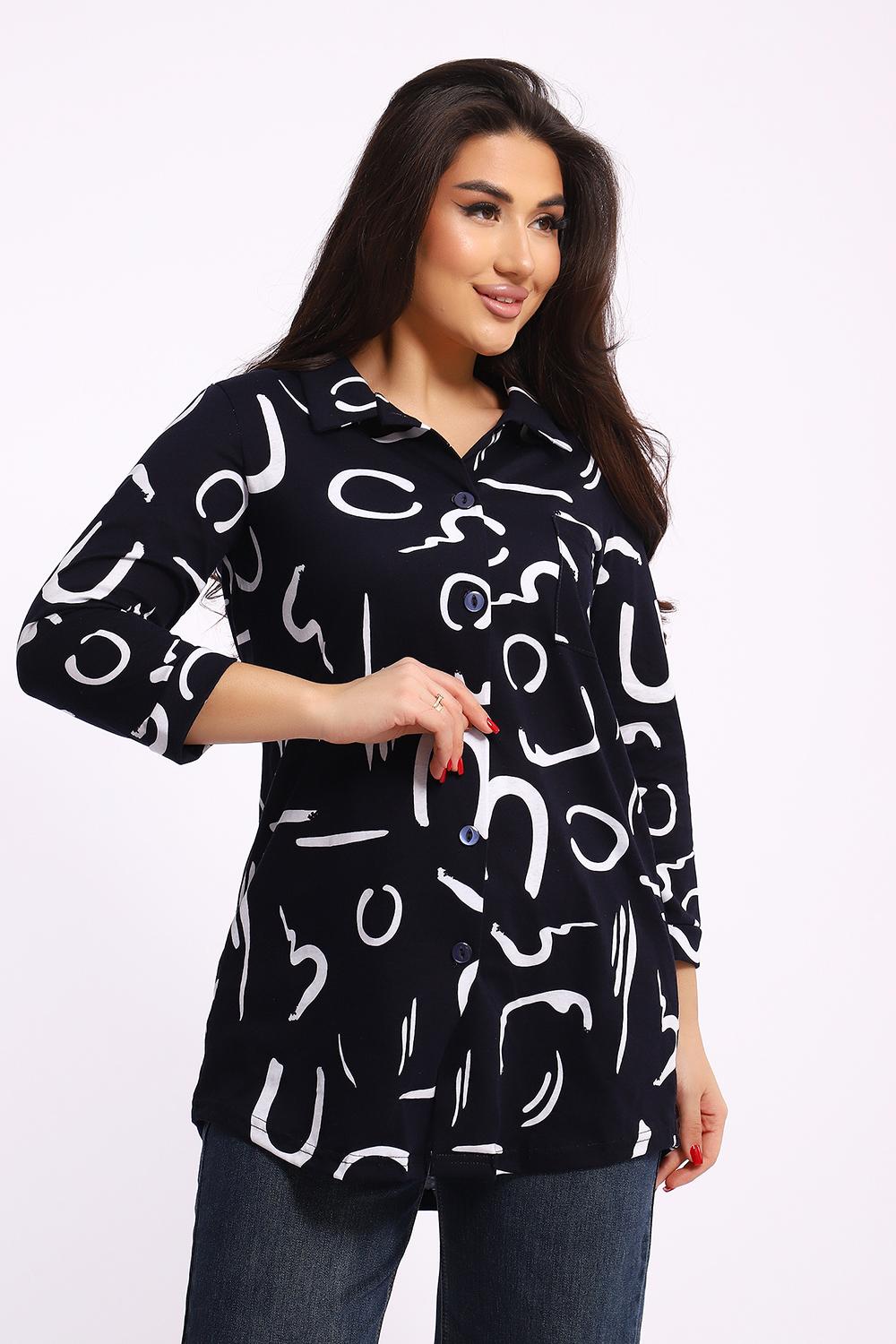 Женская туника-рубашка на пуговицах выполнена из хлопкового трикотажного полотна. Изделие свободного покроя с оригинальным комбинированием прекрасно подойдет для любителей комфорта в стильных вещах.