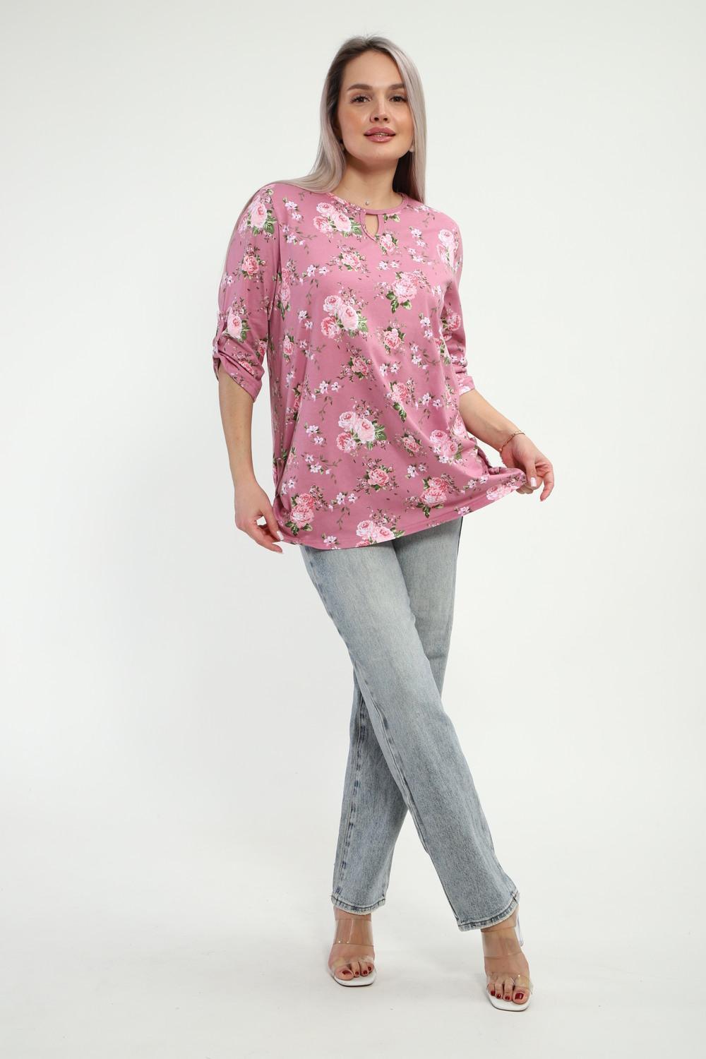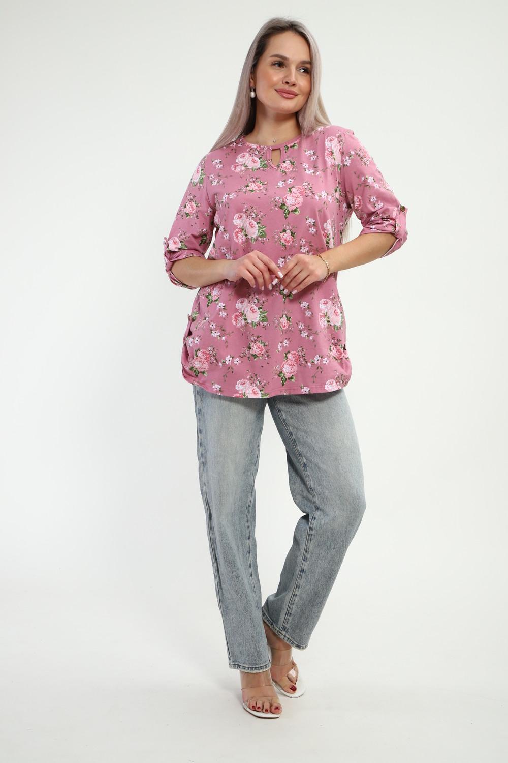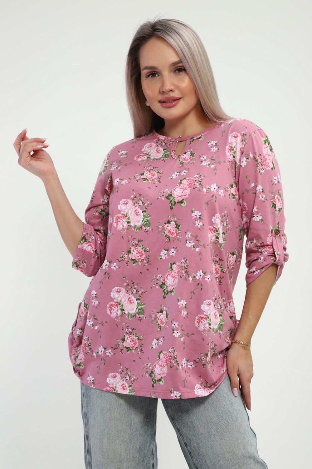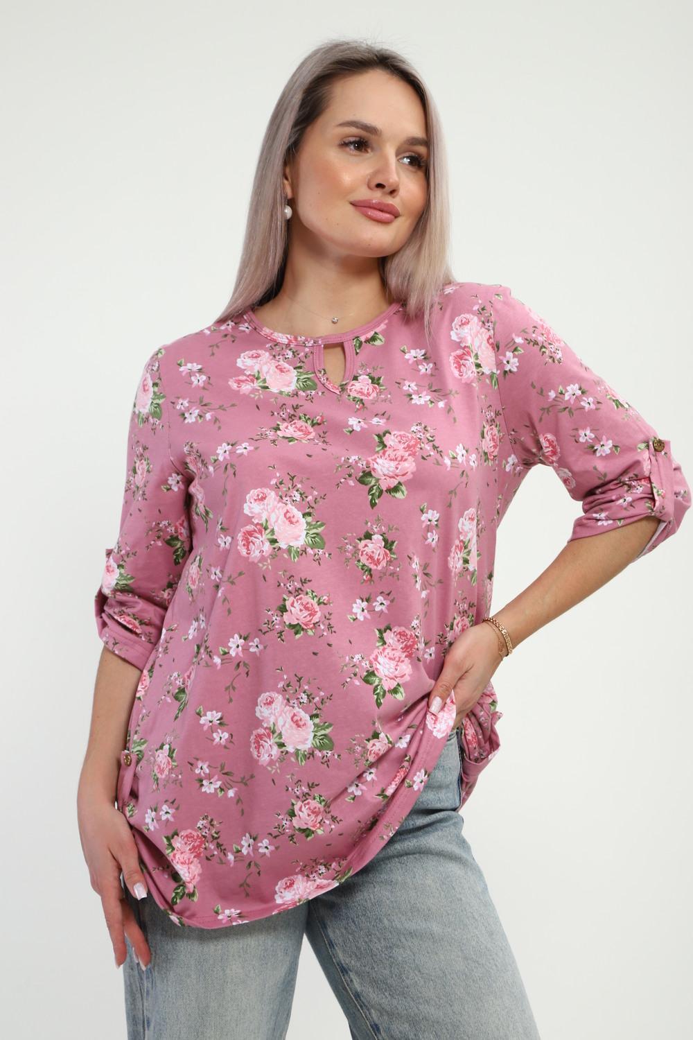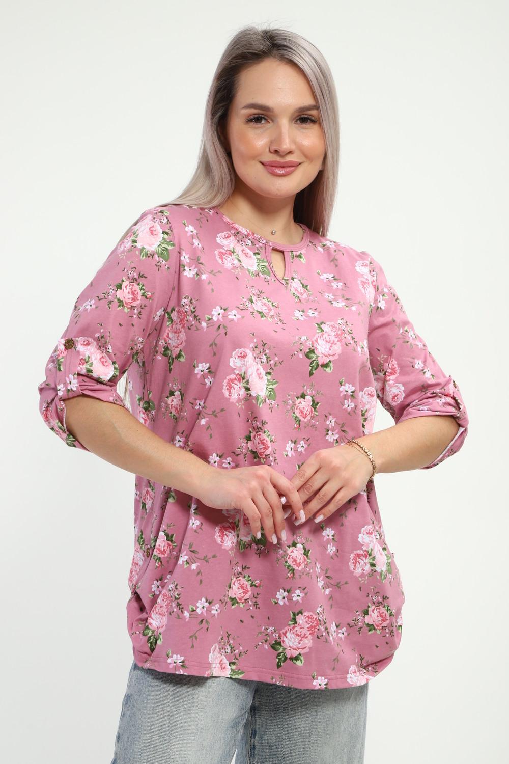 Туника женская Туника-рубашка имеет округлый вырез с фигурной капелькой. Рукава 3/4 и низ подогнуты на плоскошовной машине, а так жен имеют декоративный элемент с пуговицей.Блуза женская подходит для беременных, для полных, для женщин больших размеров. Туника-рубашка подойдет для лета, весны, осени, зимы