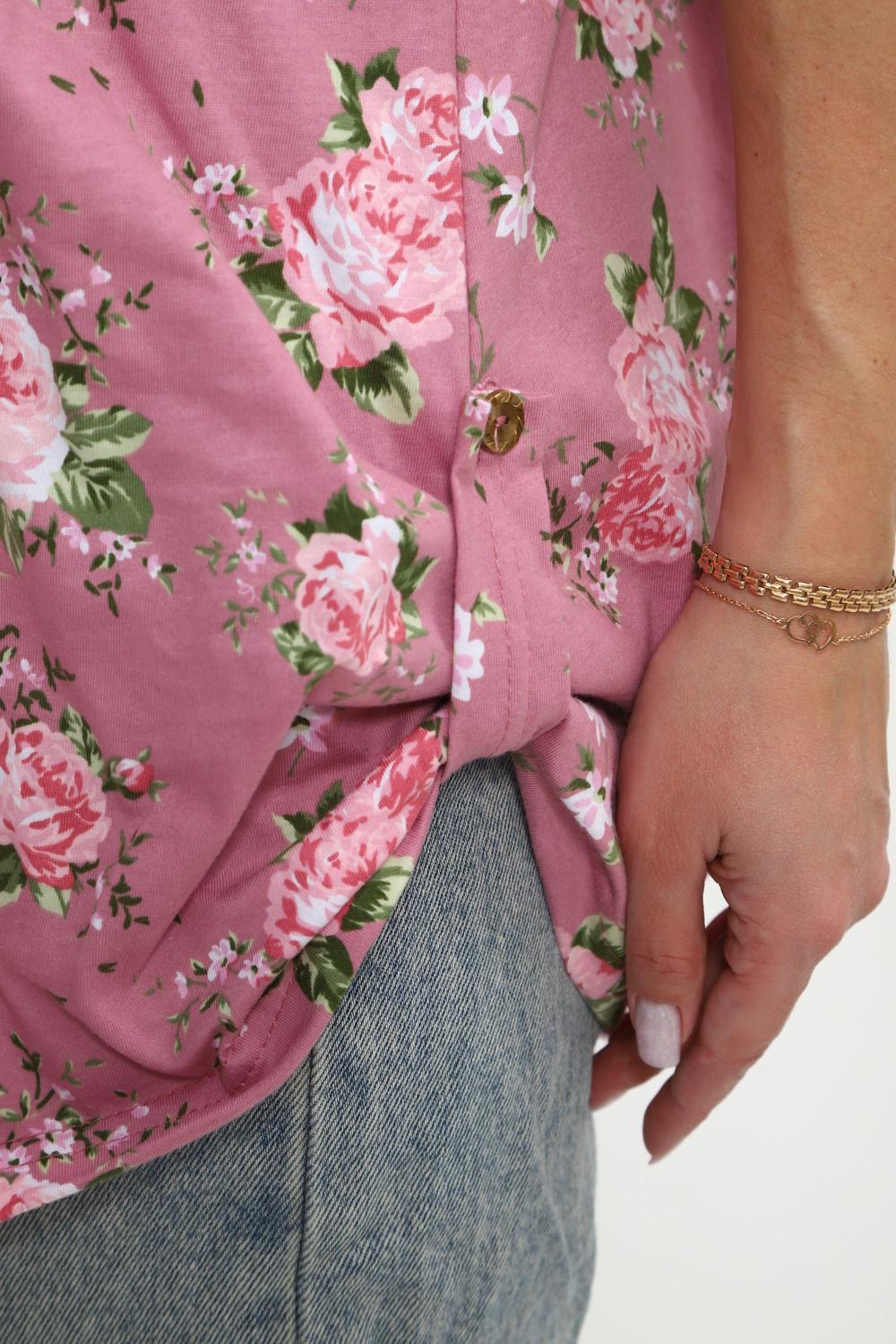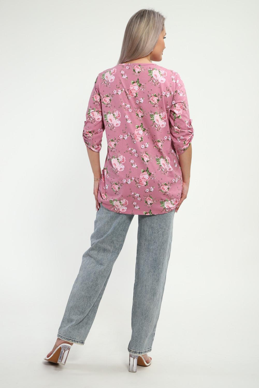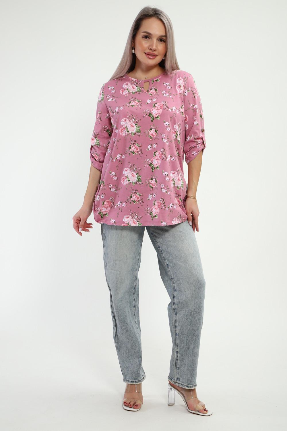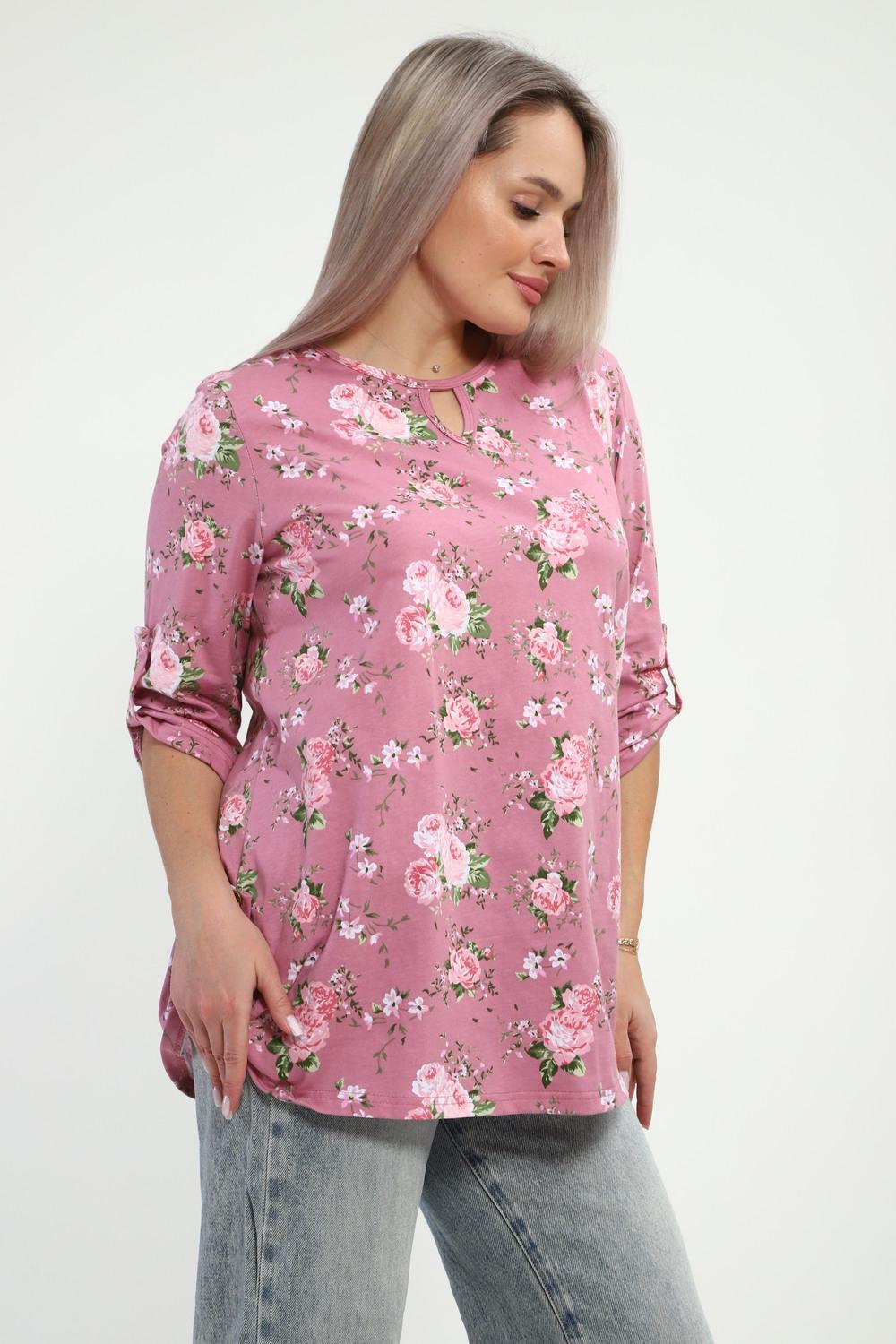 Туника женская Туника-рубашка имеет округлый вырез с фигурной капелькой. Рукава 3/4 и низ подогнуты на плоскошовной машине, а так жен имеют декоративный элемент с пуговицей.Блуза женская подходит для беременных, для полных, для женщин больших размеров. Туника-рубашка подойдет для лета, весны, осени, зимы