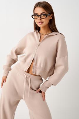 Туника женская прямого силуэта. Рукав цельнокроенный. Кокетка полочки и спинки, низ туники из оливковой хлопковой сетки. В среднем горизонтальном шве полочки два внутренних удобных кармана. В центре кокетка полочки собрана на серебряную тесьму.