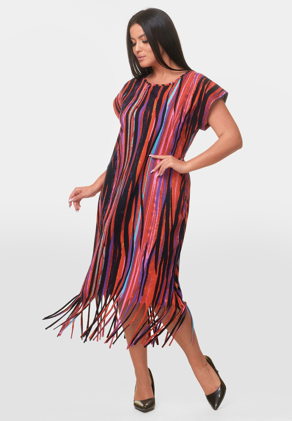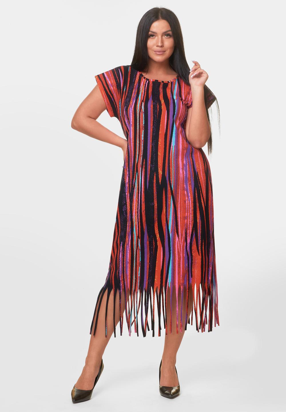 Туника прямого кроя - обязательный атрибут гардероба каждой модницы. Короткий рукав, округлый вырез горловины и декоративные элементы снизу добавят образу изюминку и шарм. Большие размеры и материал из 100% хлопка делают это платье невероятно комфортным для носки как дома, так и на улице в жаркий летний день.
