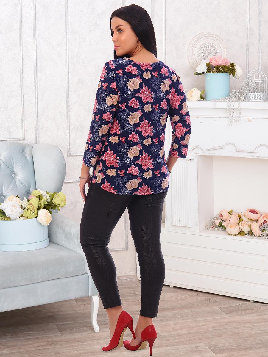 Туника женская с круглым вырезом горловины и рукавом 7/8. Низ туники, горловина, низ рукава обработаны швом вподгибку.