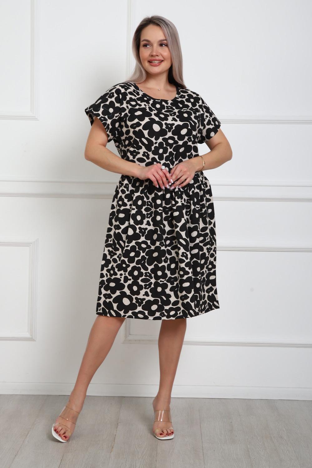 Представляем Вашему вниманию легкое платье. Горловина округлой формы. Рукав реглан короткий. Платье уместно всегда и везде - в таком наряде можно выглядеть очаровательно и романтично на прогулке. Натуральный состав, классическая длина и силуэт, наличие удобных карманов сделают это изделие любимым в Вашем гардеробе.