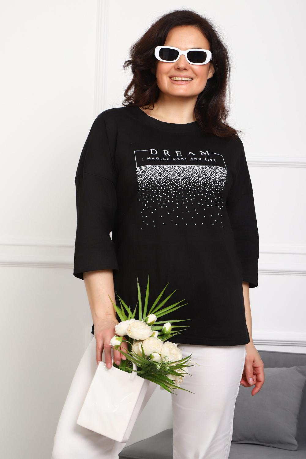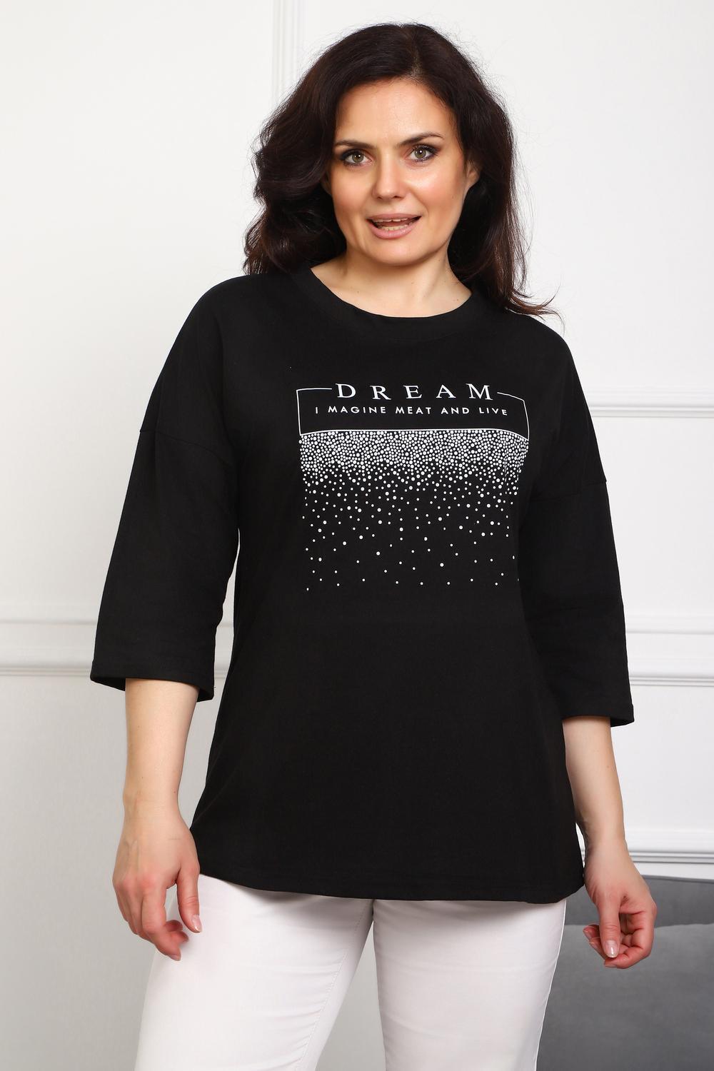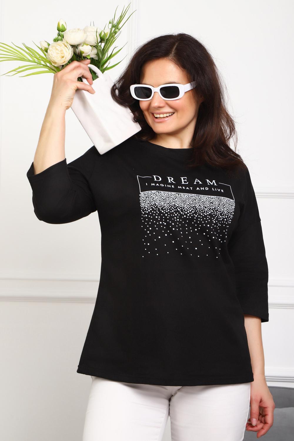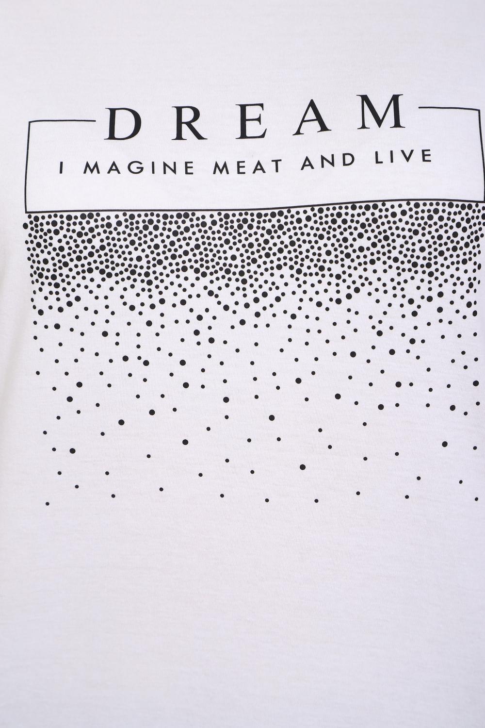 (туника женская дрим) Женская туника из мягкой и приятной к телу кулирки, выполненная из натурального хлопка (100%). Эта модель идеально подчеркнет вашу фигуру благодаря элегантному приталенному силуэту и слегка приспущенной линии плеча. Рукава длиной 3/4 делают образ комфортным и универсальным, а круглый вырез горловины добавляет легкости и нежности общему виду. Особенное внимание привлекает стильный принт на груди, украшенный изящной надписью, создающими романтичное настроение. Свободная посадка обеспечивает комфорт и свободу движений, делая этот предмет гардероба идеальным выбором для повседневных образов и отдыха.