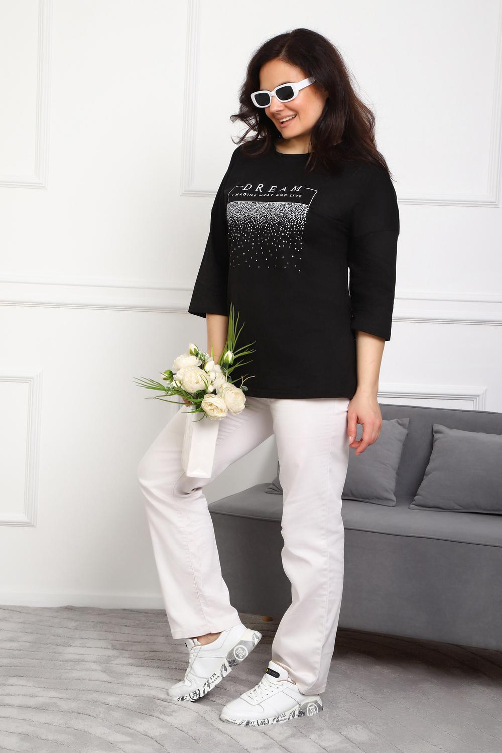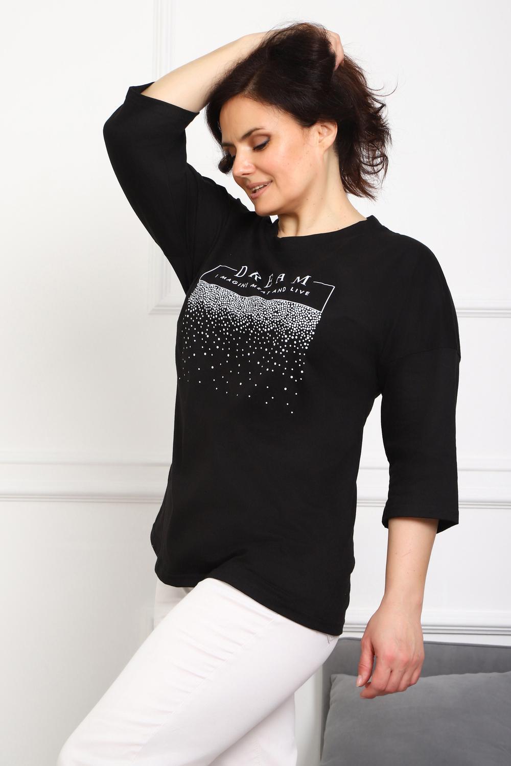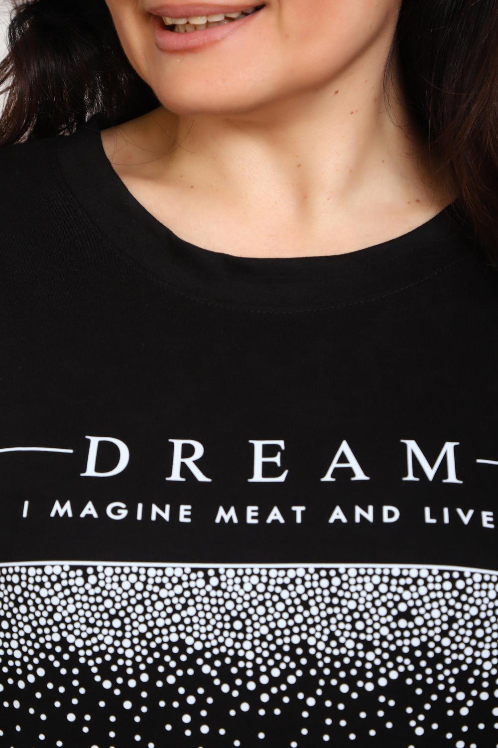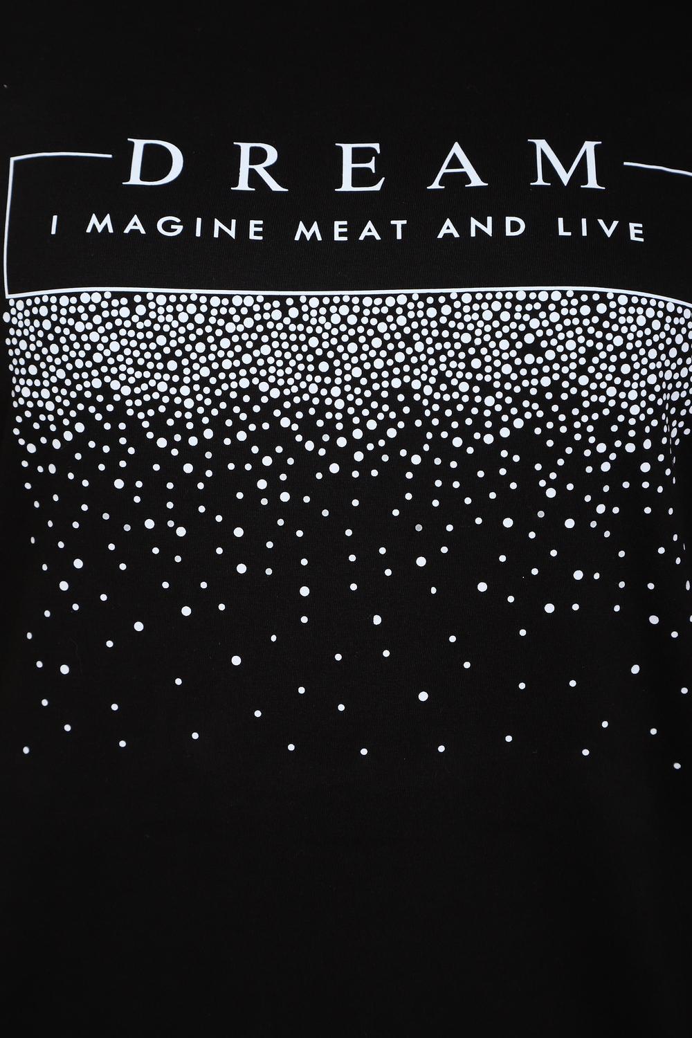 (туника женская дрим) Женская туника из мягкой и приятной к телу кулирки, выполненная из натурального хлопка (100%). Эта модель идеально подчеркнет вашу фигуру благодаря элегантному приталенному силуэту и слегка приспущенной линии плеча. Рукава длиной 3/4 делают образ комфортным и универсальным, а круглый вырез горловины добавляет легкости и нежности общему виду. Особенное внимание привлекает стильный принт на груди, украшенный изящной надписью, создающими романтичное настроение. Свободная посадка обеспечивает комфорт и свободу движений, делая этот предмет гардероба идеальным выбором для повседневных образов и отдыха.
